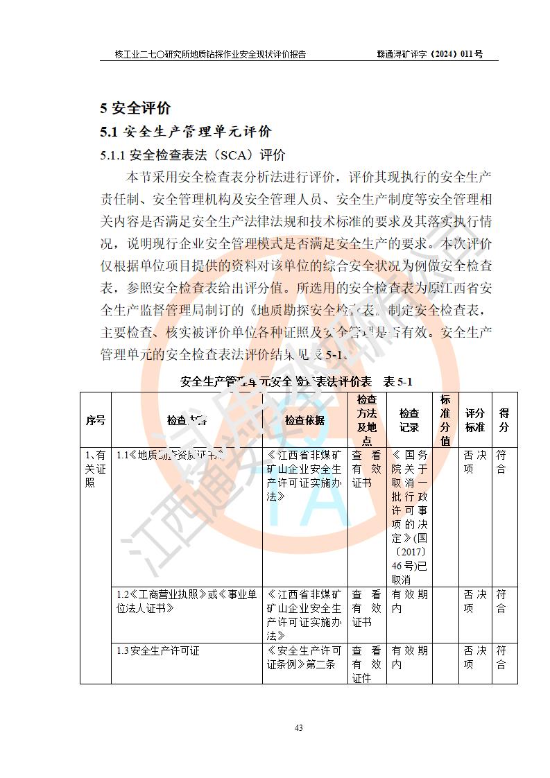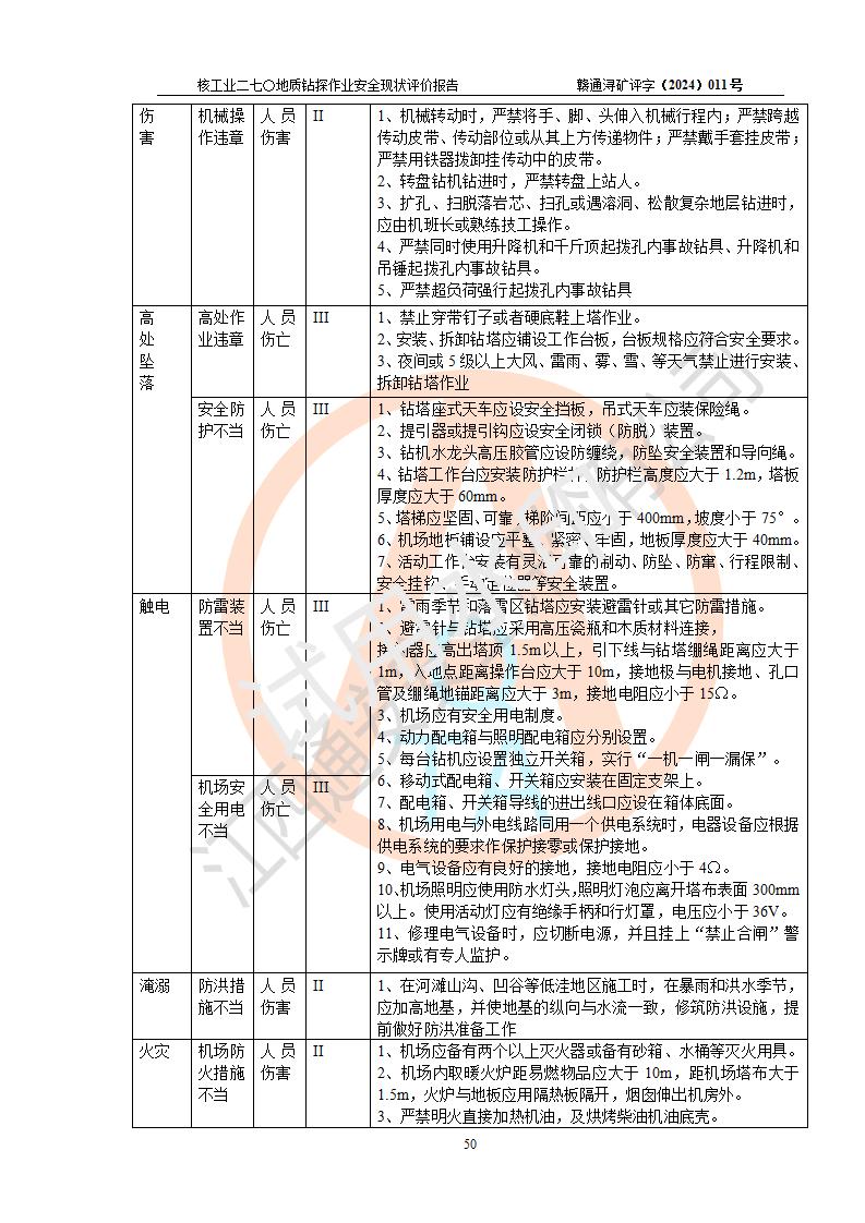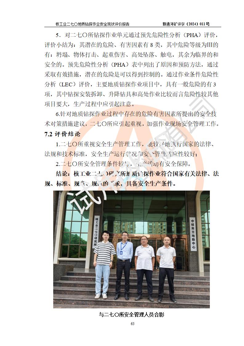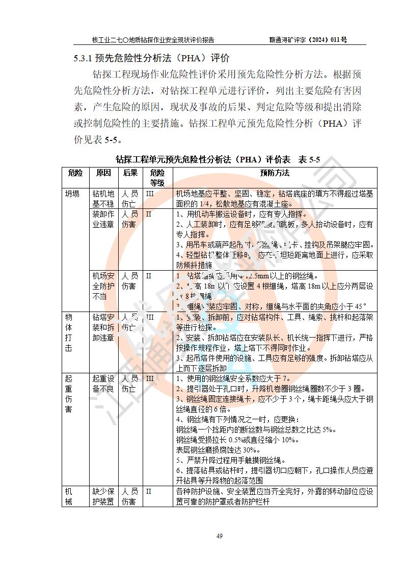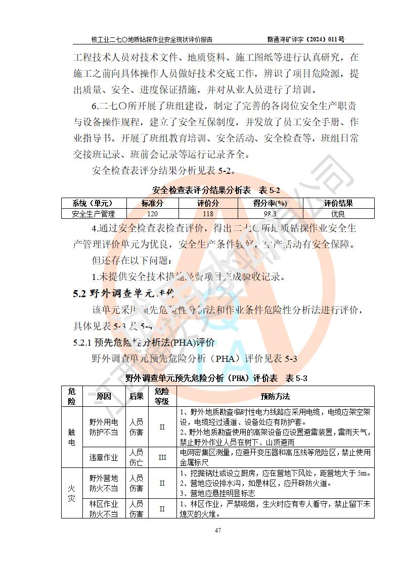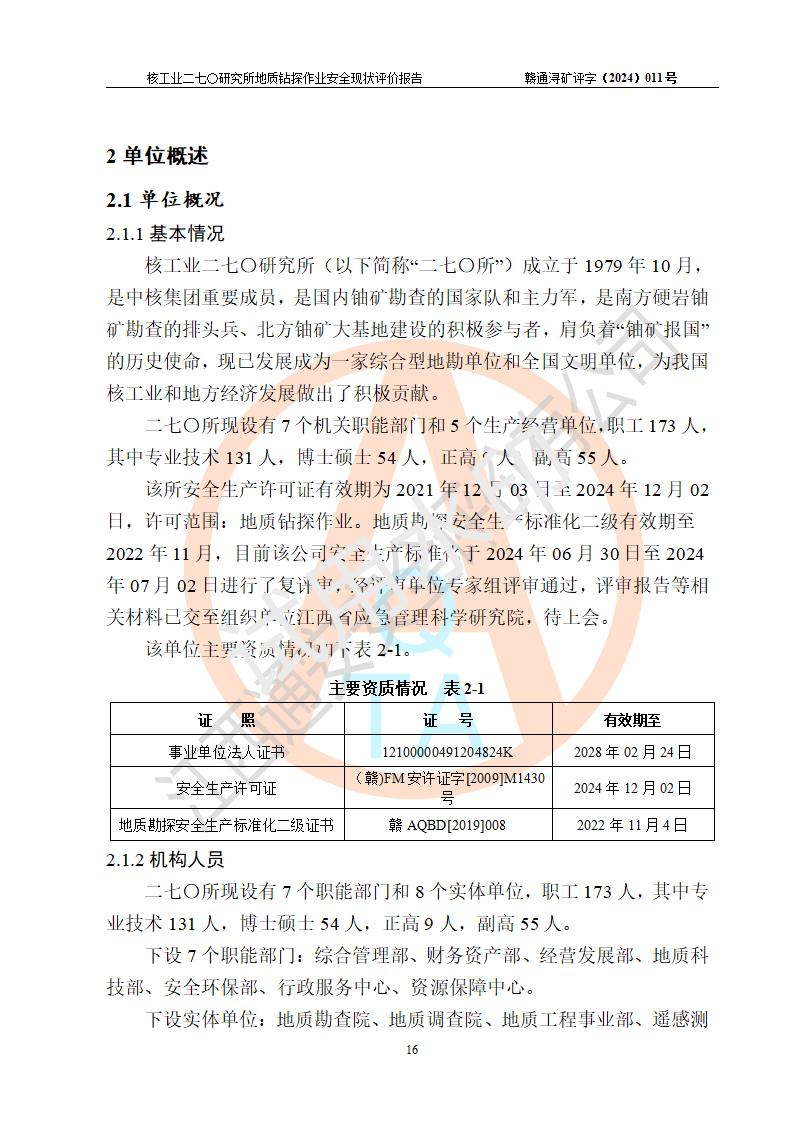 核工业二七〇研究所地质钻探作业安全现状评价报告