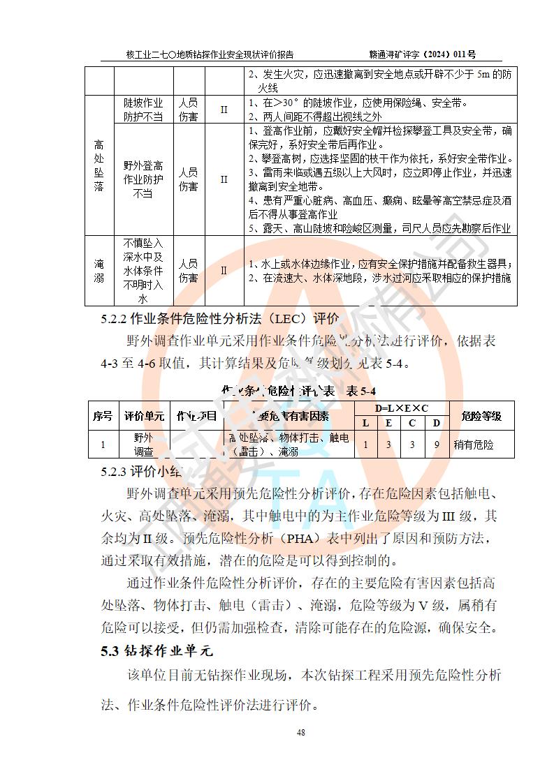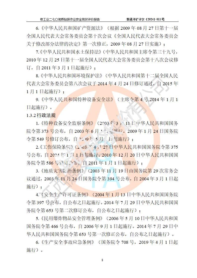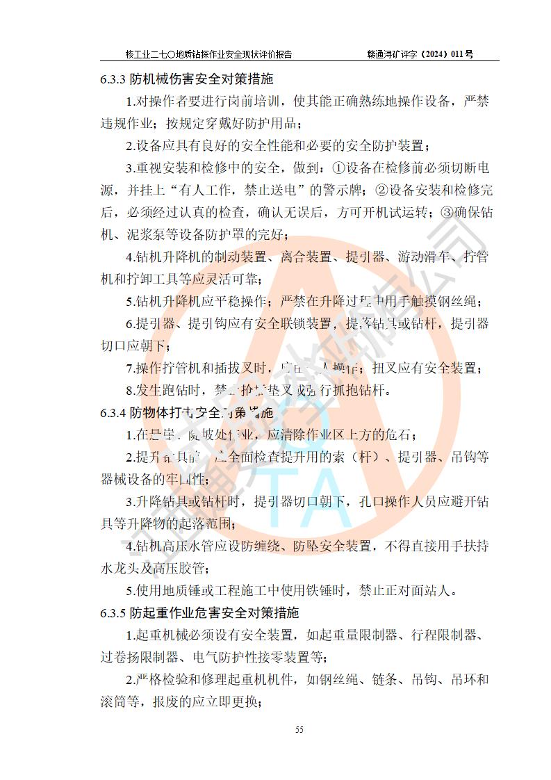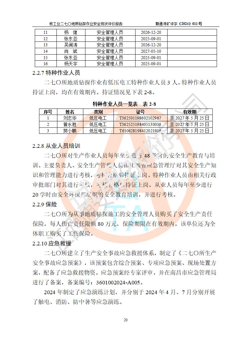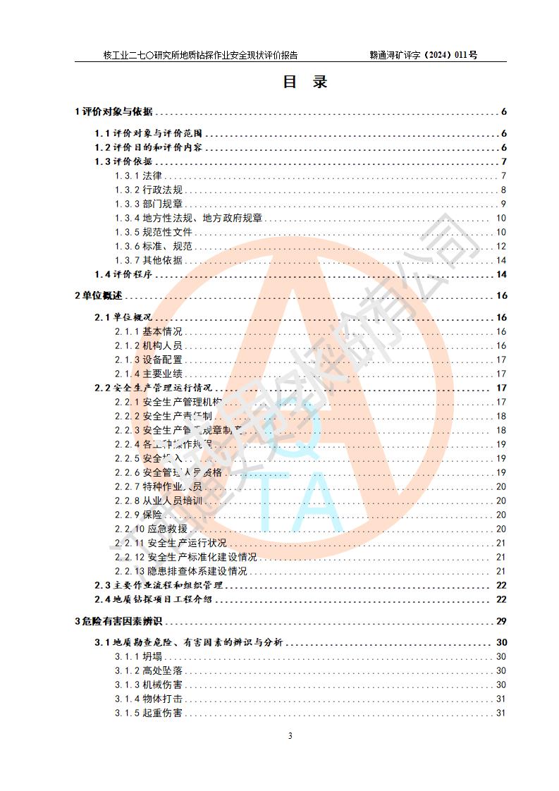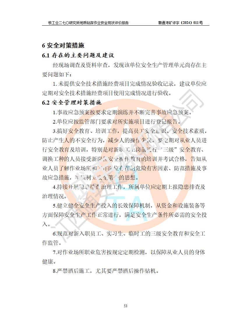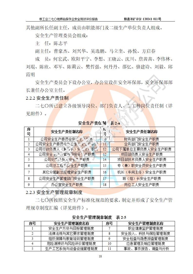 核工业二七〇研究所地质钻探作业安全现状评价报告