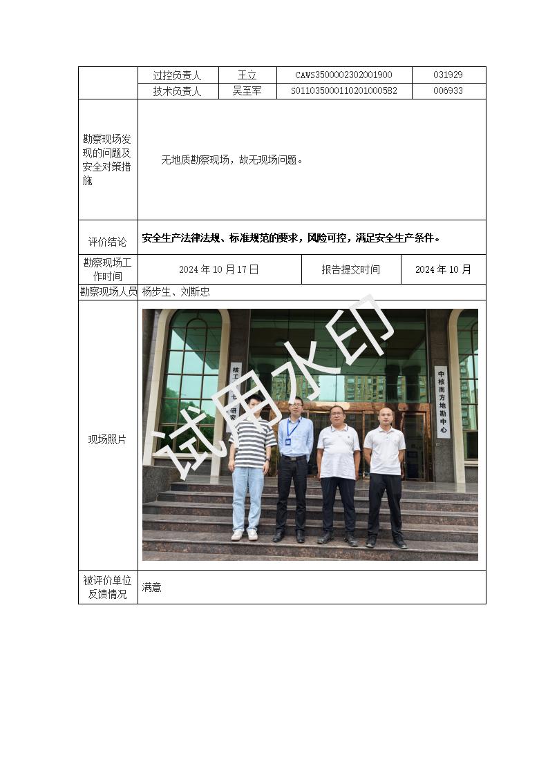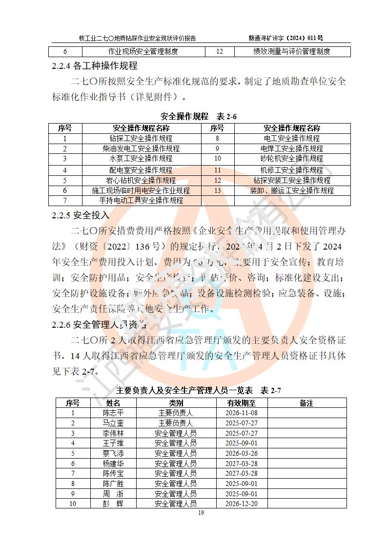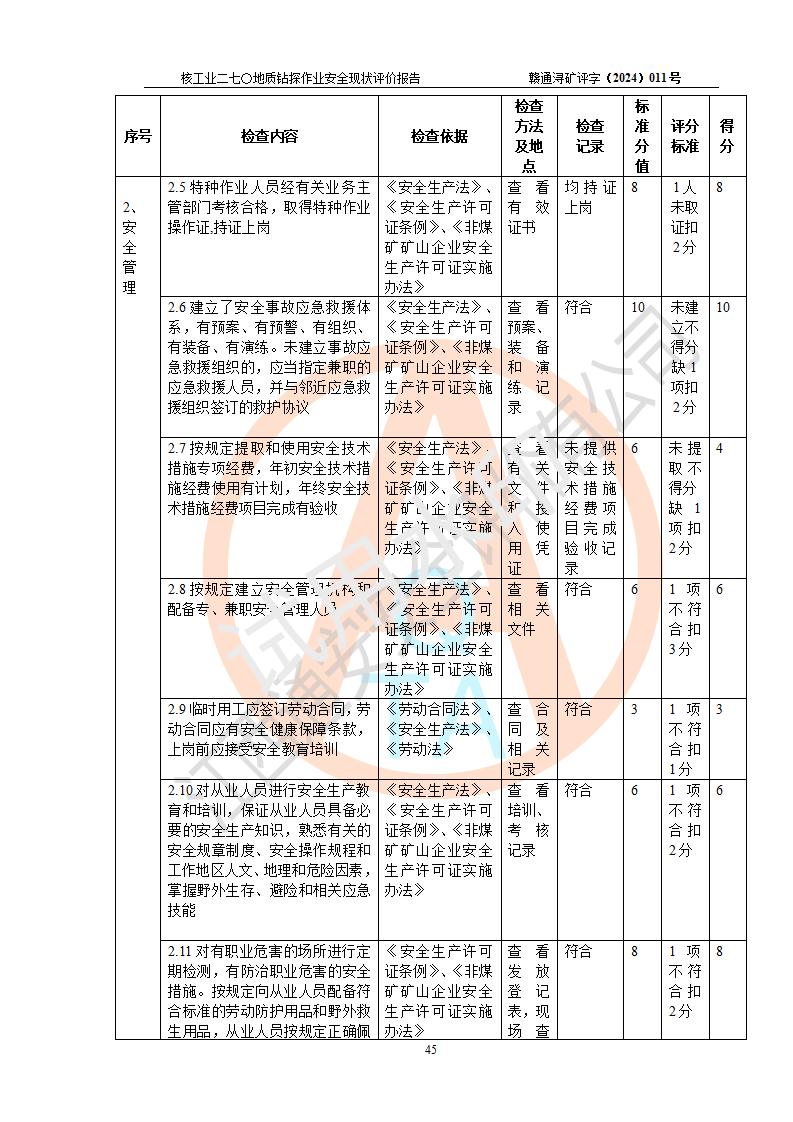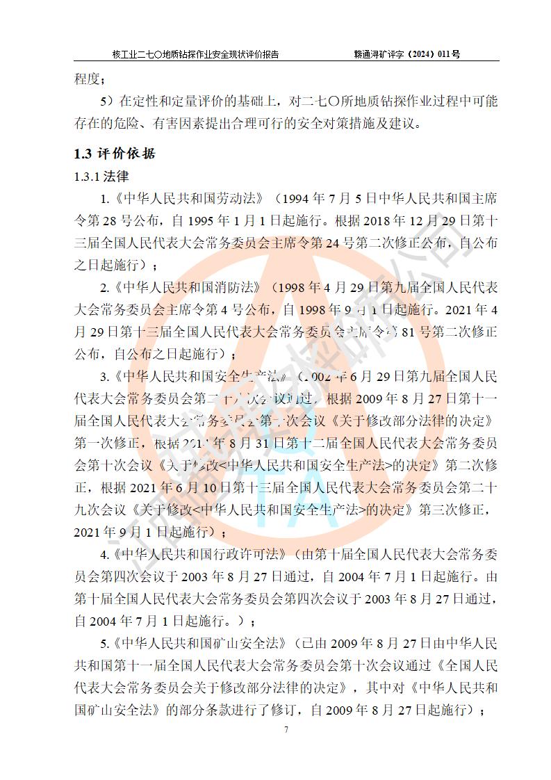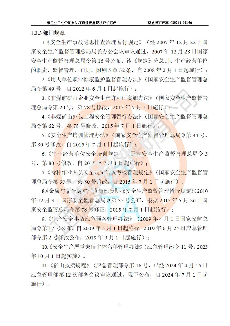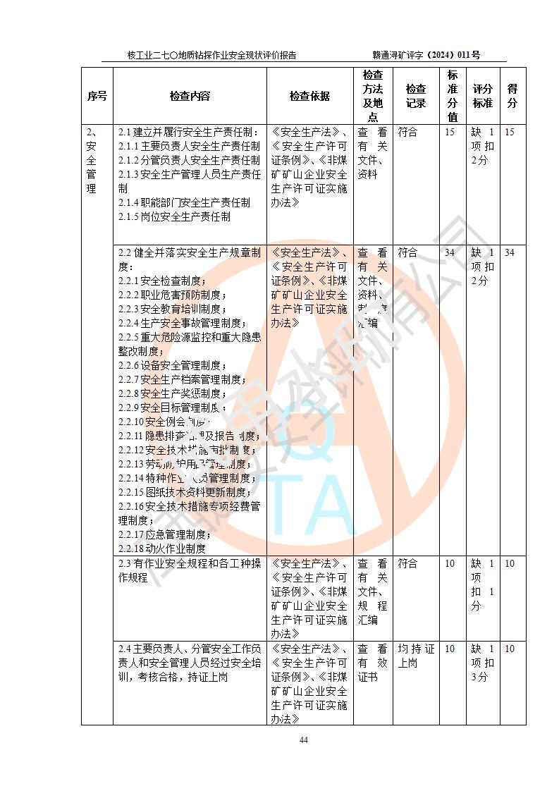 核工业二七〇研究所地质钻探作业安全现状评价报告