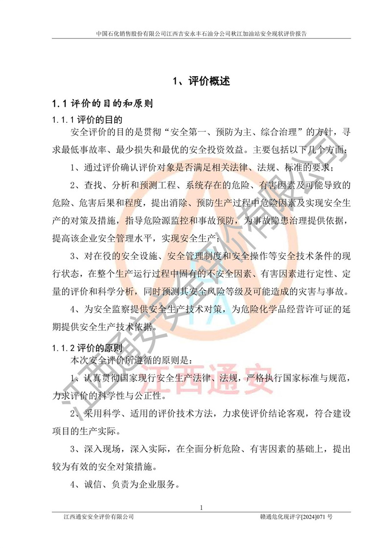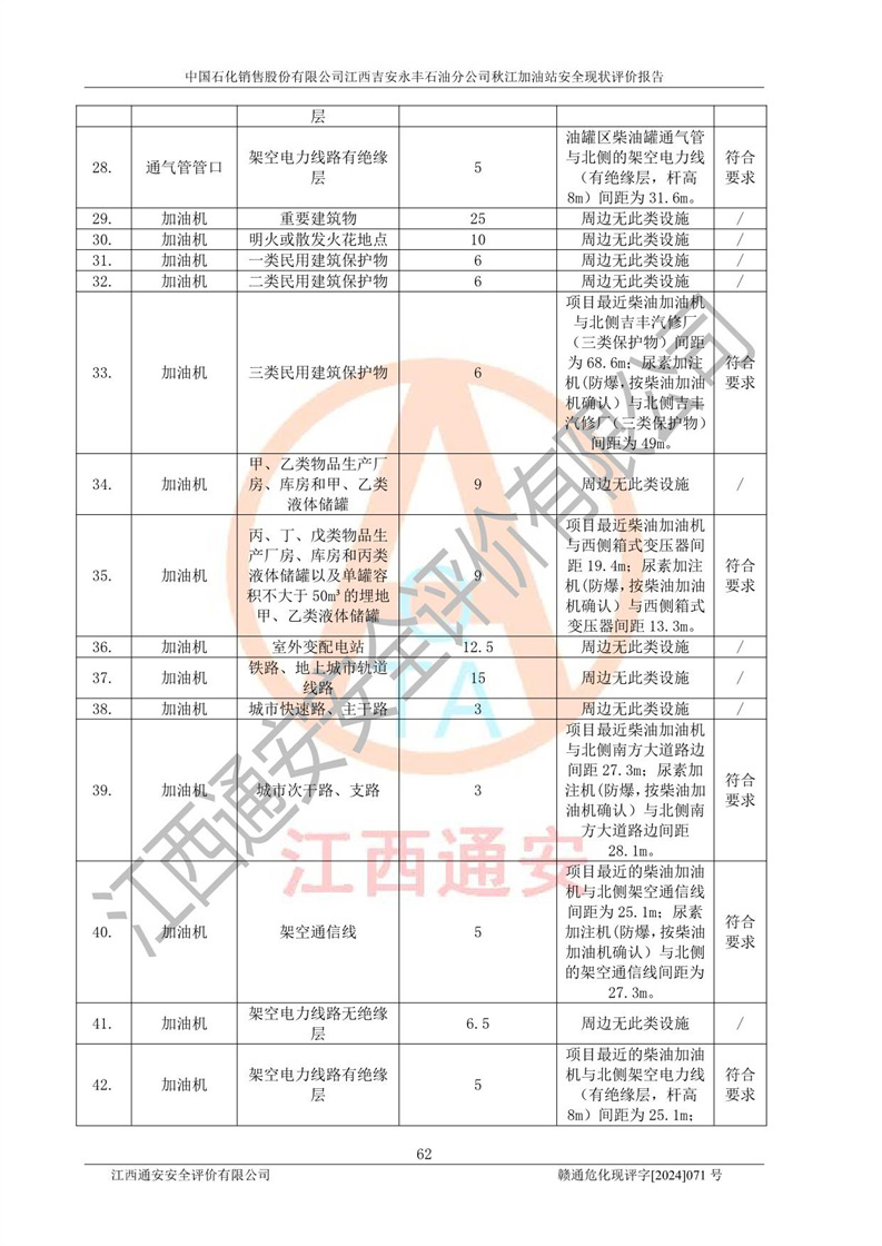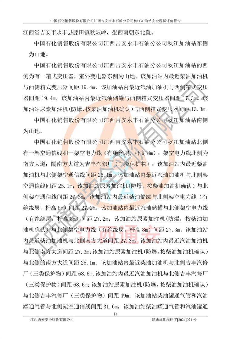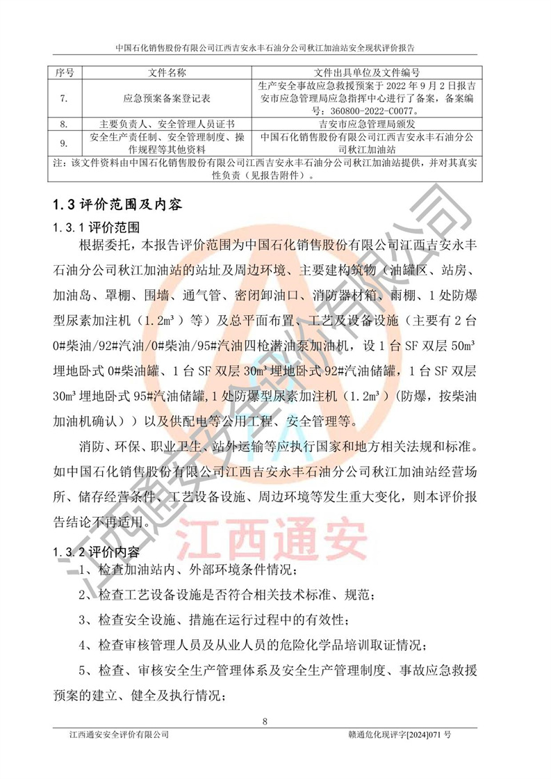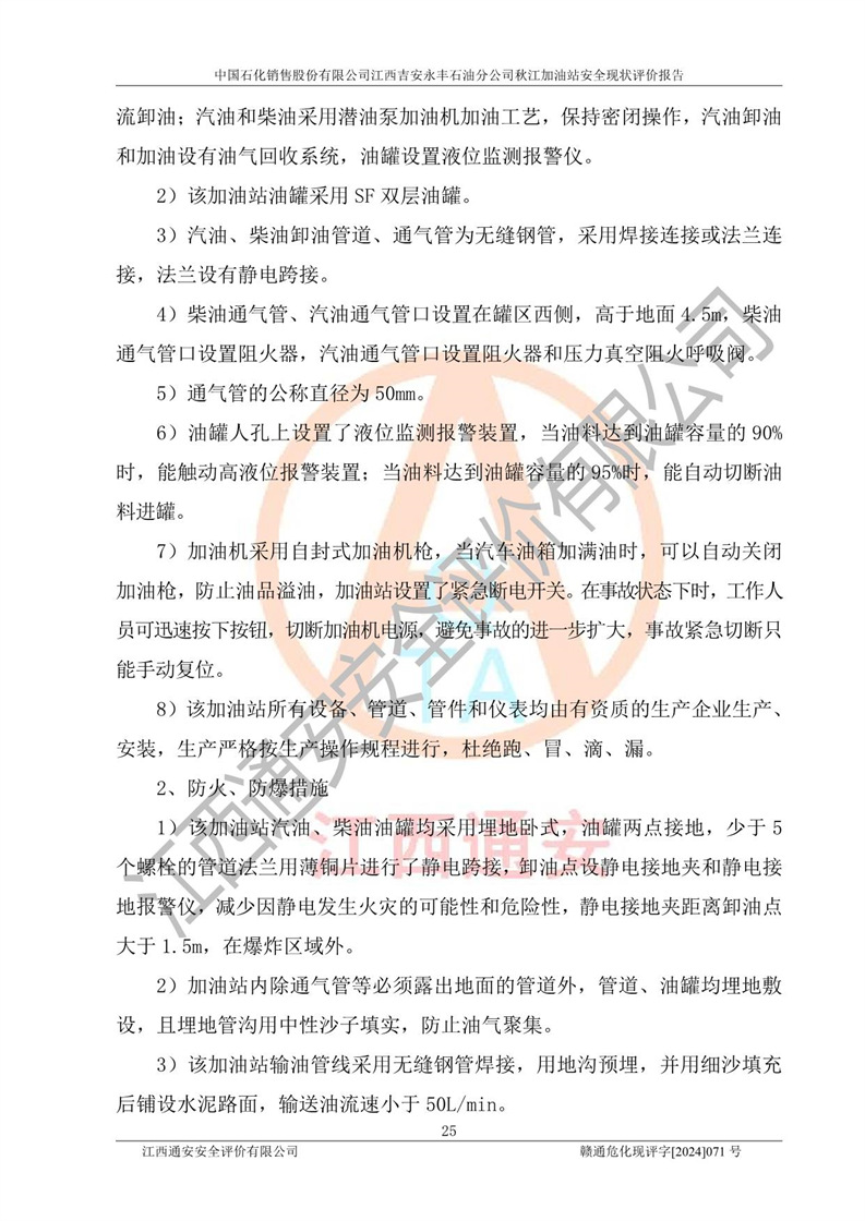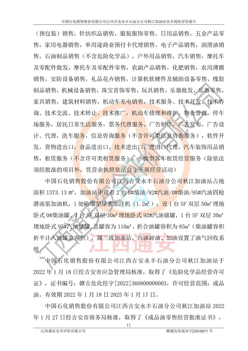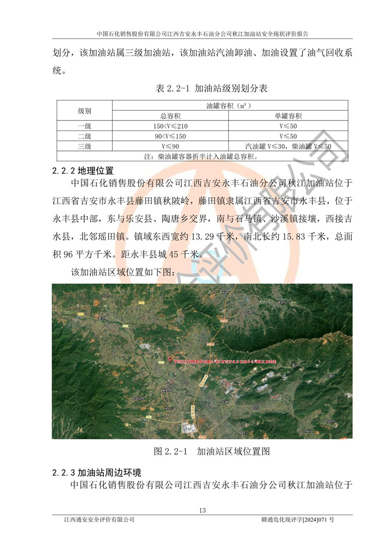 评价报告名称 | 中国石化销售股份有限公司江西吉安永丰石油分公司秋江加油站安全现状评价报告 | |||