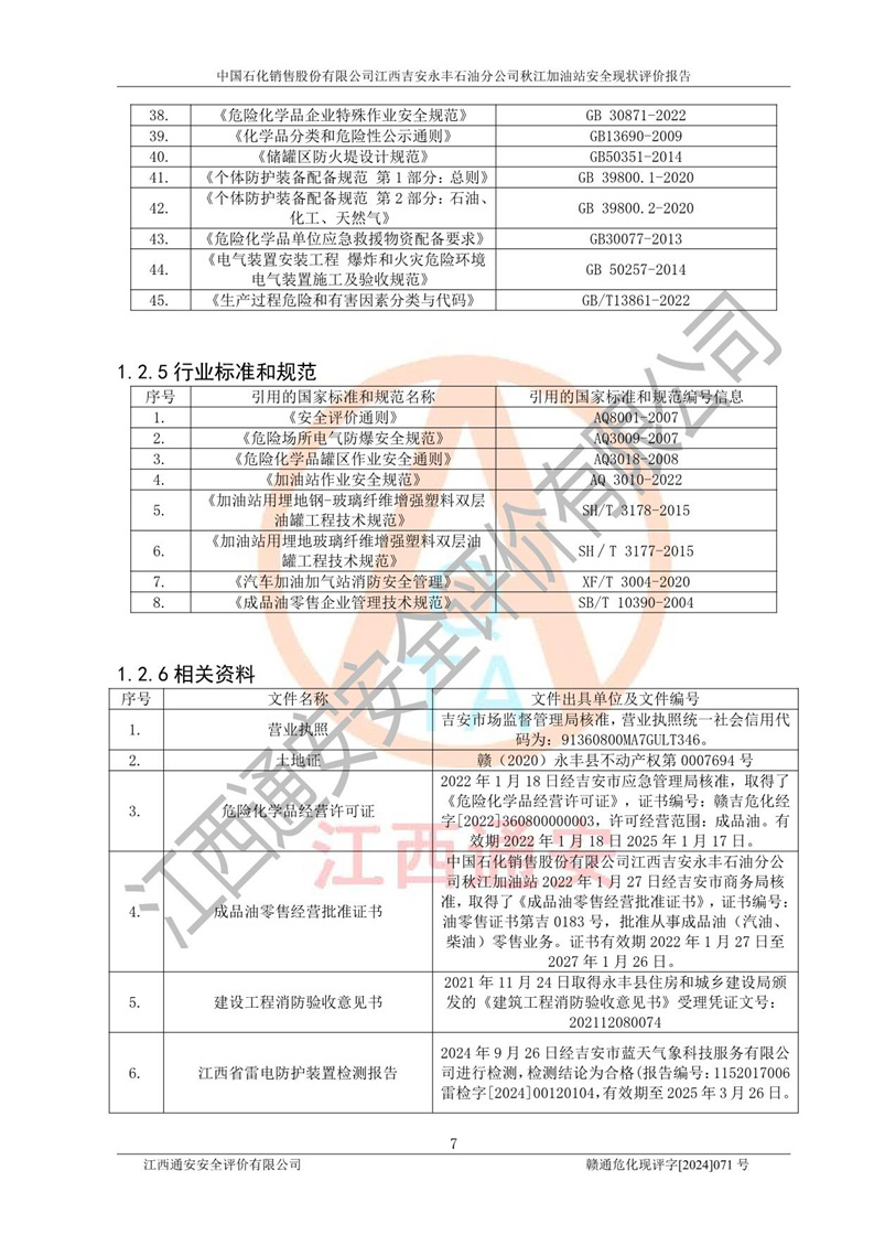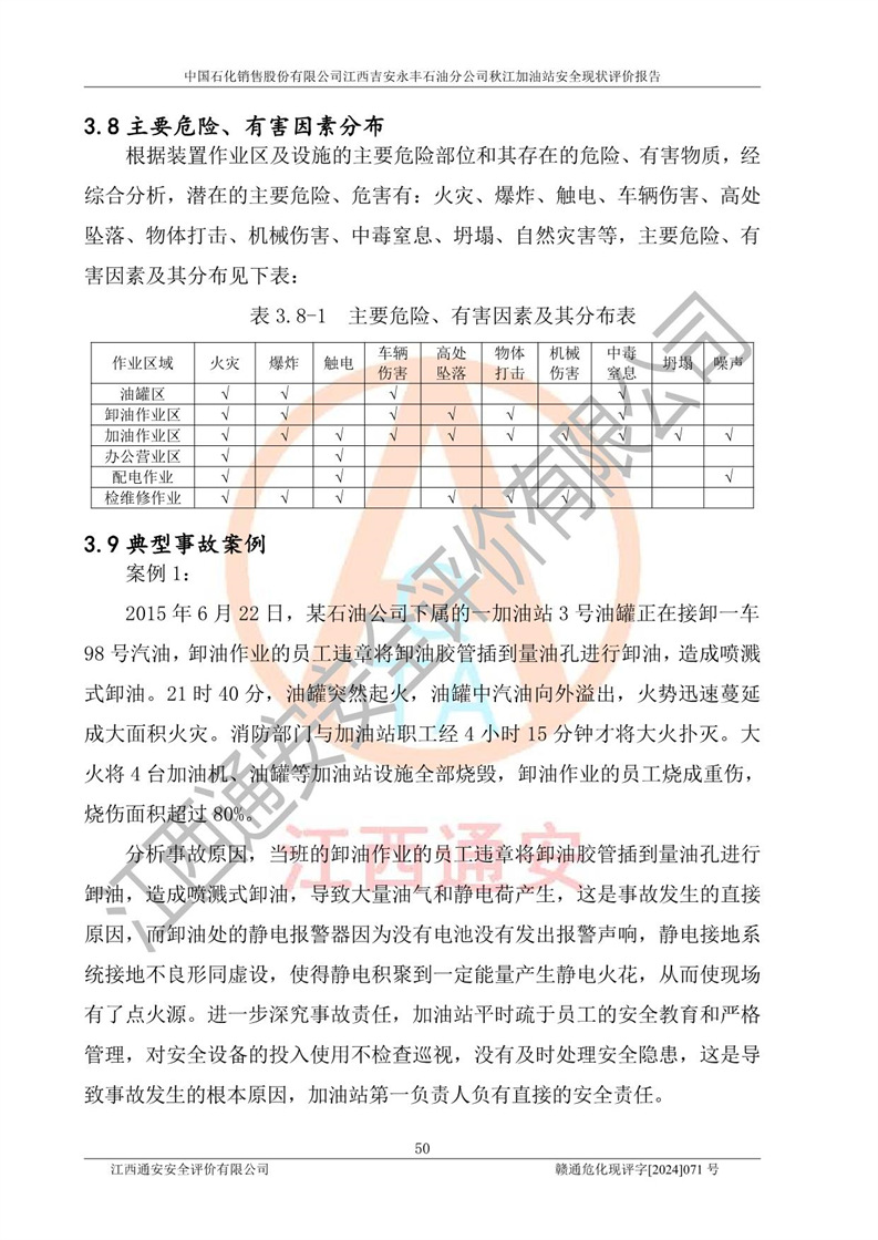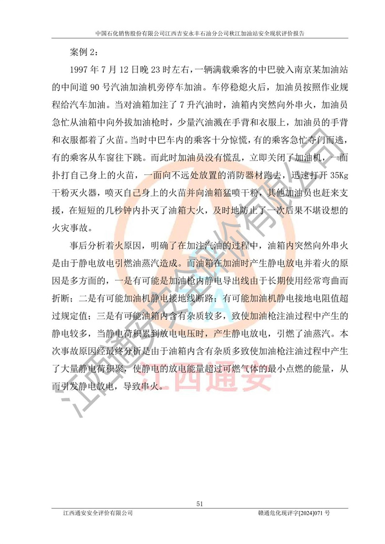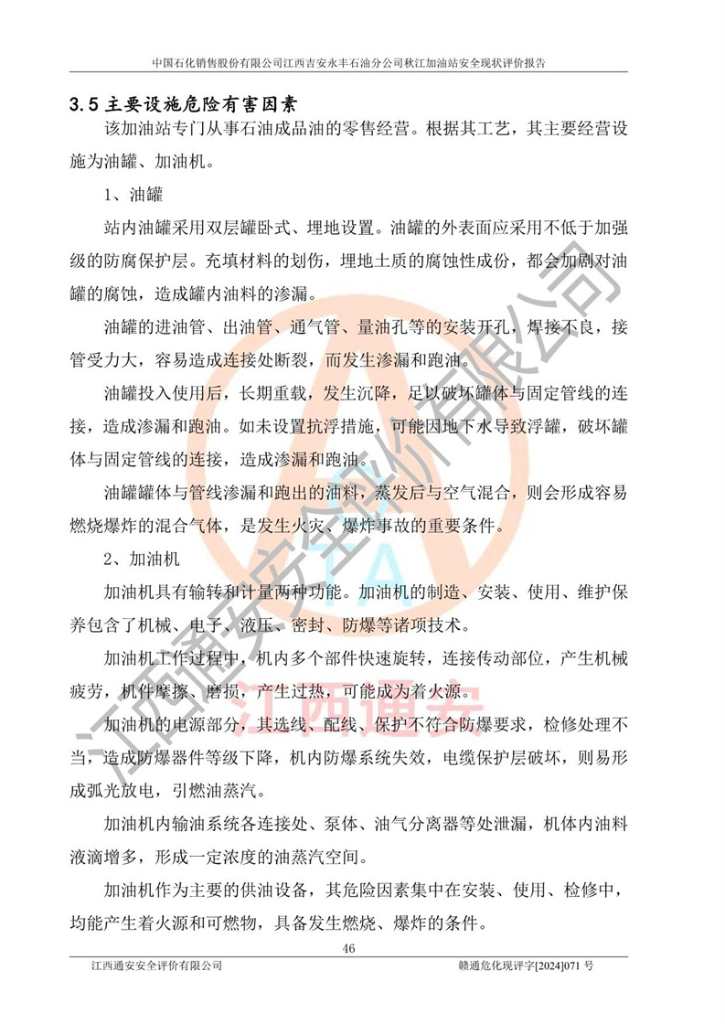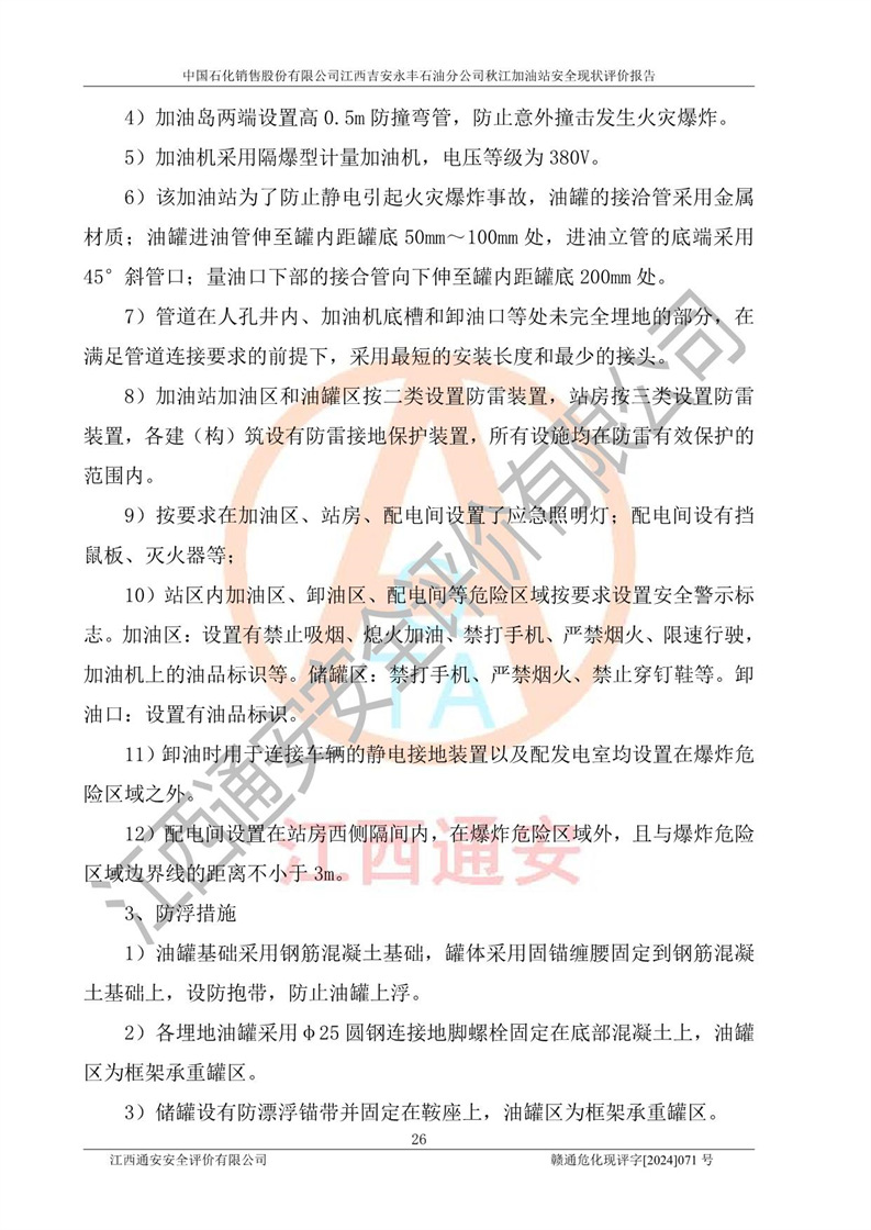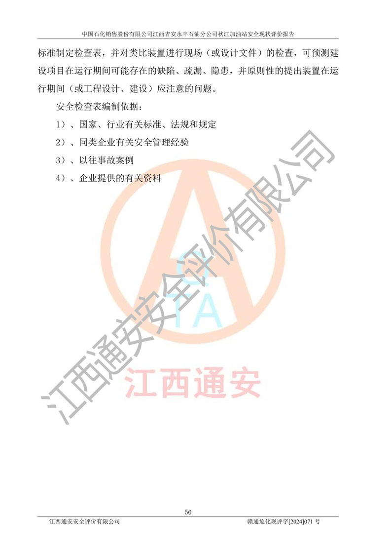 评价报告名称 | 中国石化销售股份有限公司江西吉安永丰石油分公司秋江加油站安全现状评价报告 | |||