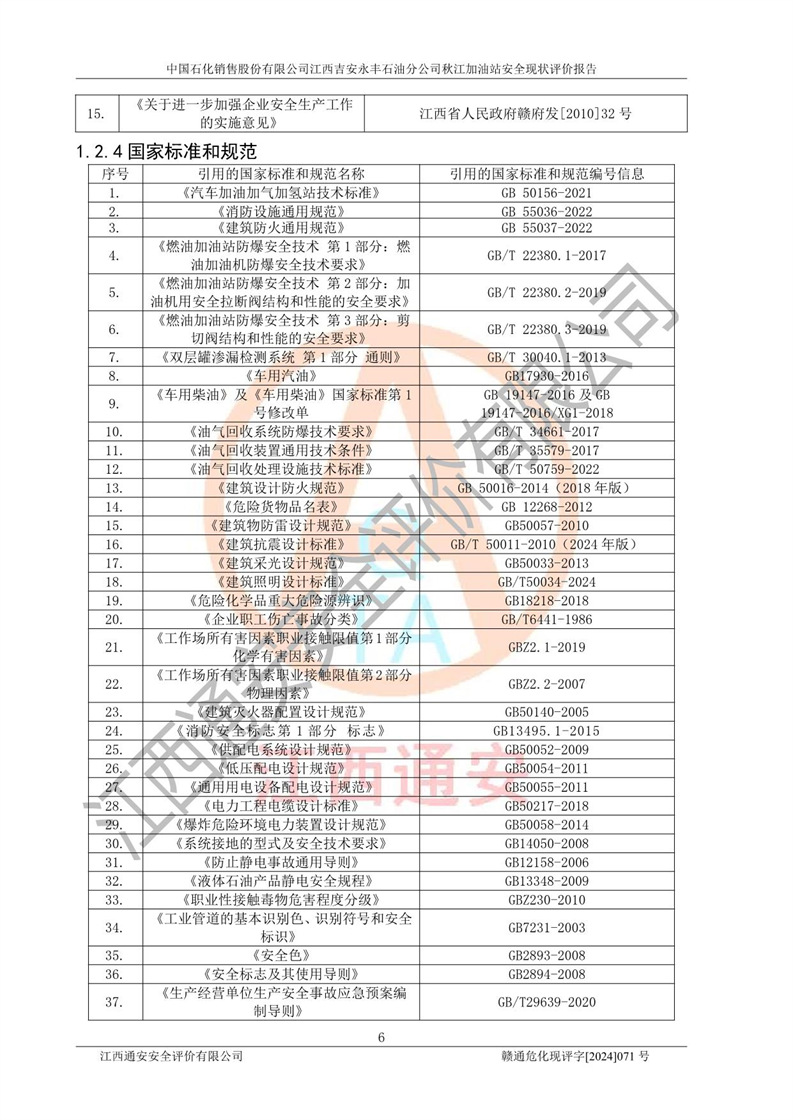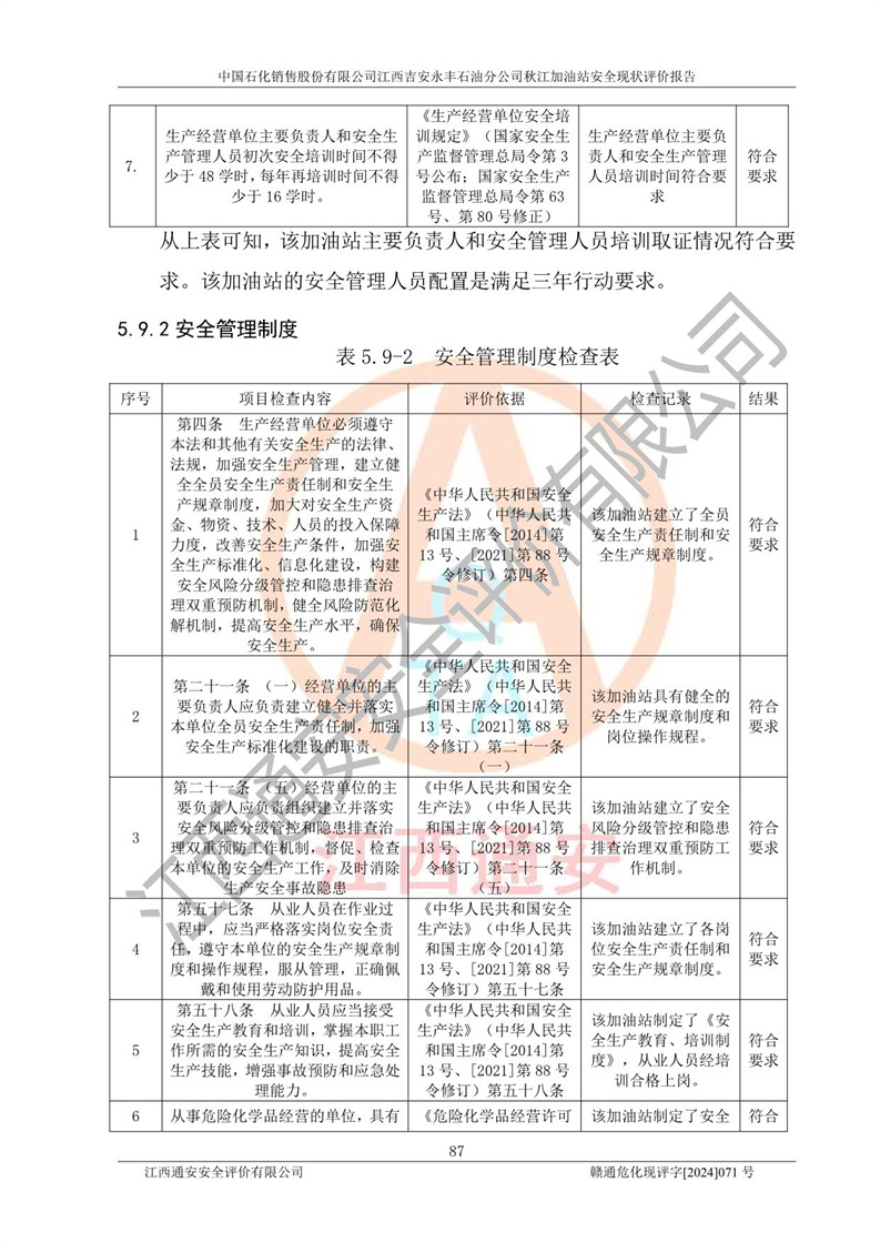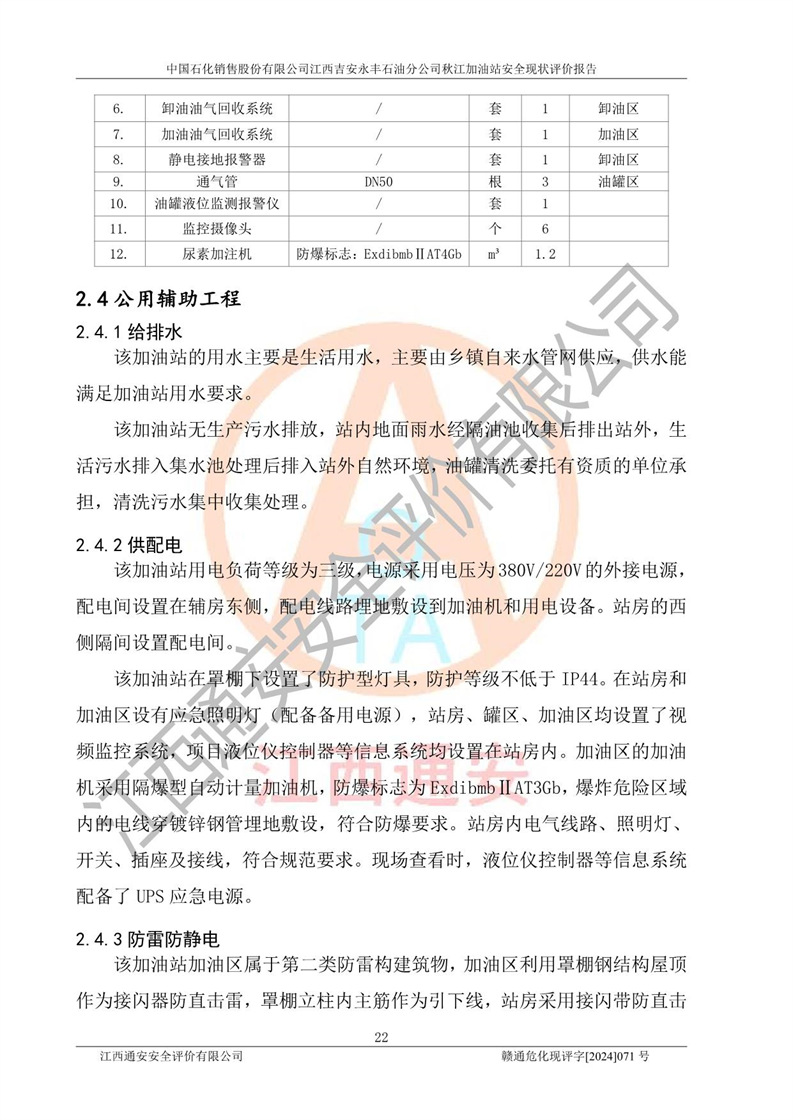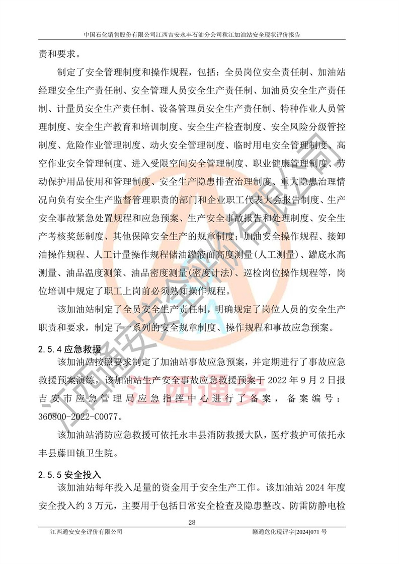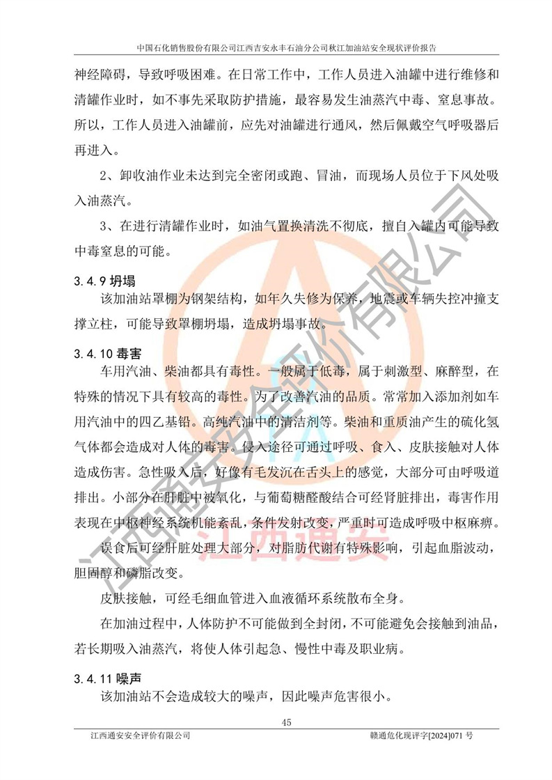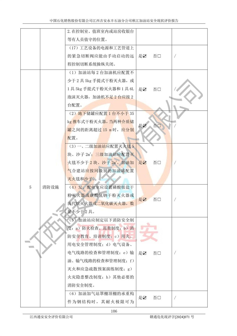评价报告名称 | 中国石化销售股份有限公司江西吉安永丰石油分公司秋江加油站安全现状评价报告 | |||