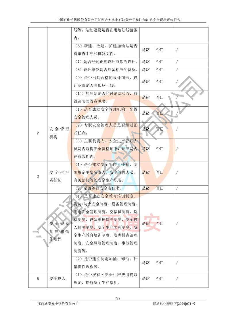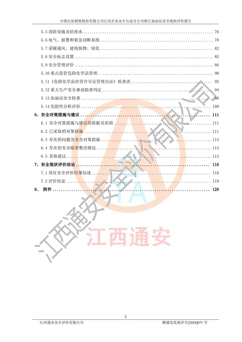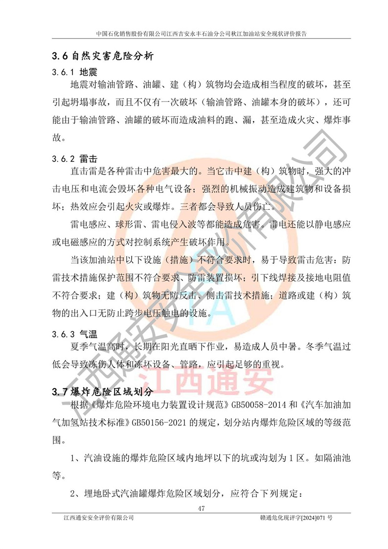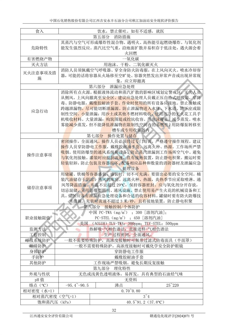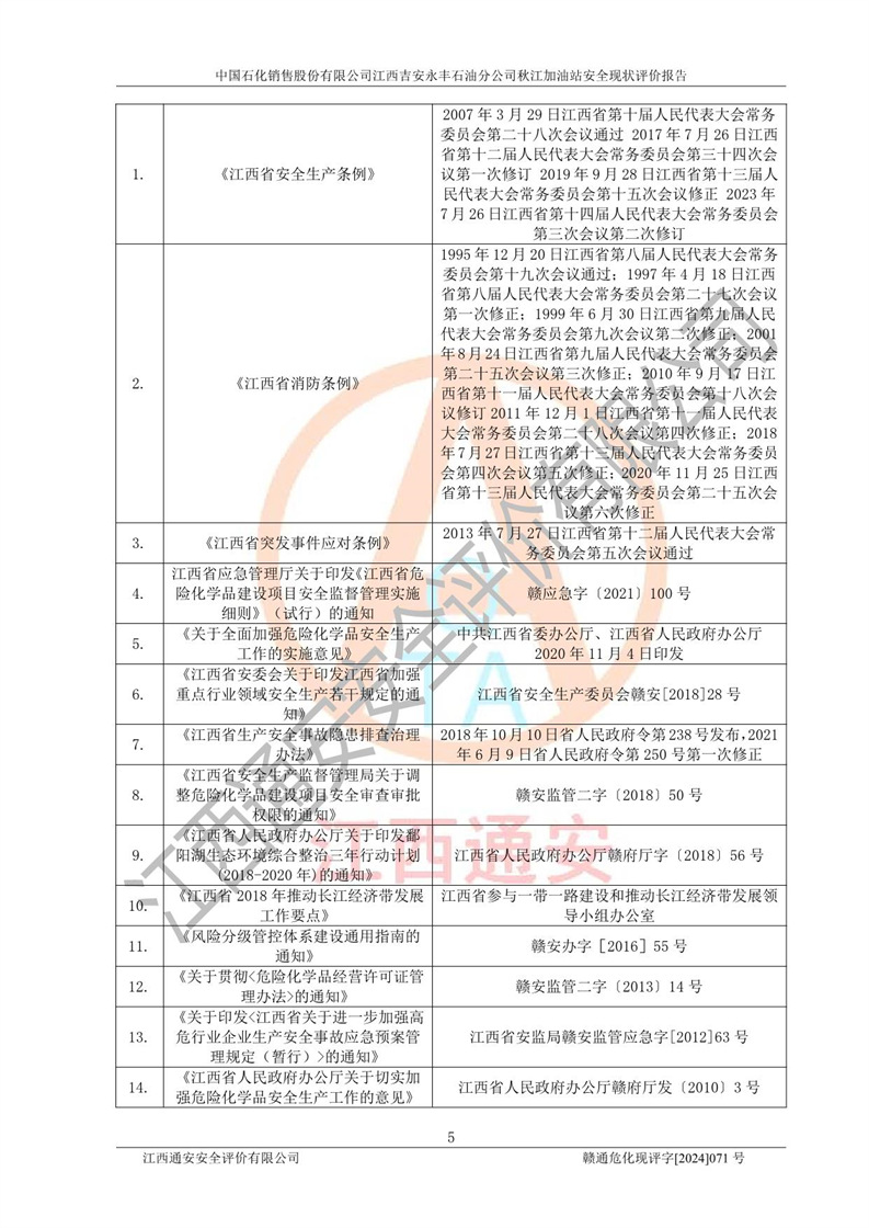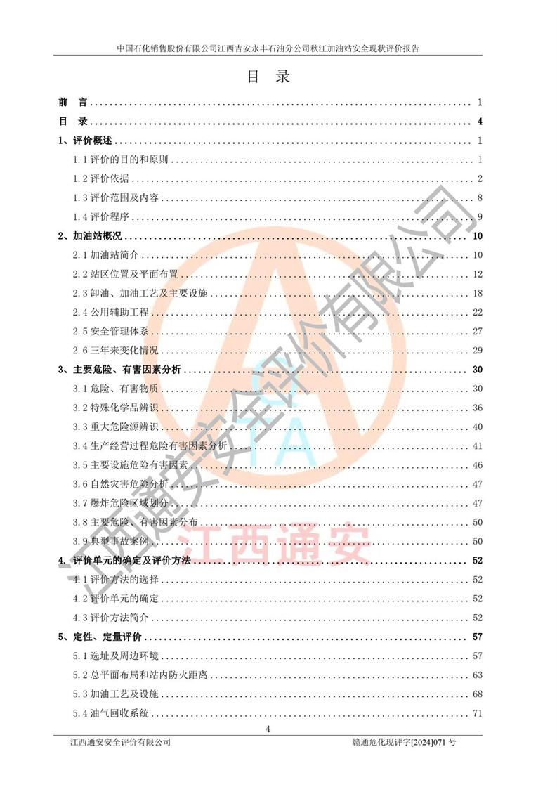 评价报告名称 | 中国石化销售股份有限公司江西吉安永丰石油分公司秋江加油站安全现状评价报告 | |||