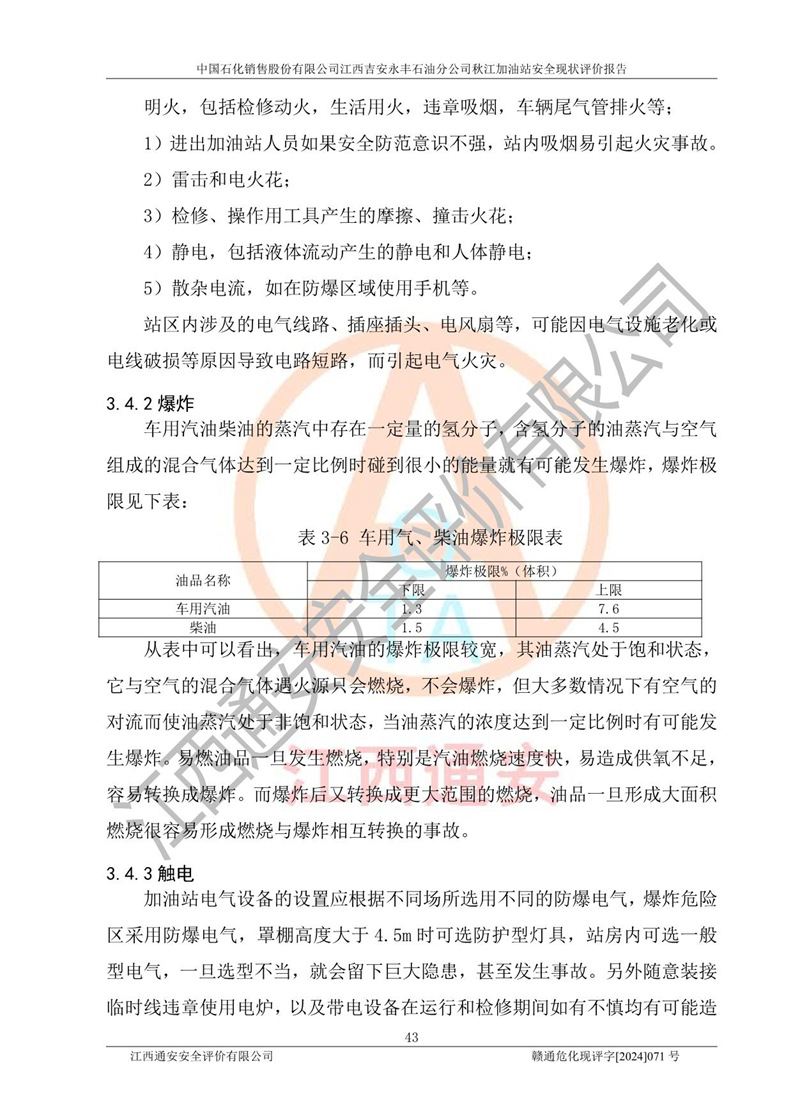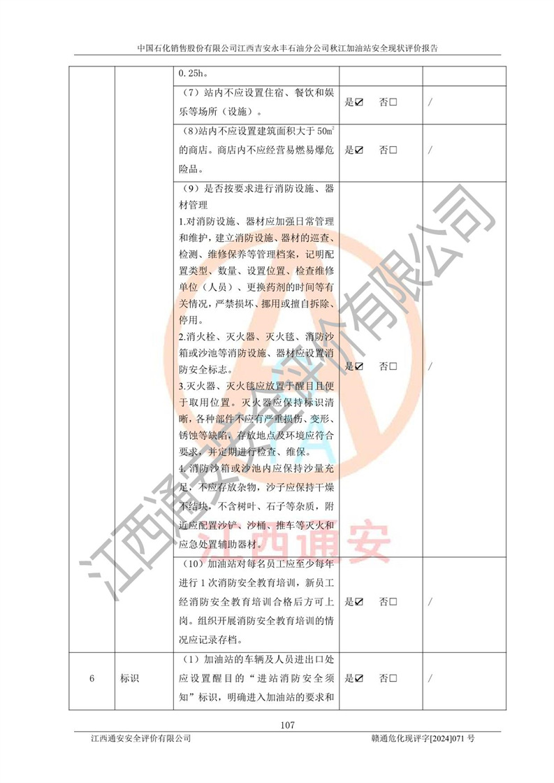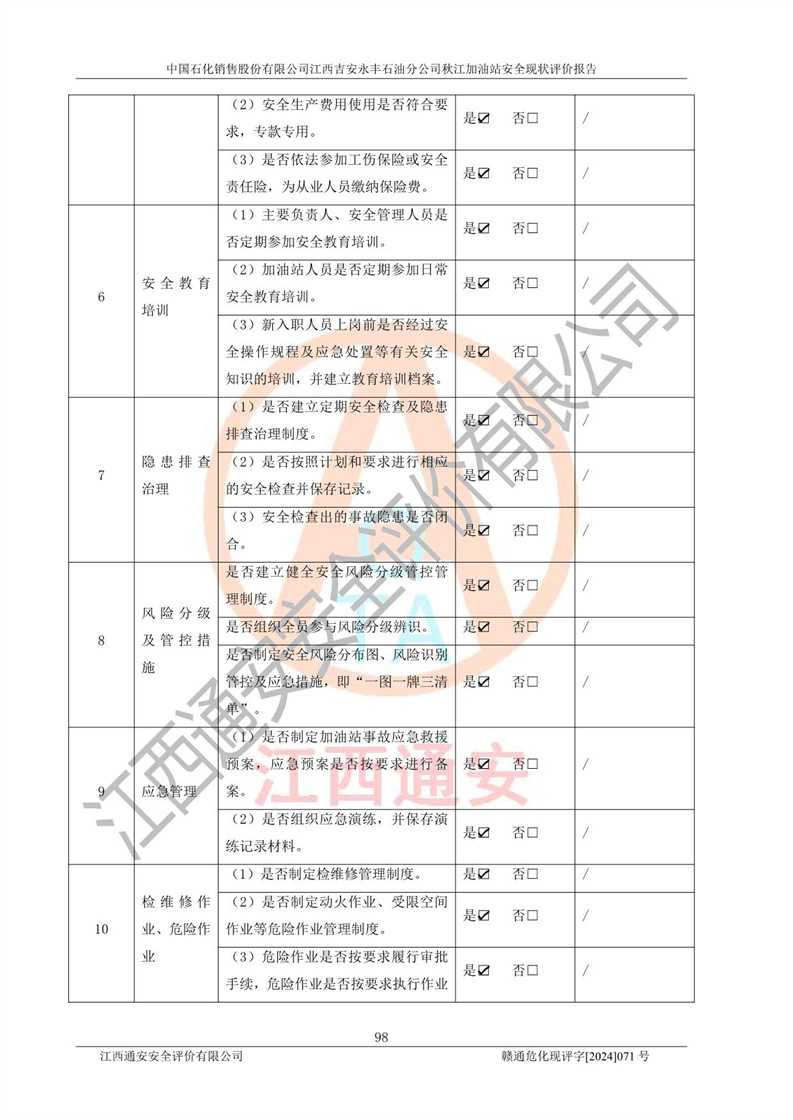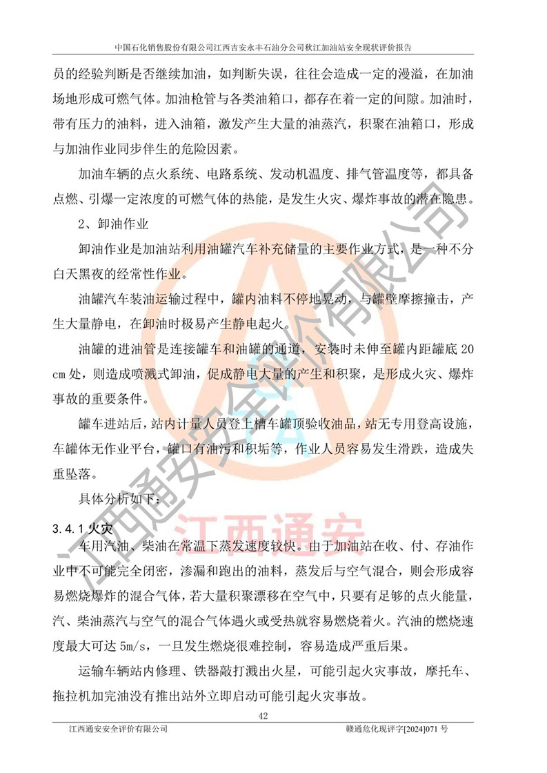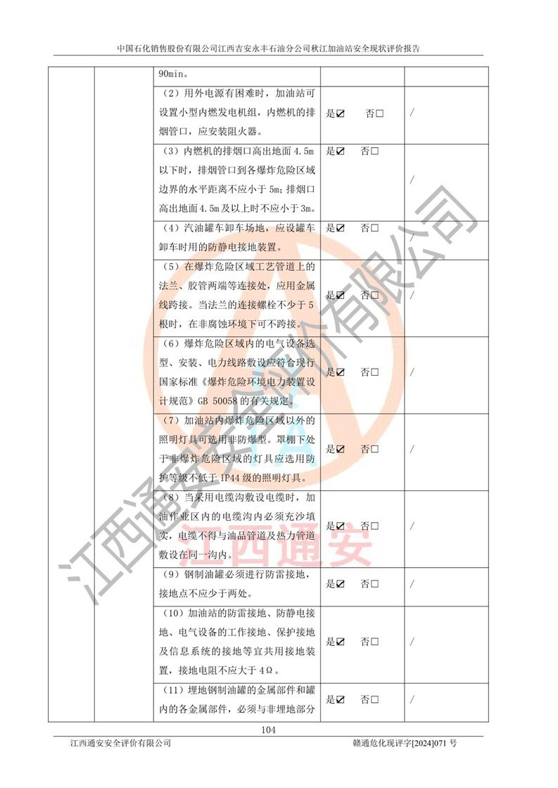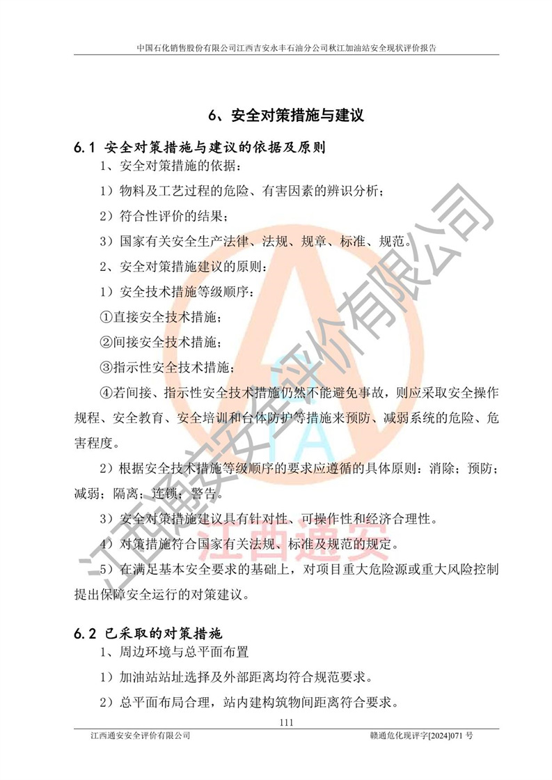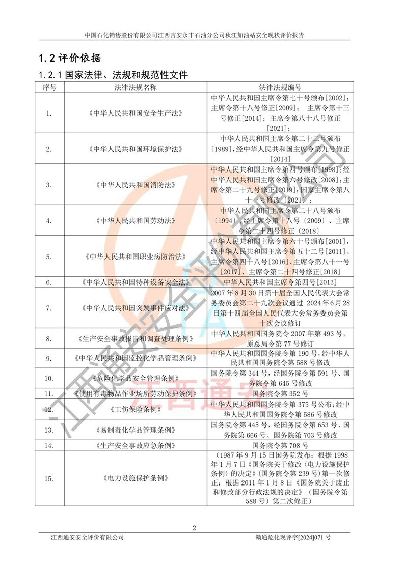 评价报告名称 | 中国石化销售股份有限公司江西吉安永丰石油分公司秋江加油站安全现状评价报告 | |||
