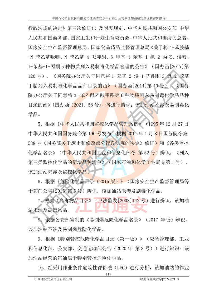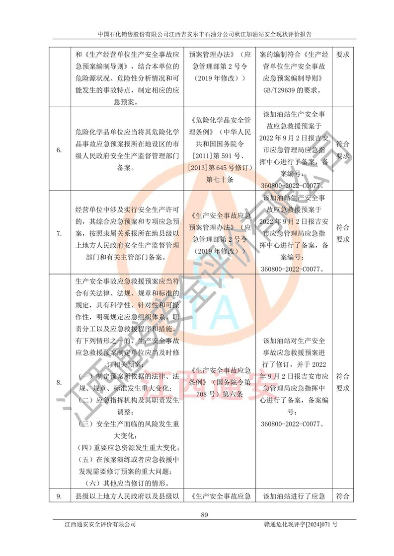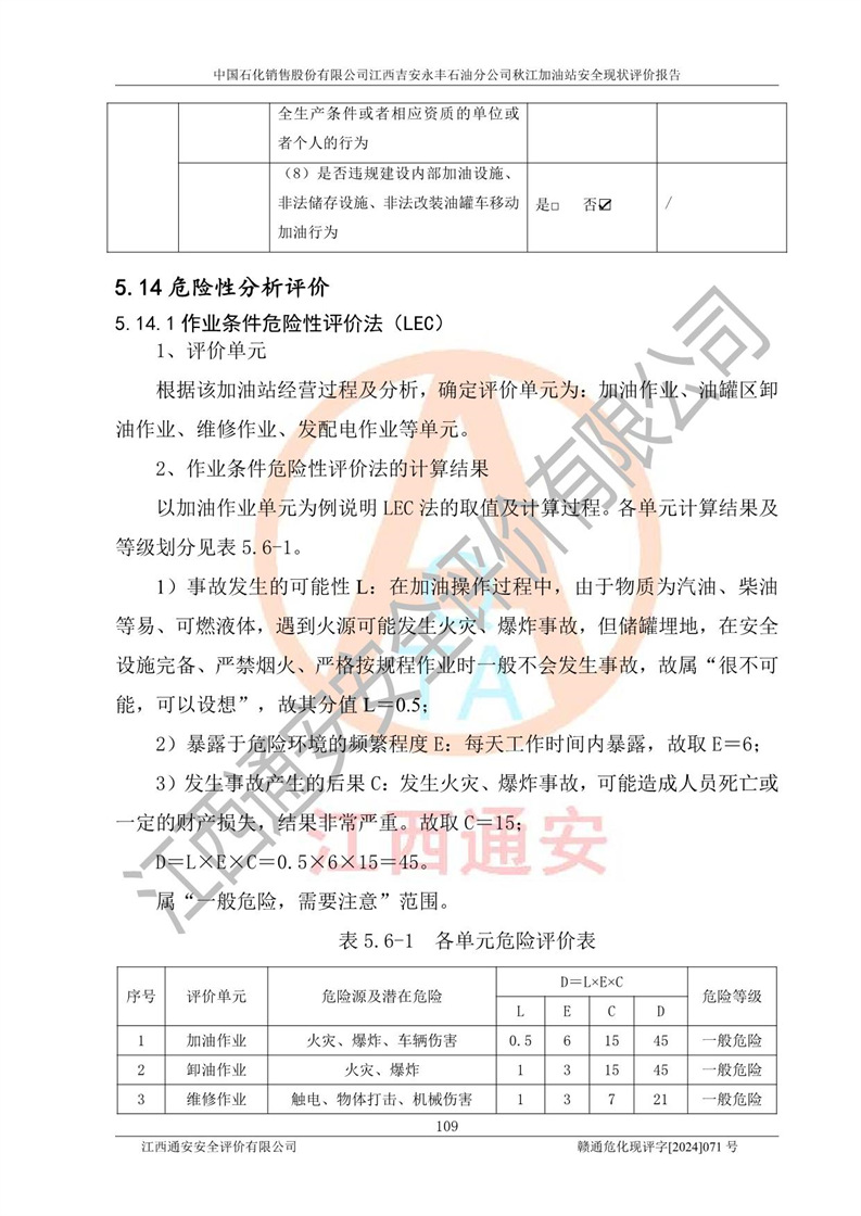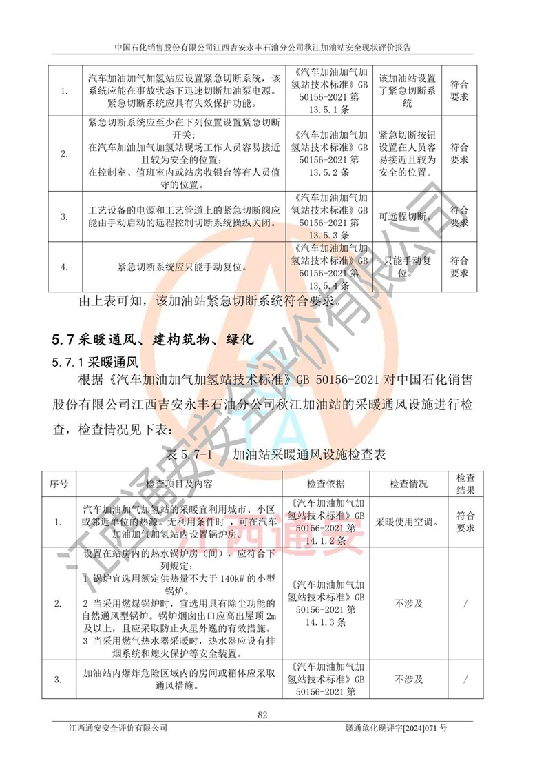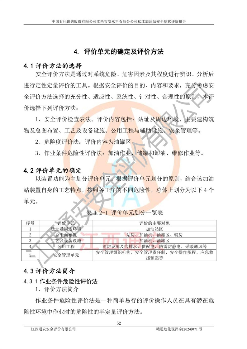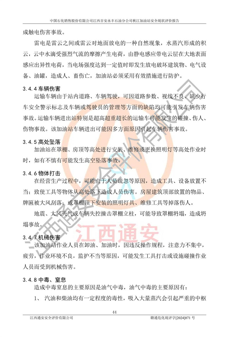 评价报告名称 | 中国石化销售股份有限公司江西吉安永丰石油分公司秋江加油站安全现状评价报告 | |||