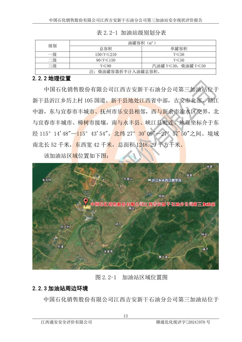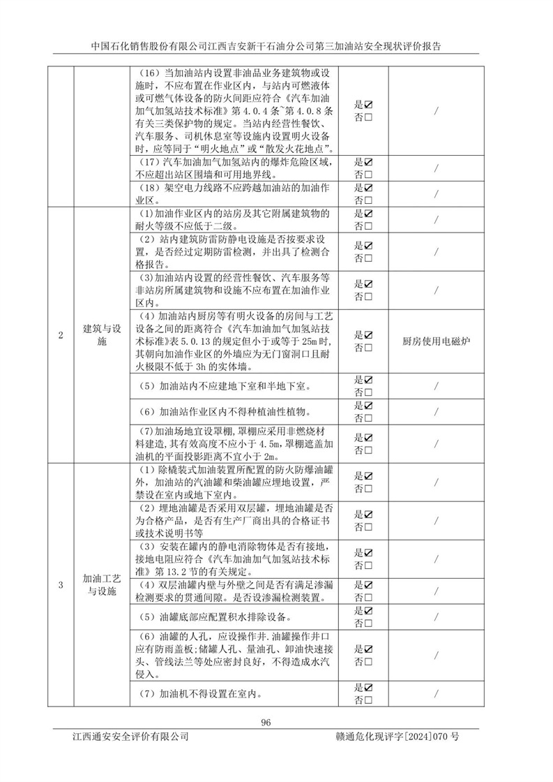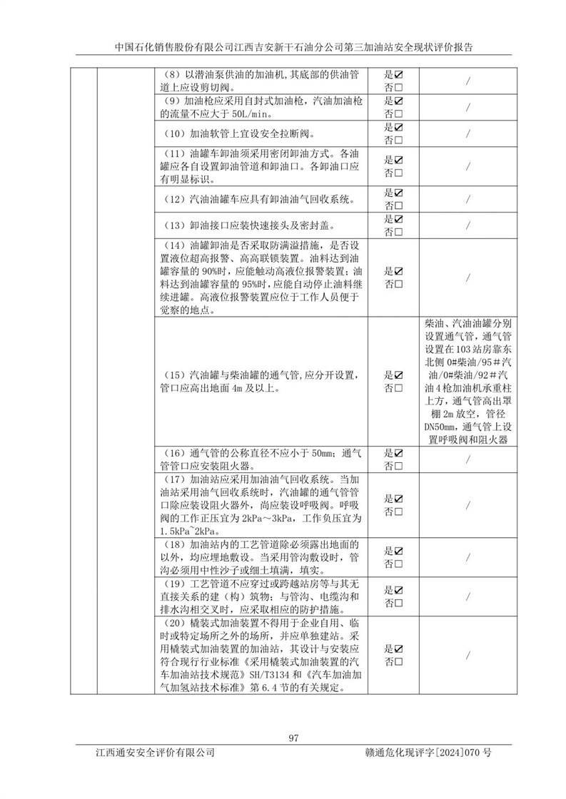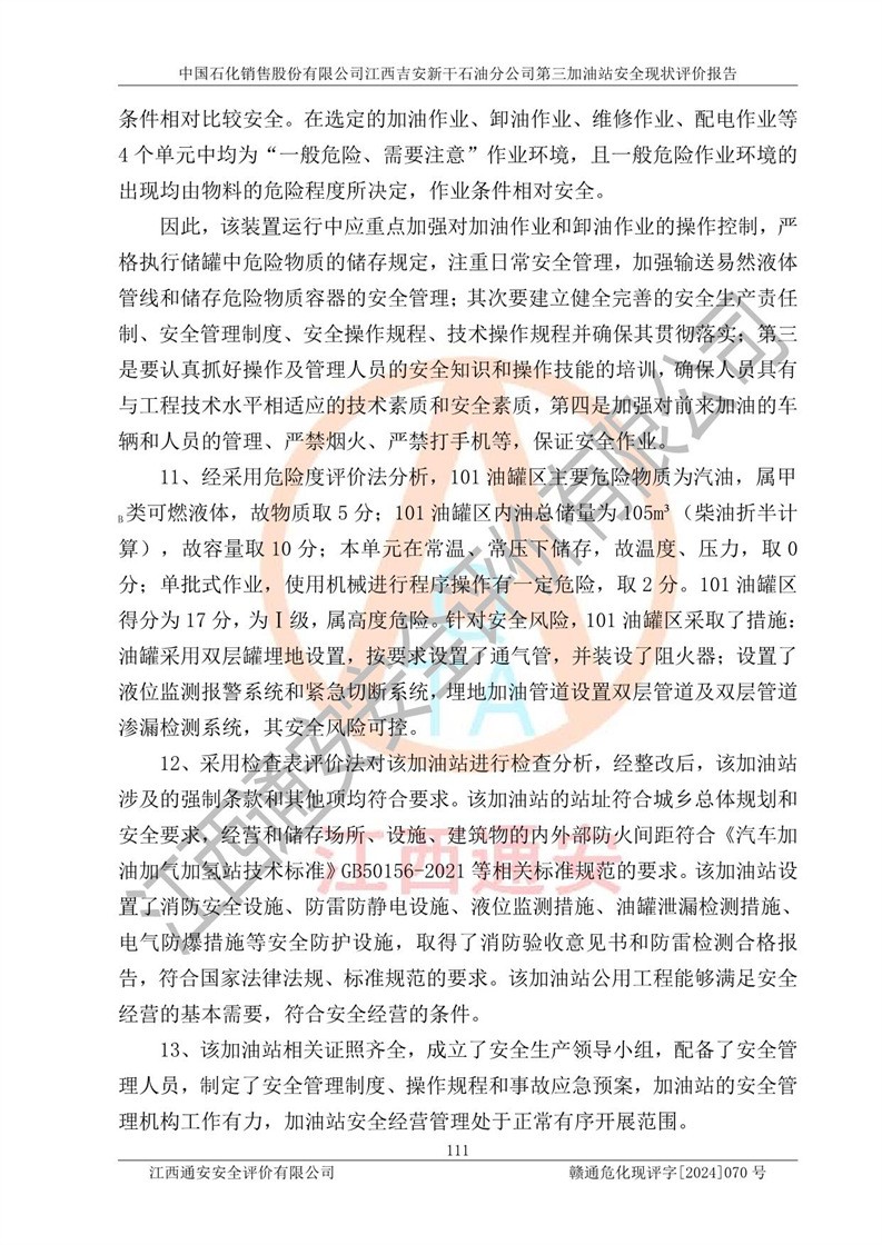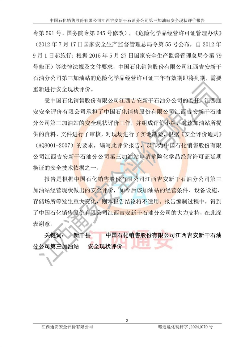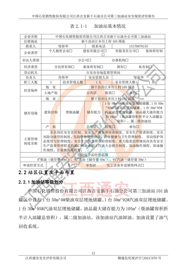 项目名称 | 中国石化销售股份有限公司江西吉安新干石油分公司第三加油站 安全现状评价报告 | ||||