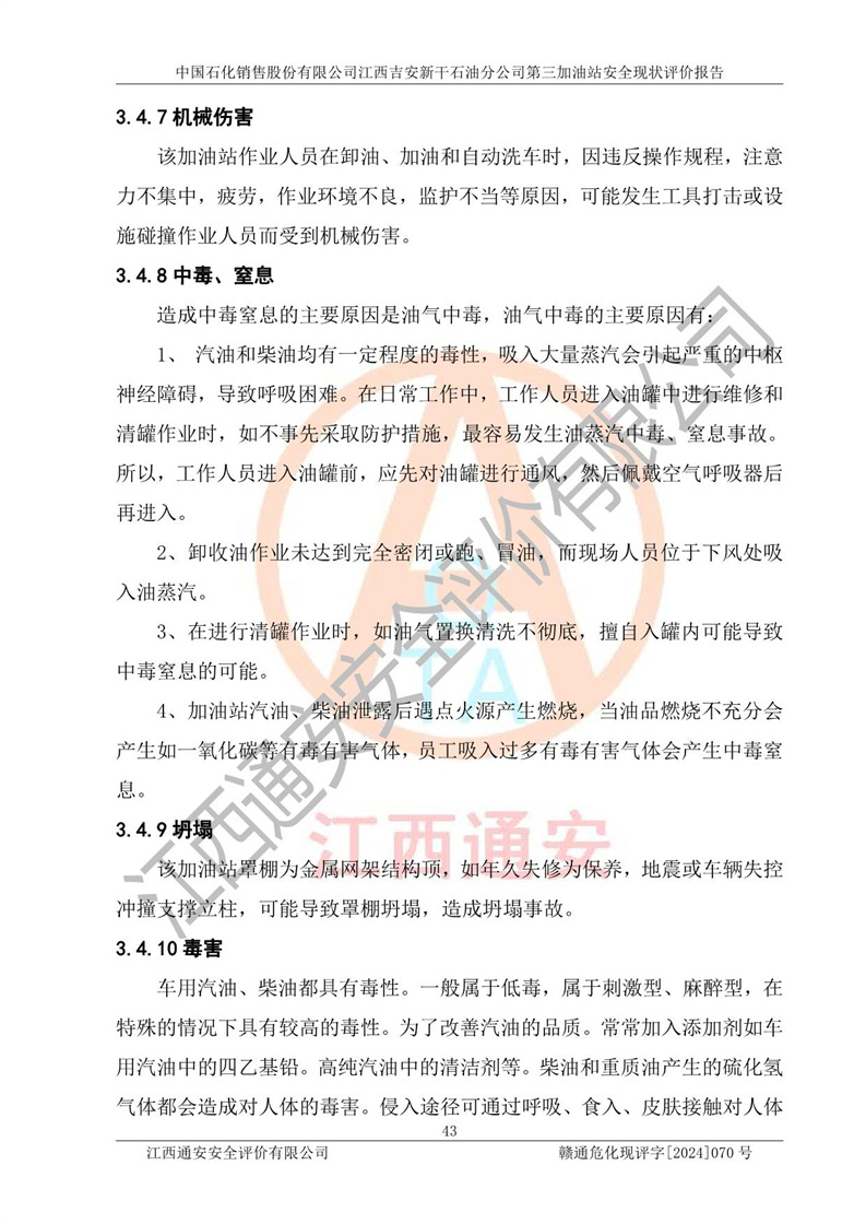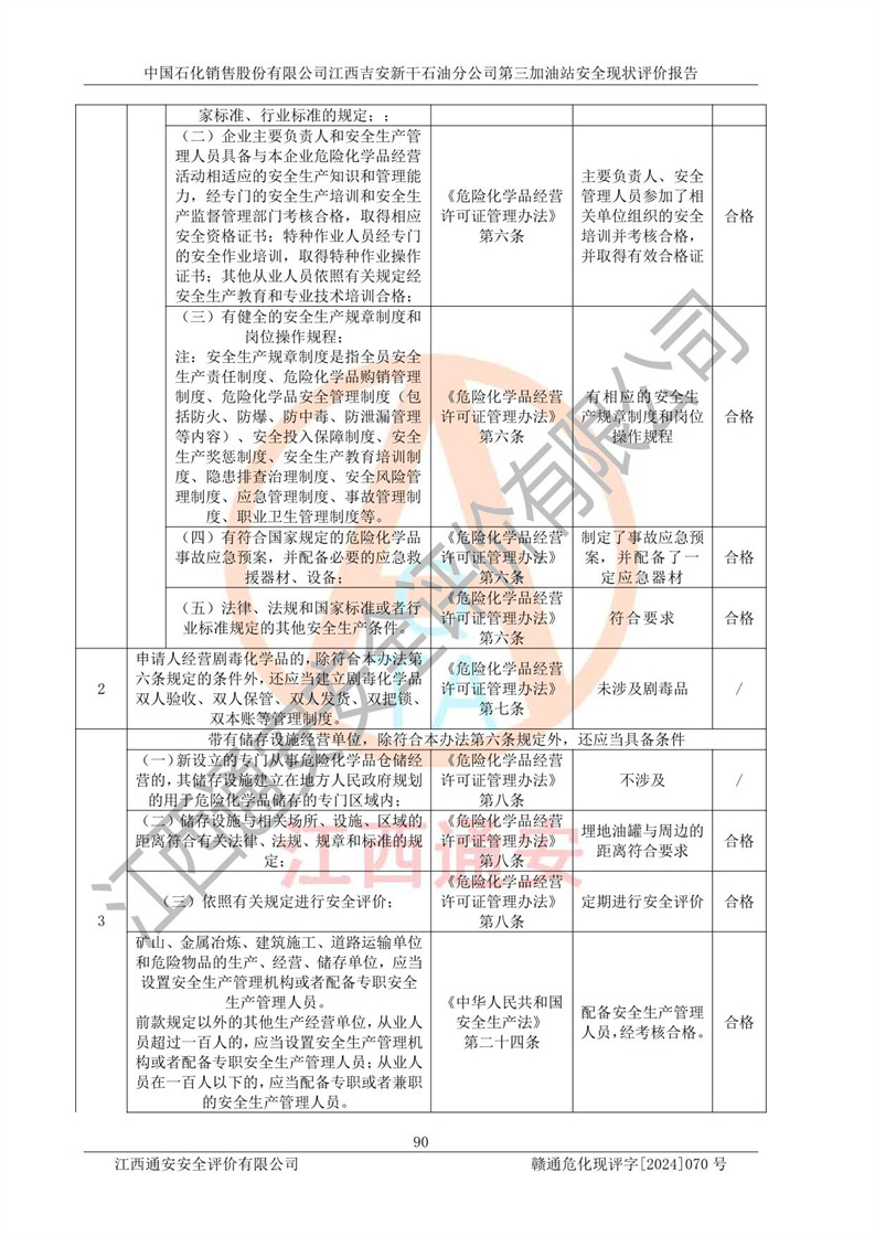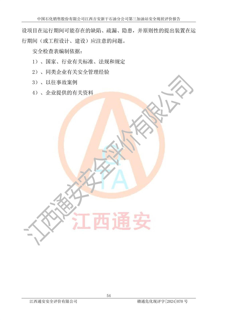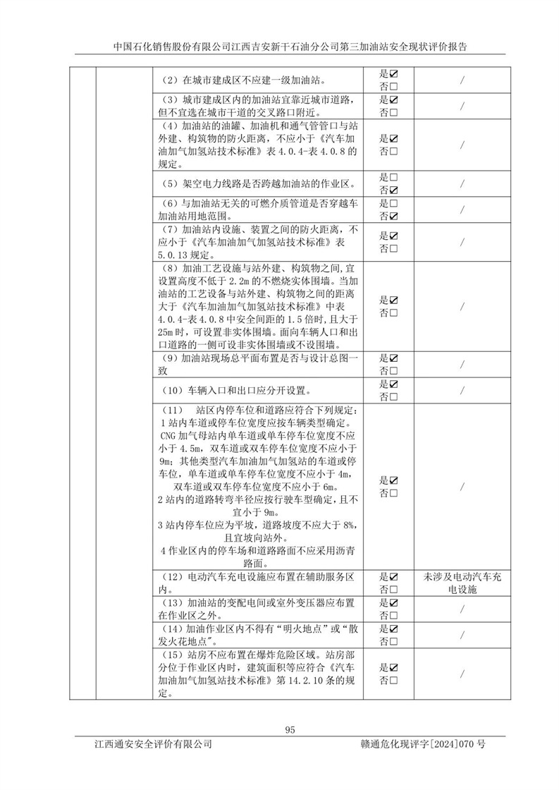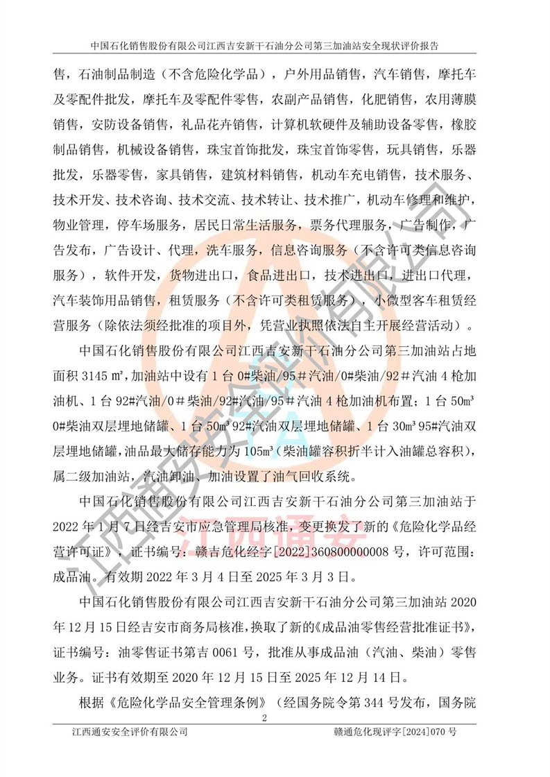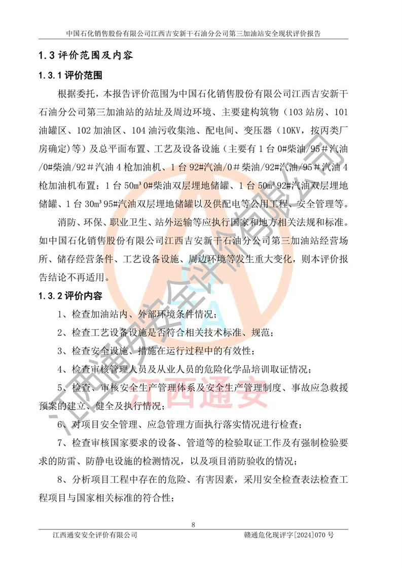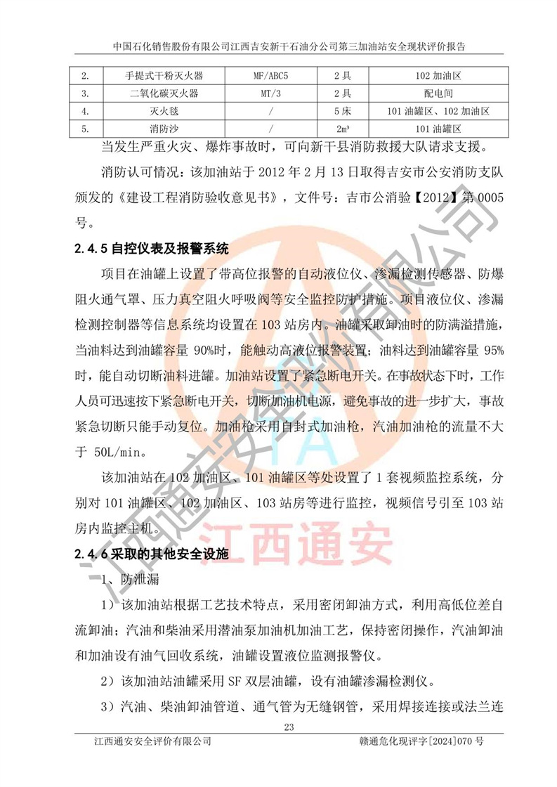 项目名称 | 中国石化销售股份有限公司江西吉安新干石油分公司第三加油站 安全现状评价报告 | ||||