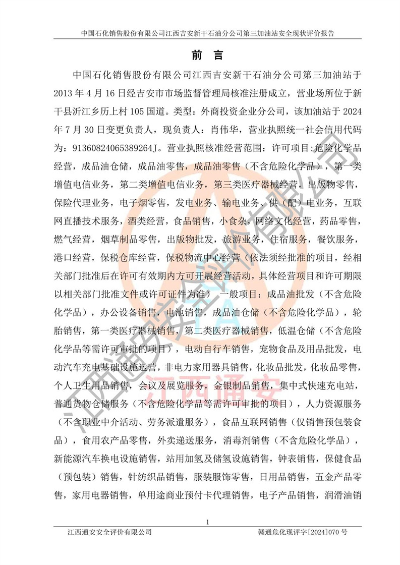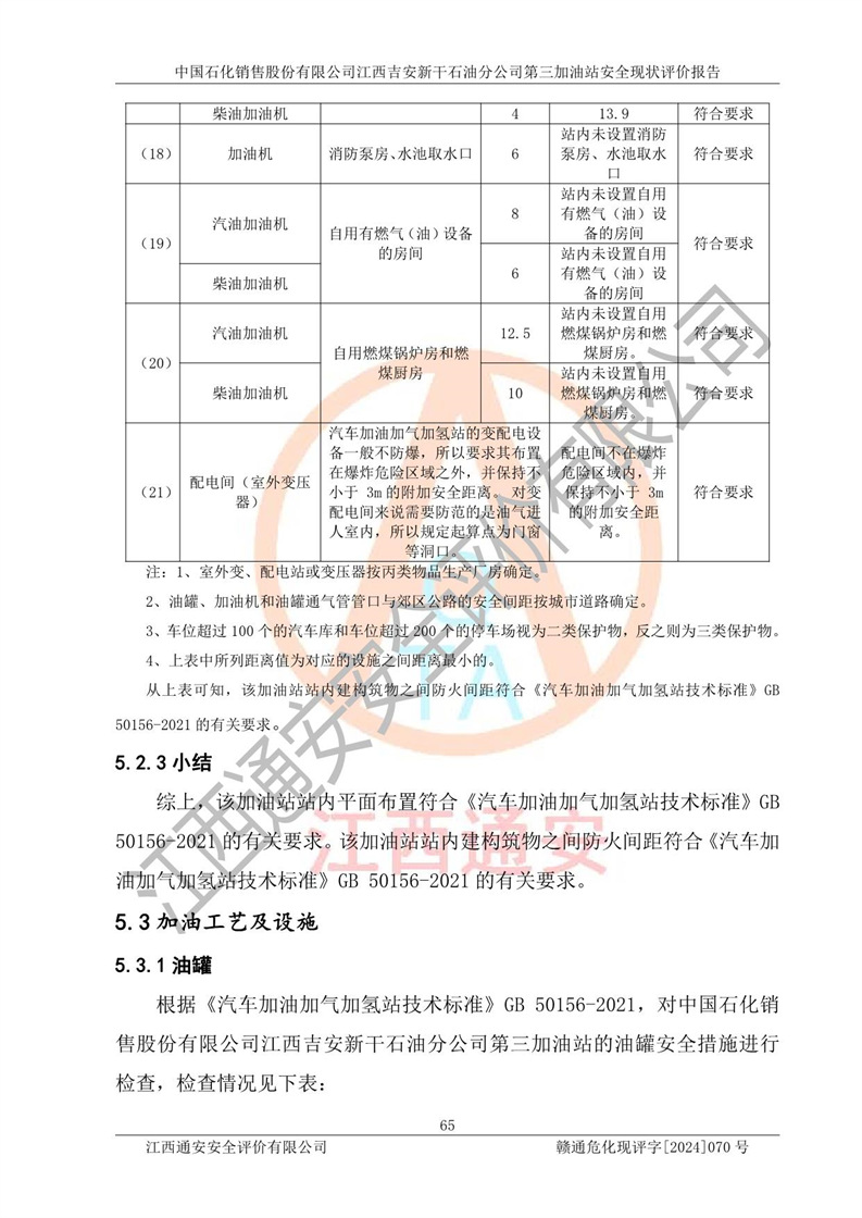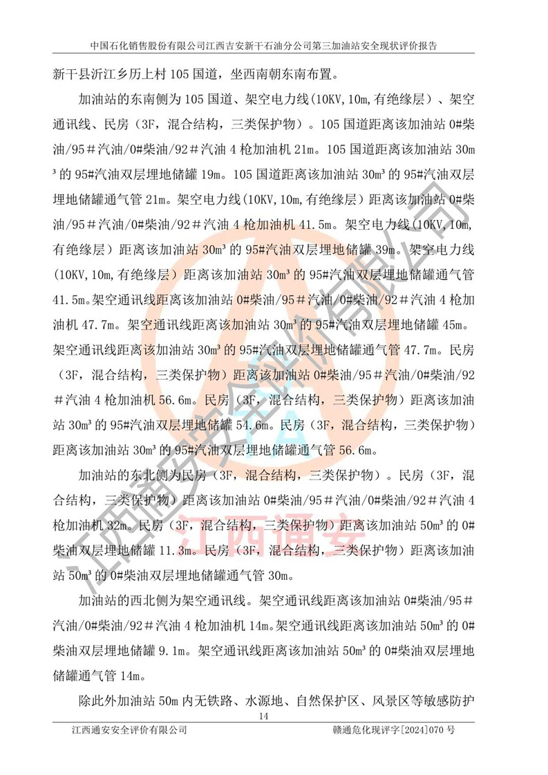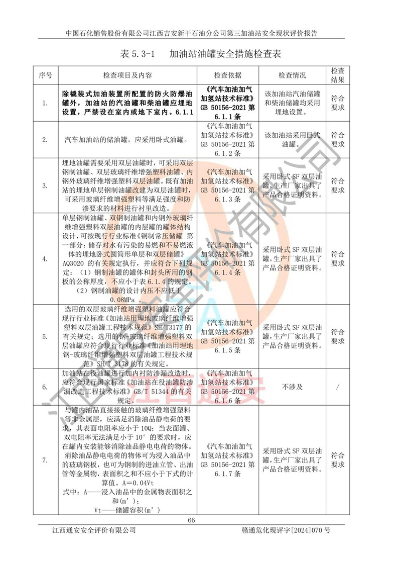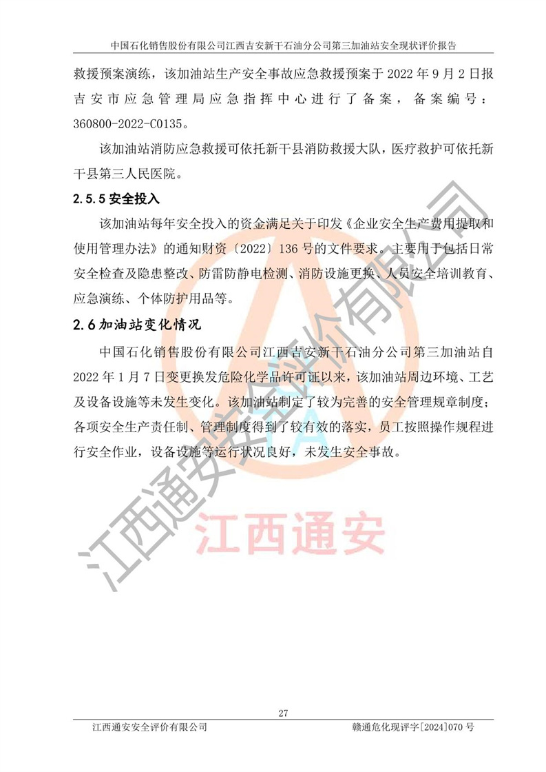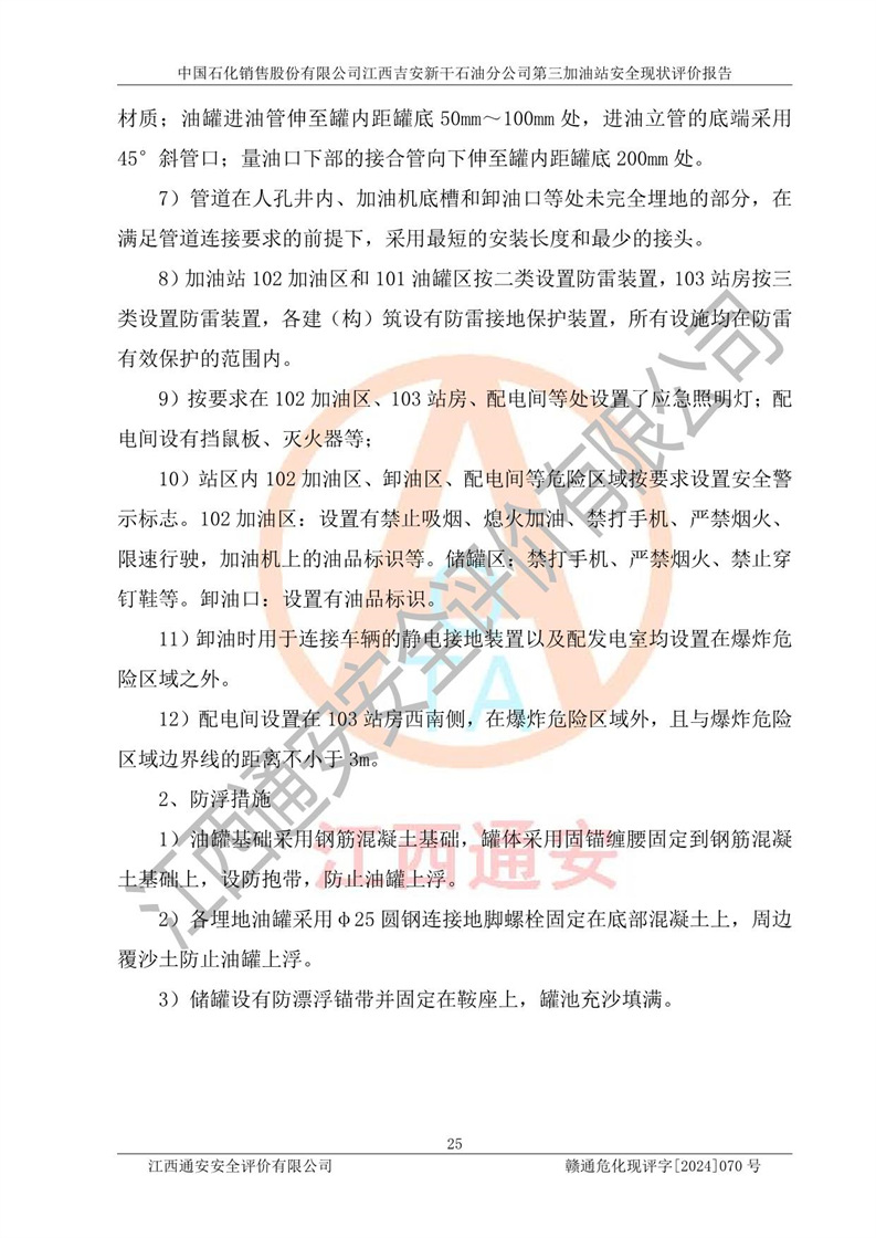 项目名称 | 中国石化销售股份有限公司江西吉安新干石油分公司第三加油站 安全现状评价报告 | ||||
