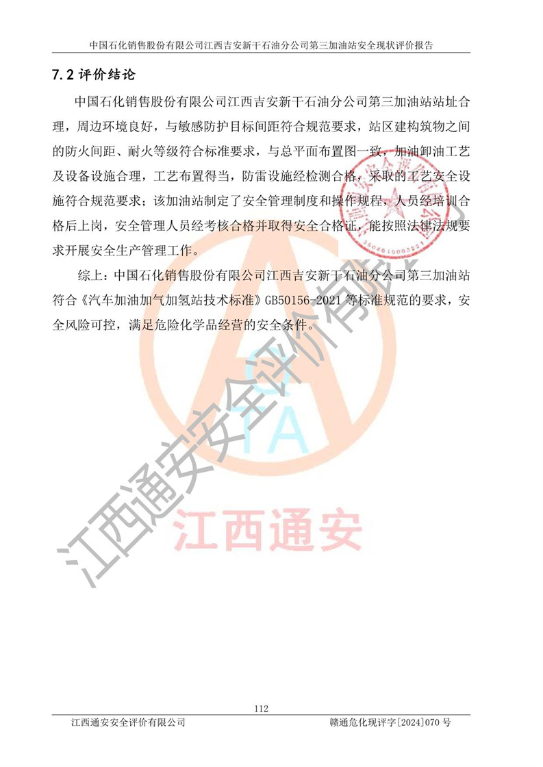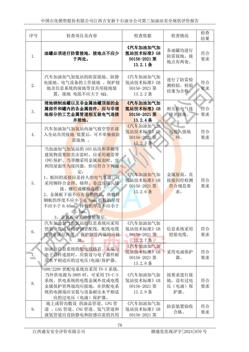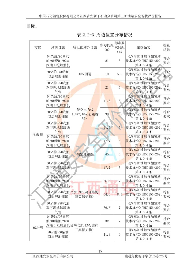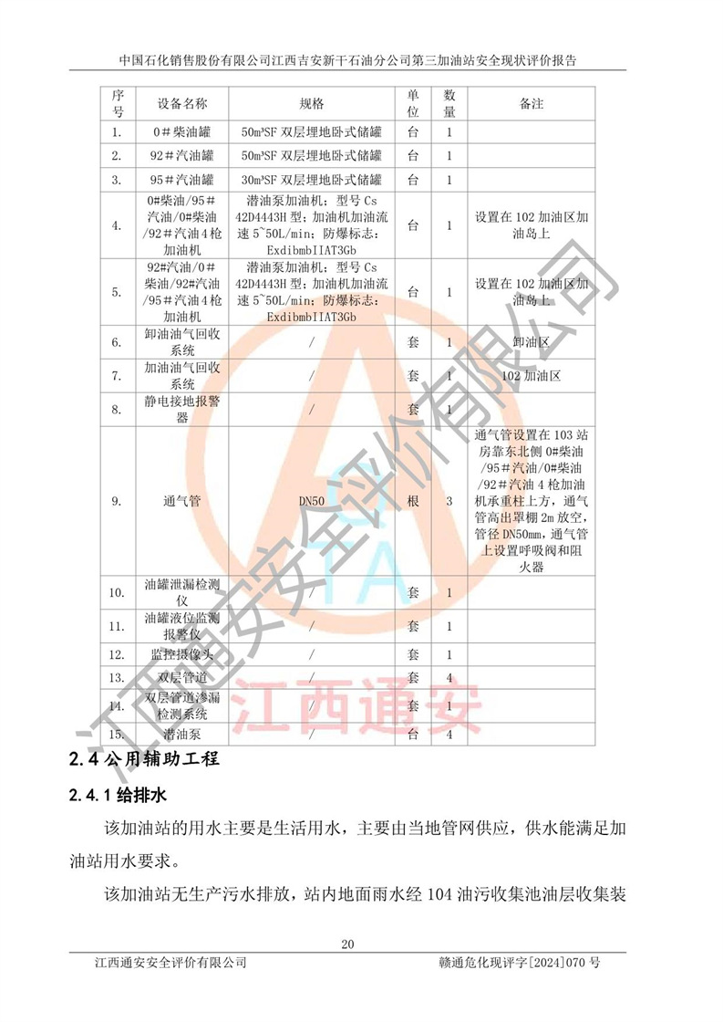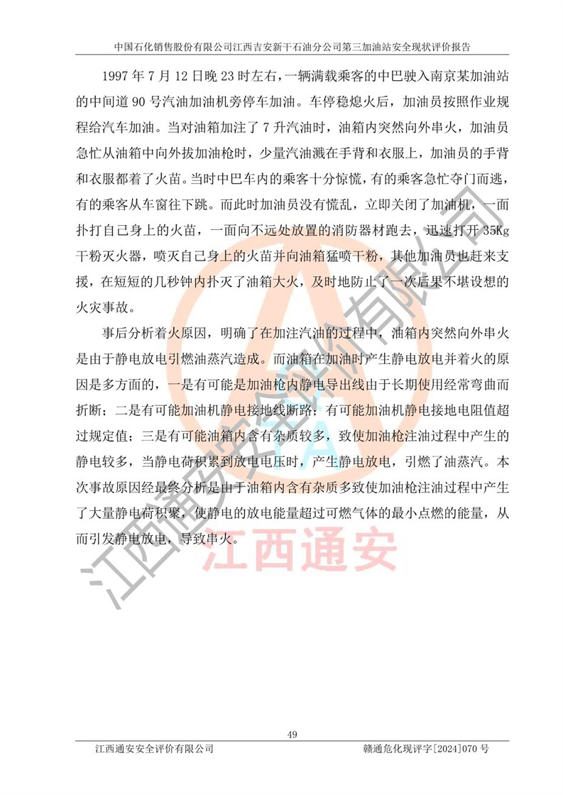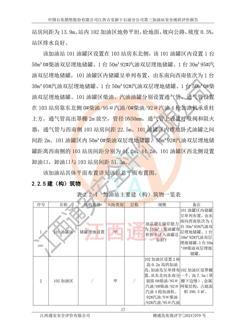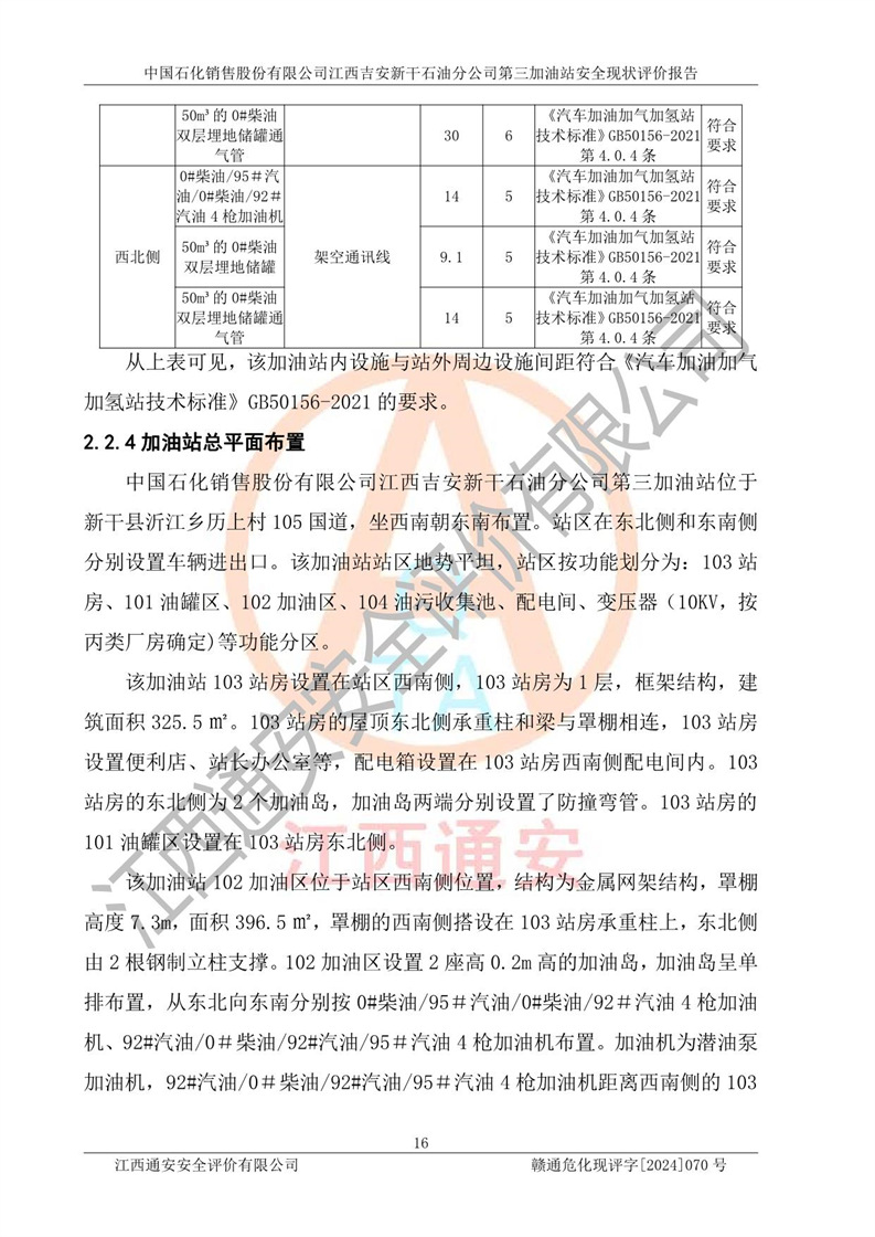 项目名称 | 中国石化销售股份有限公司江西吉安新干石油分公司第三加油站 安全现状评价报告 | ||||