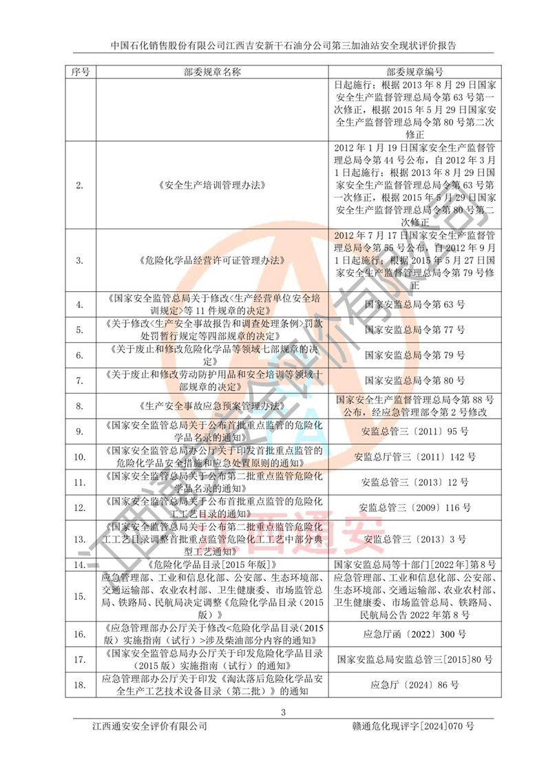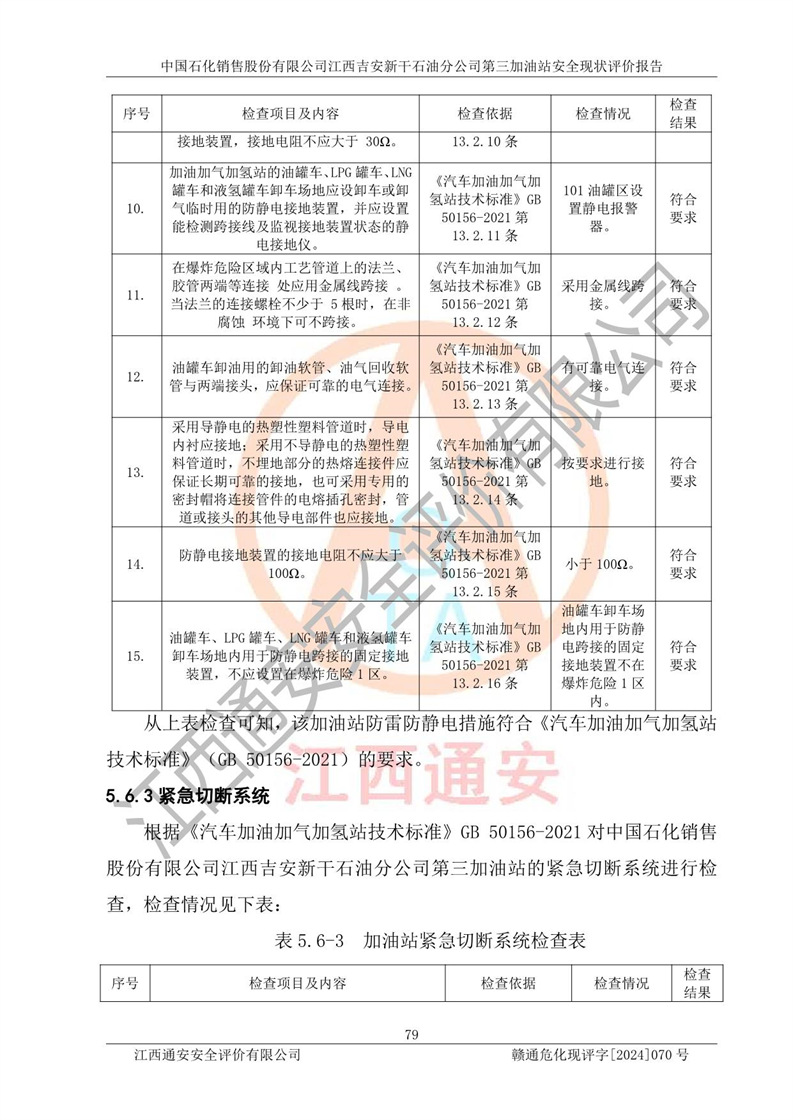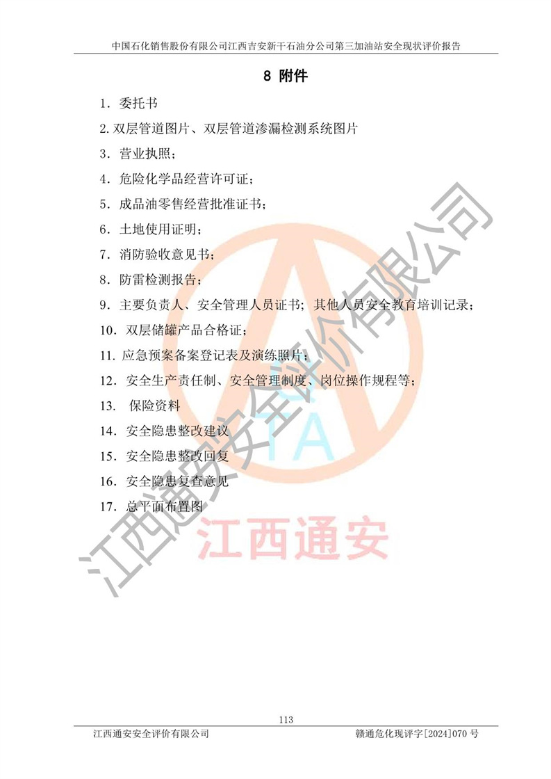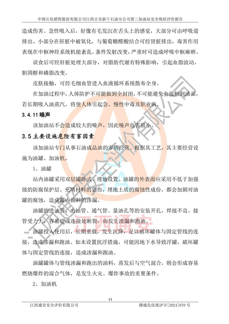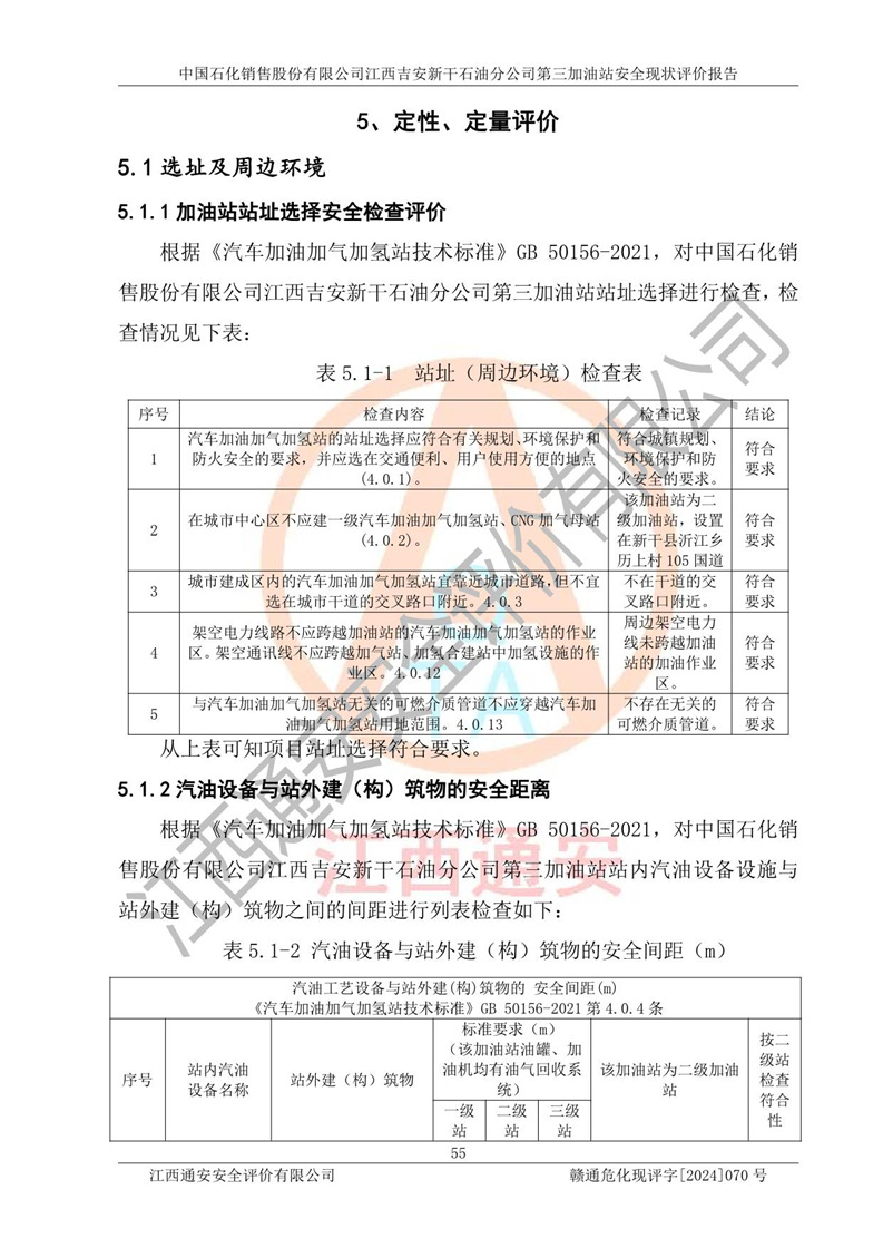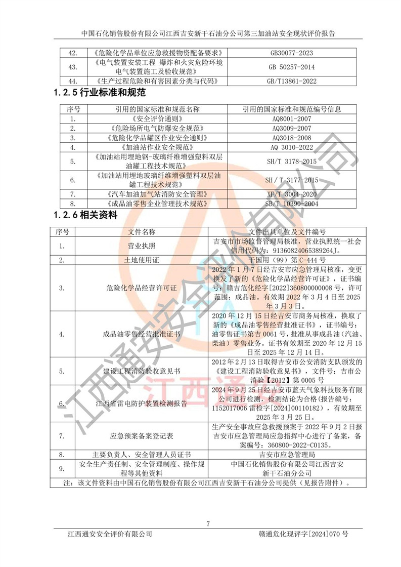 项目名称 | 中国石化销售股份有限公司江西吉安新干石油分公司第三加油站 安全现状评价报告 | ||||