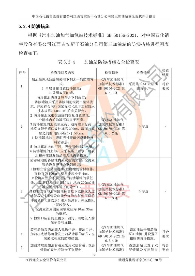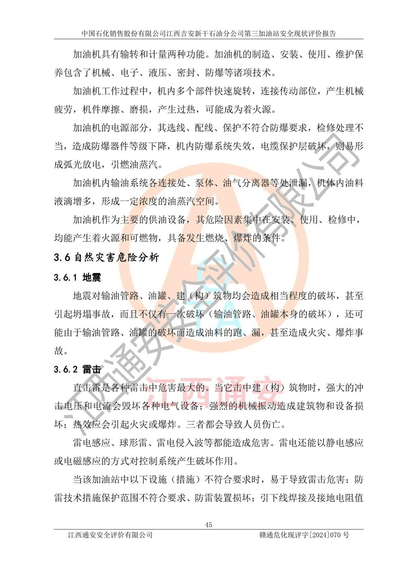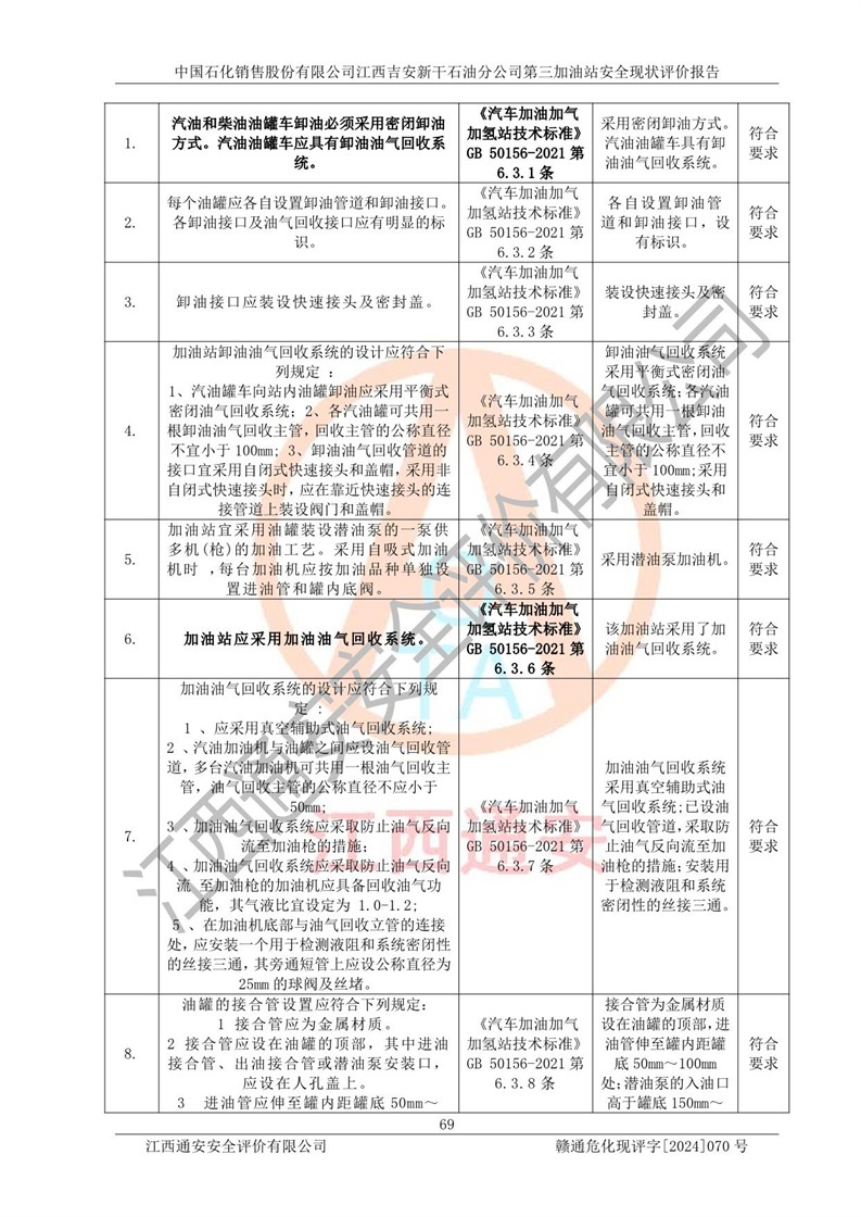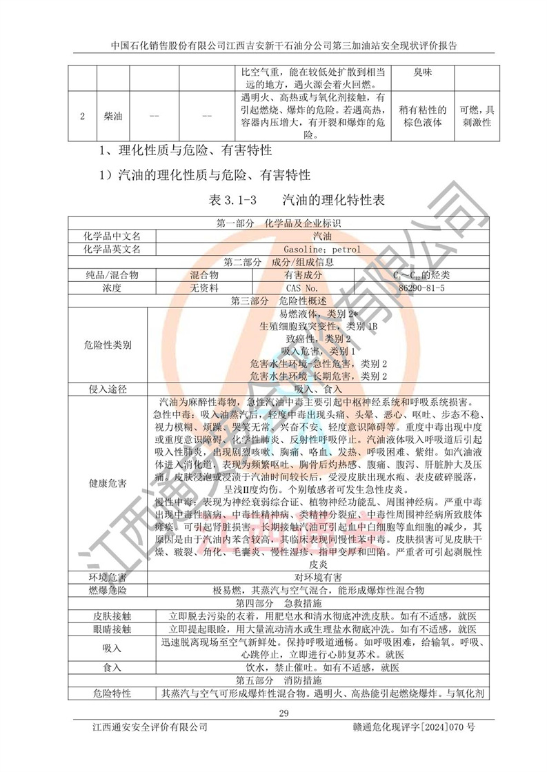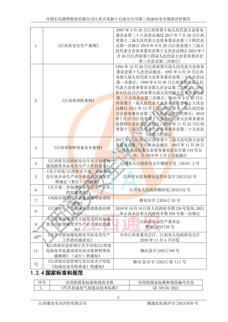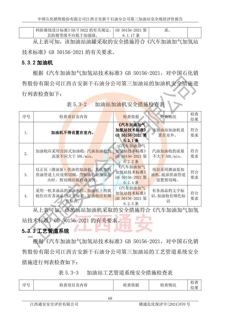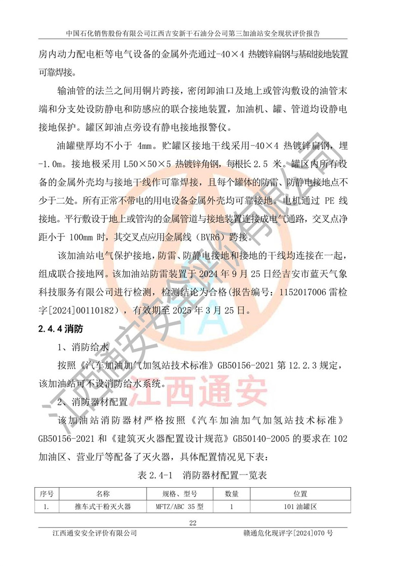 项目名称 | 中国石化销售股份有限公司江西吉安新干石油分公司第三加油站 安全现状评价报告 | ||||