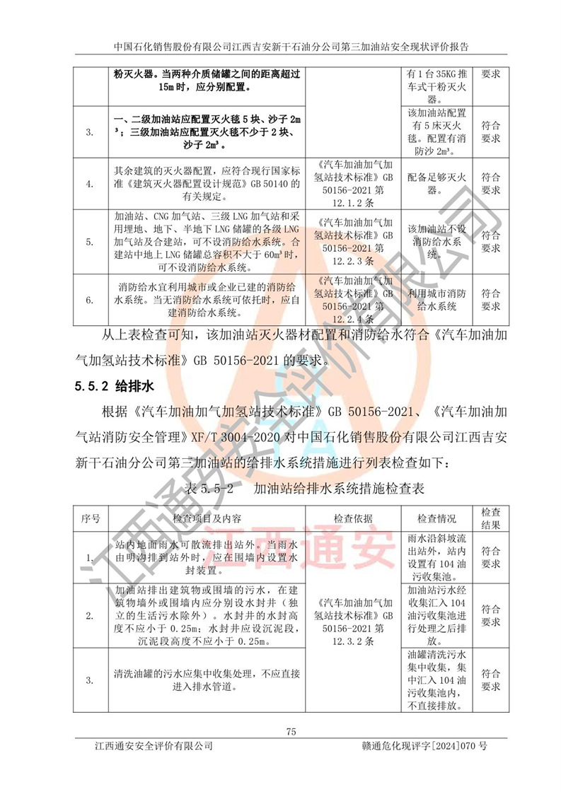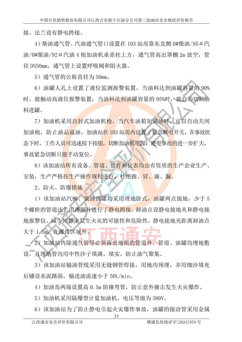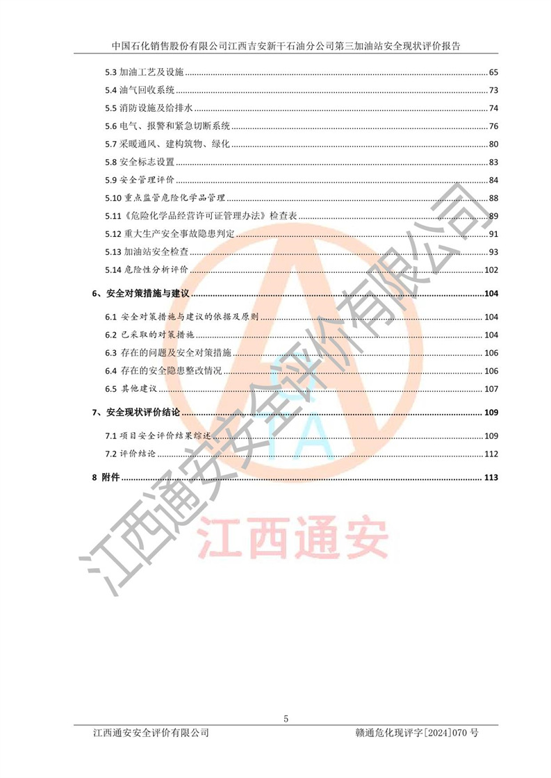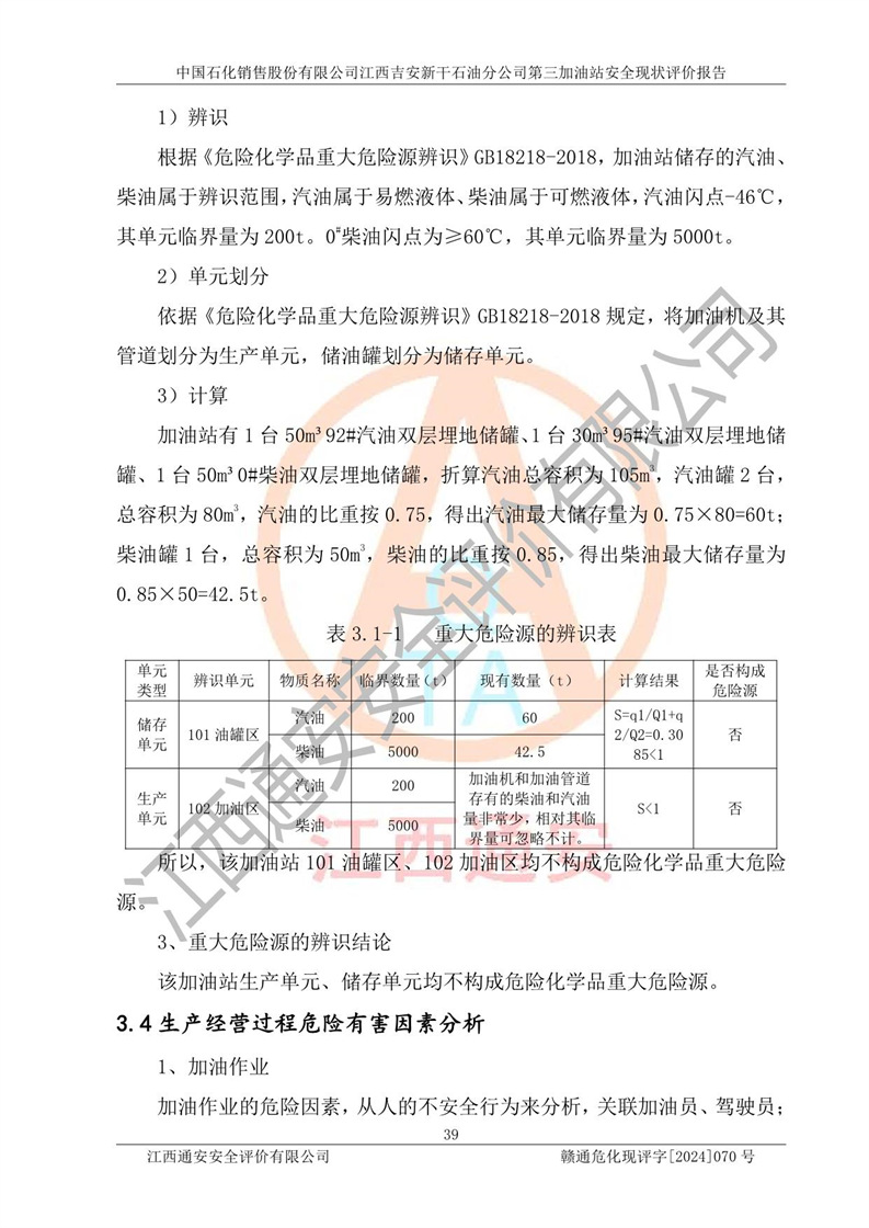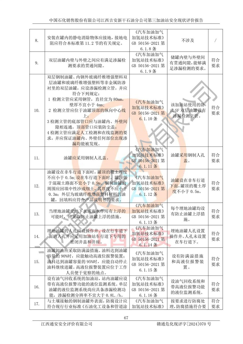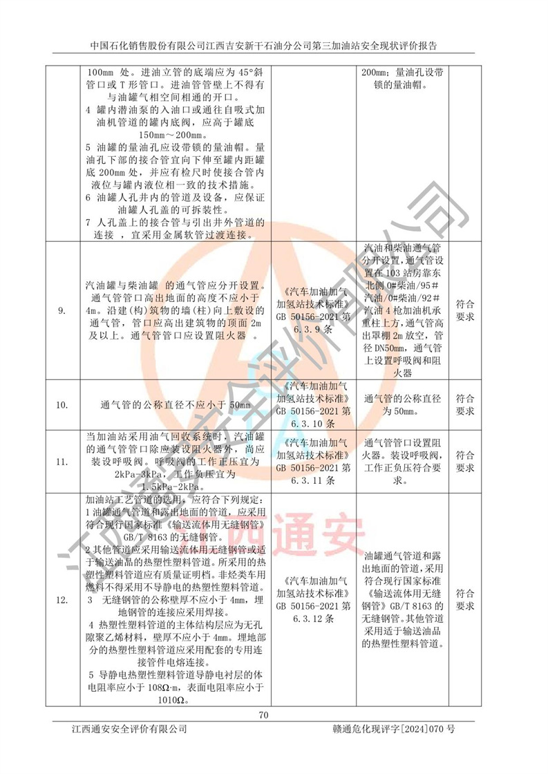 项目名称 | 中国石化销售股份有限公司江西吉安新干石油分公司第三加油站 安全现状评价报告 | ||||
