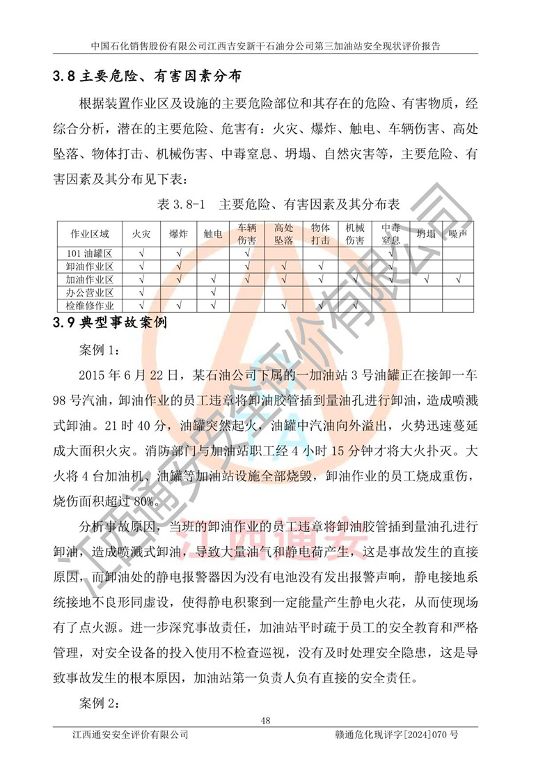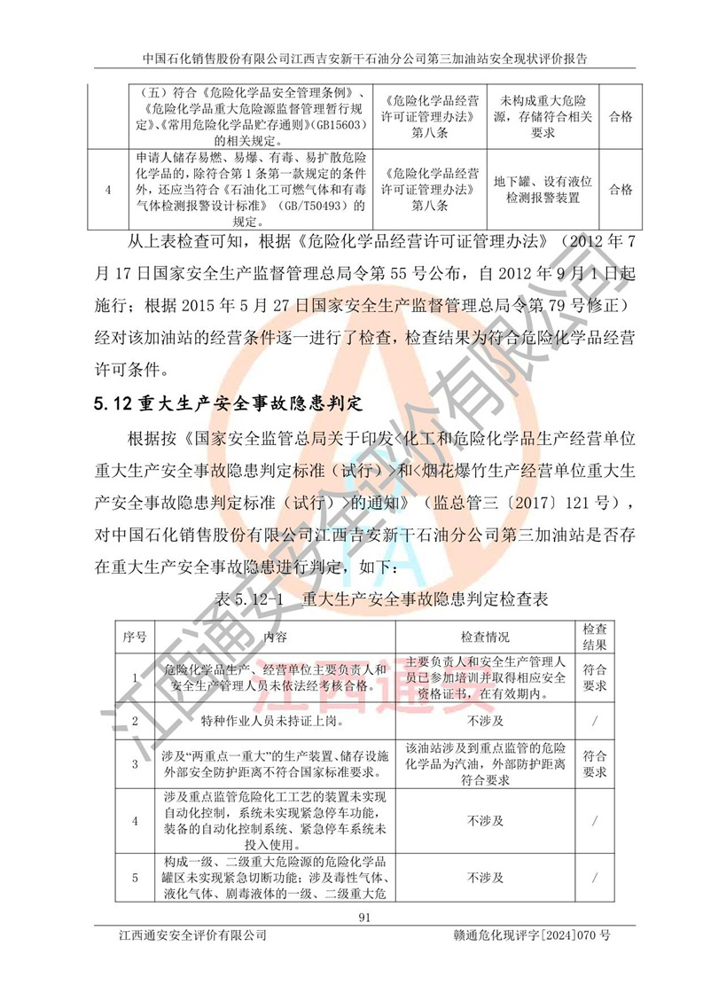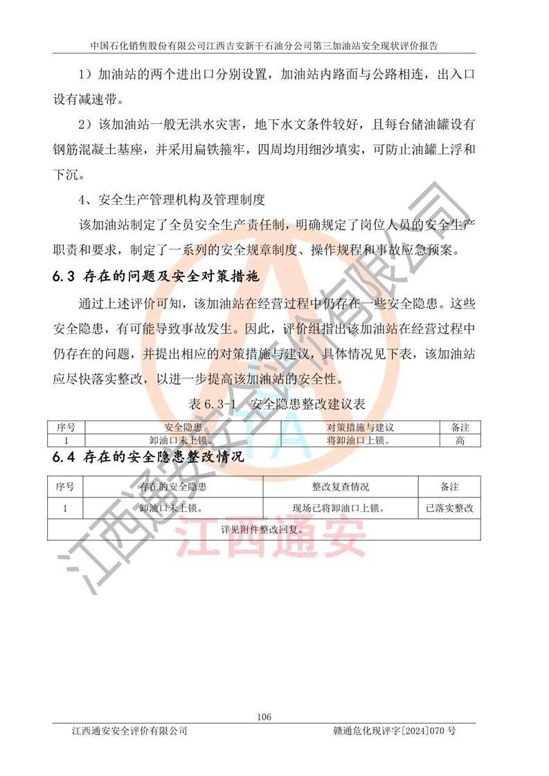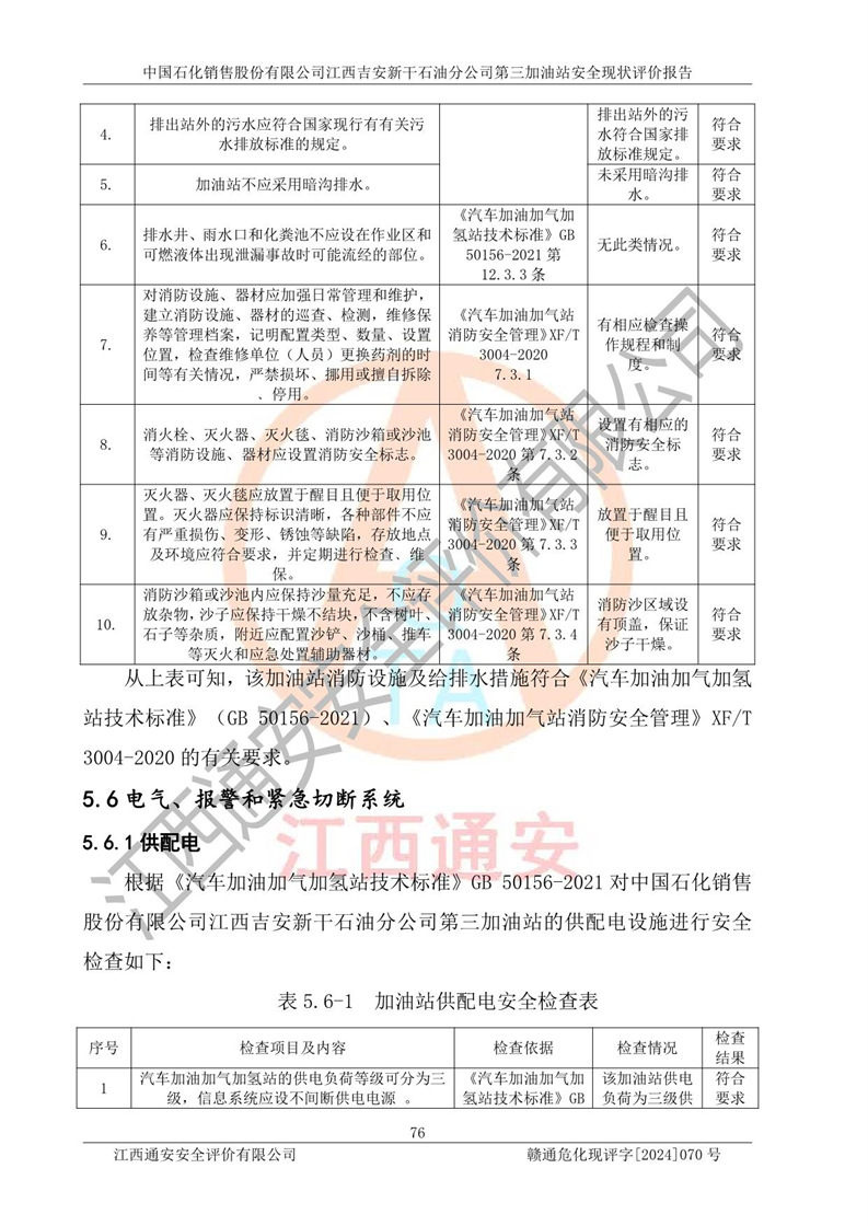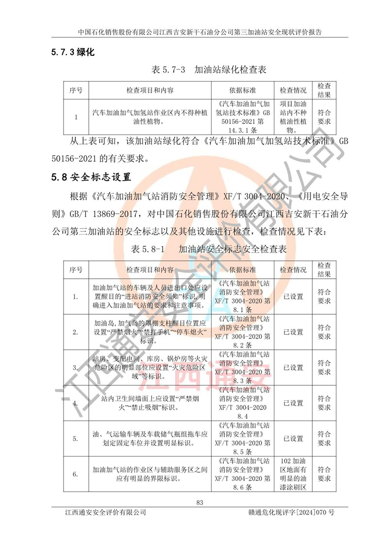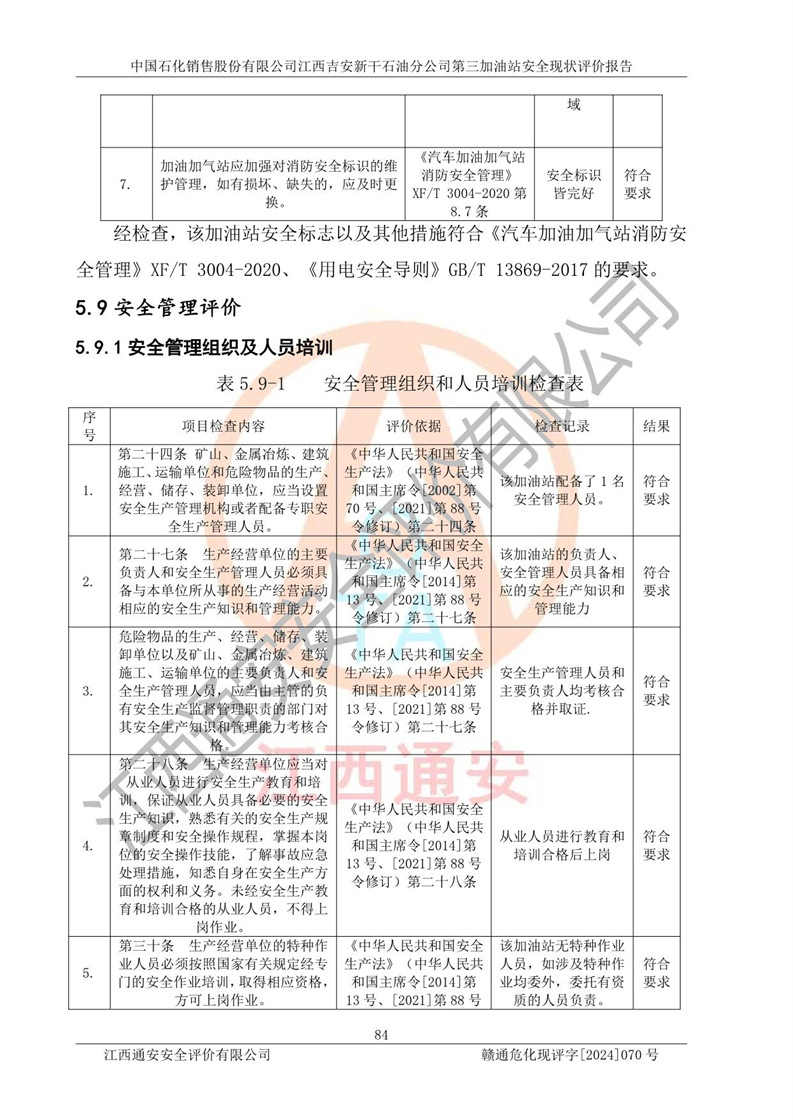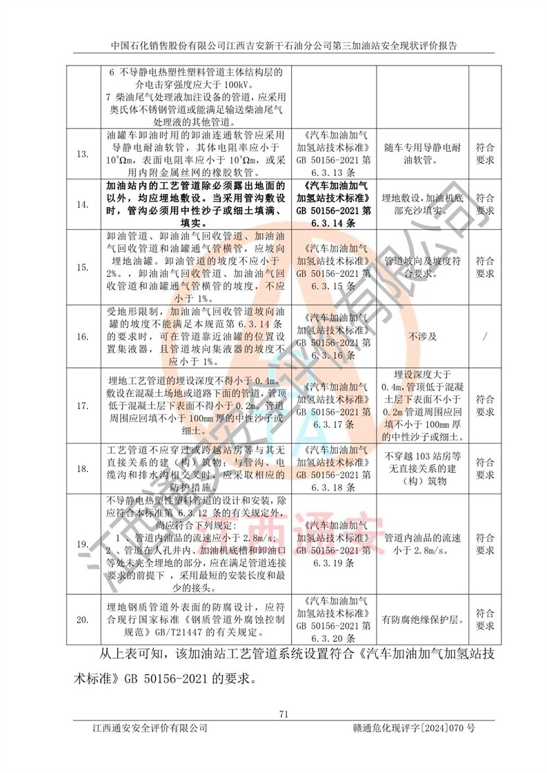 项目名称 | 中国石化销售股份有限公司江西吉安新干石油分公司第三加油站 安全现状评价报告 | ||||