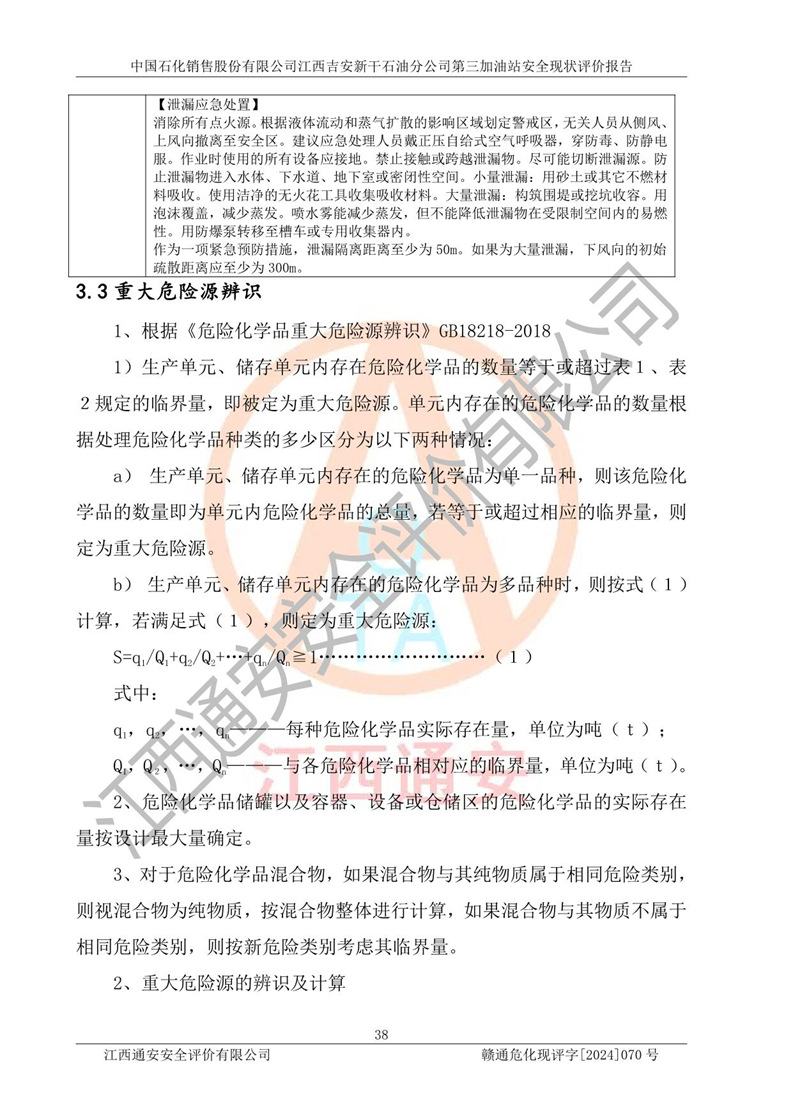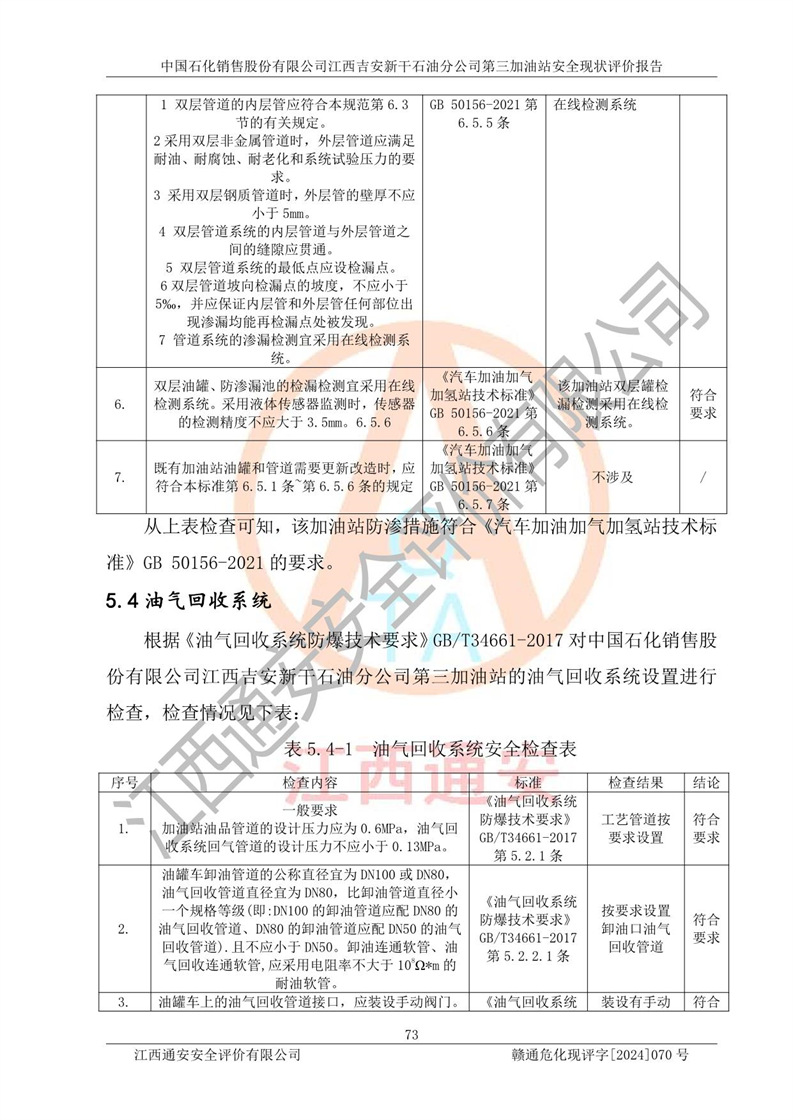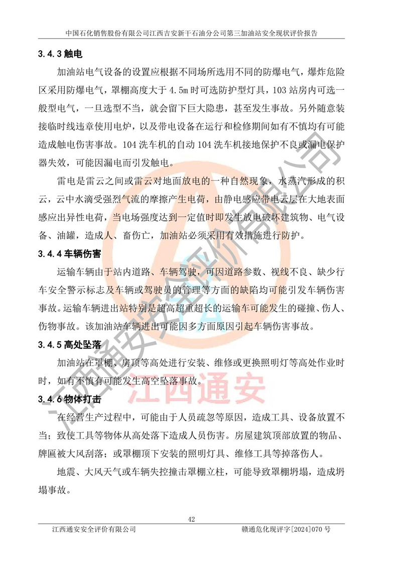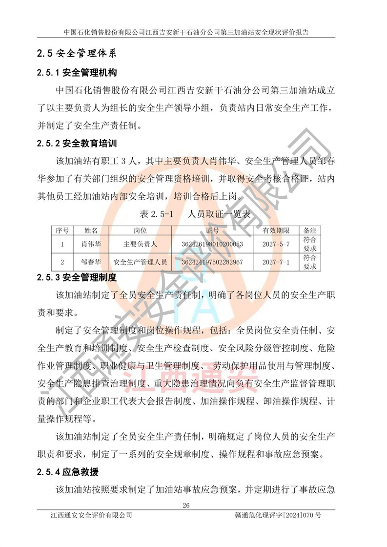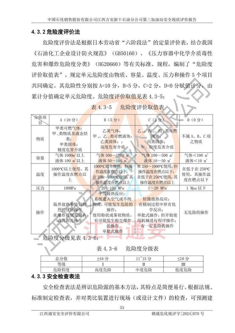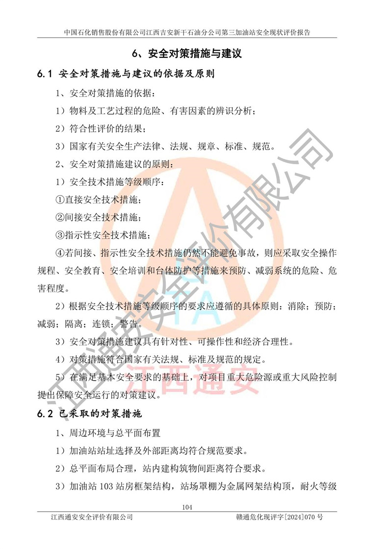 项目名称 | 中国石化销售股份有限公司江西吉安新干石油分公司第三加油站 安全现状评价报告 | ||||