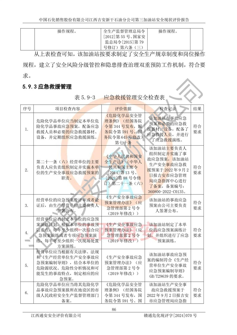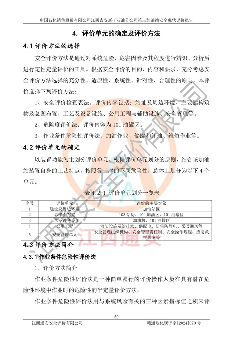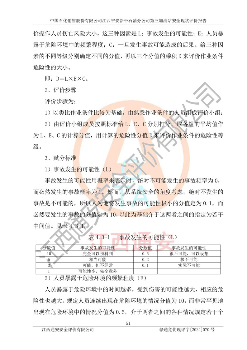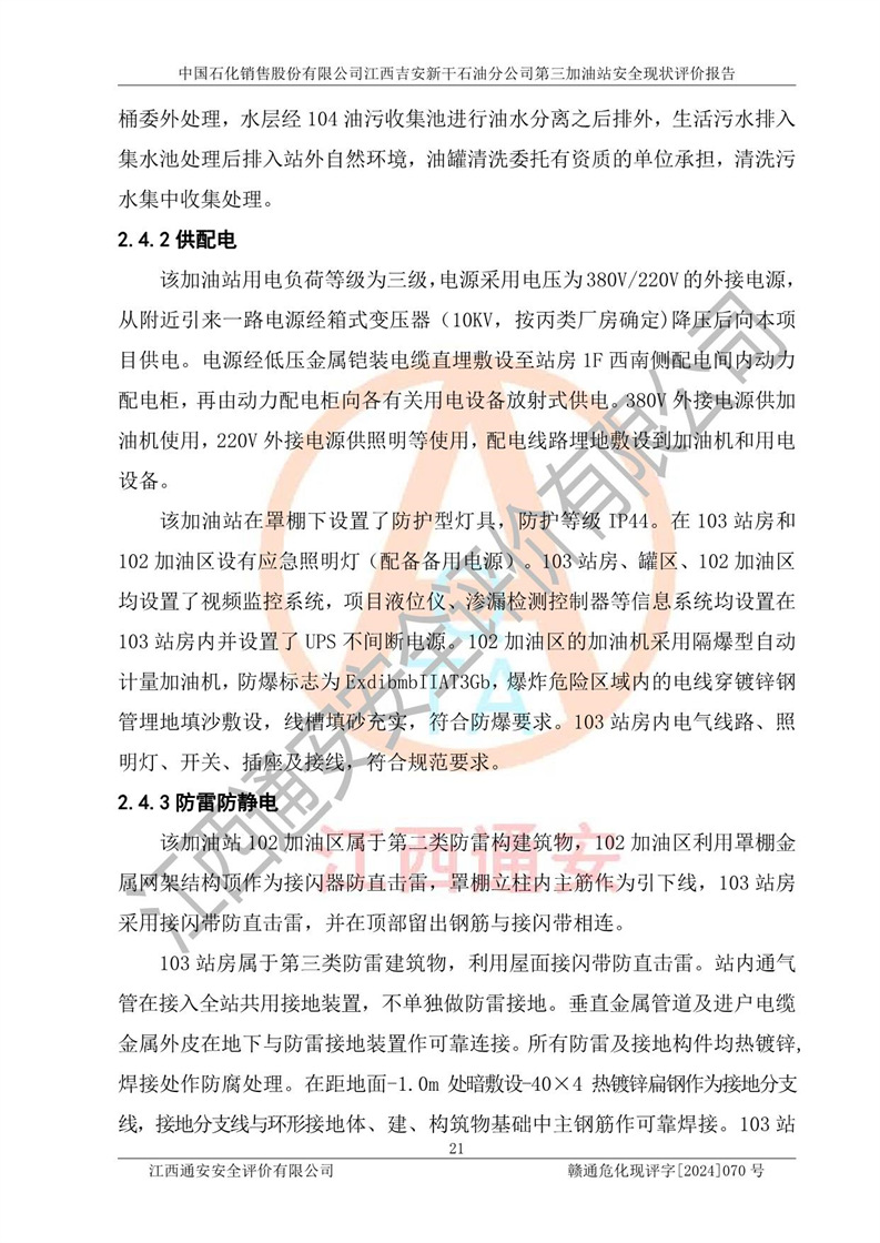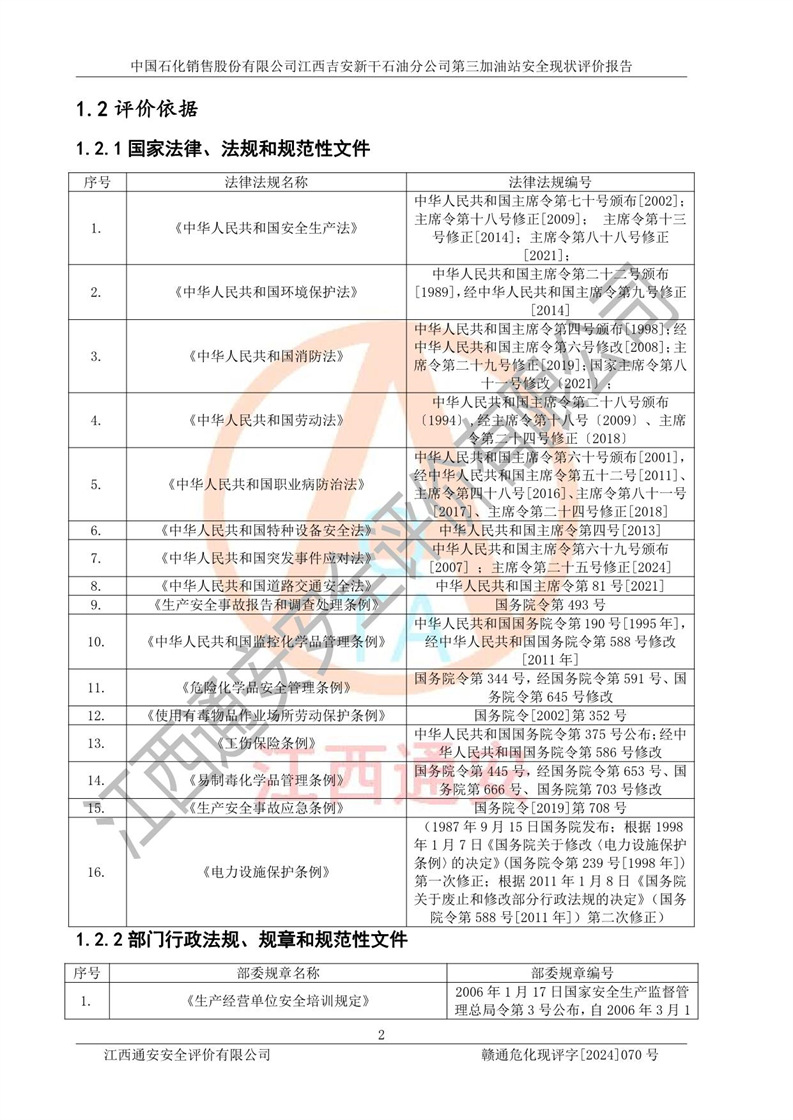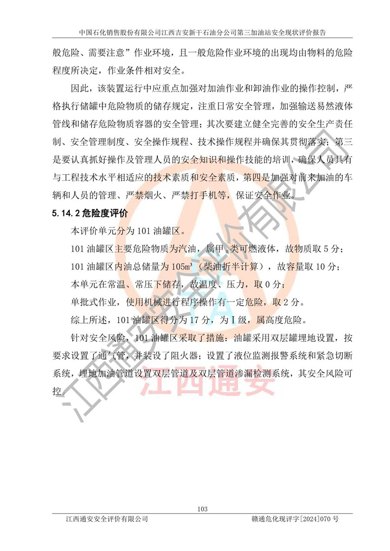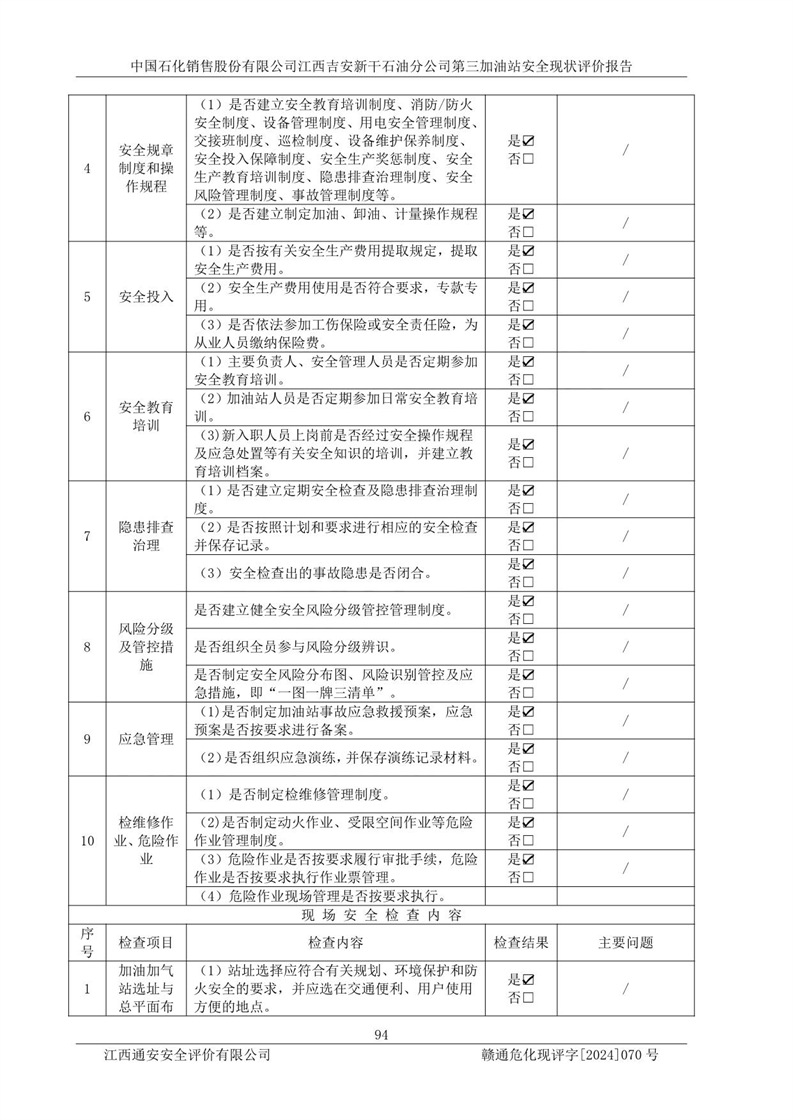 项目名称 | 中国石化销售股份有限公司江西吉安新干石油分公司第三加油站 安全现状评价报告 | ||||