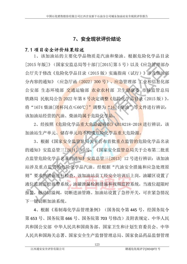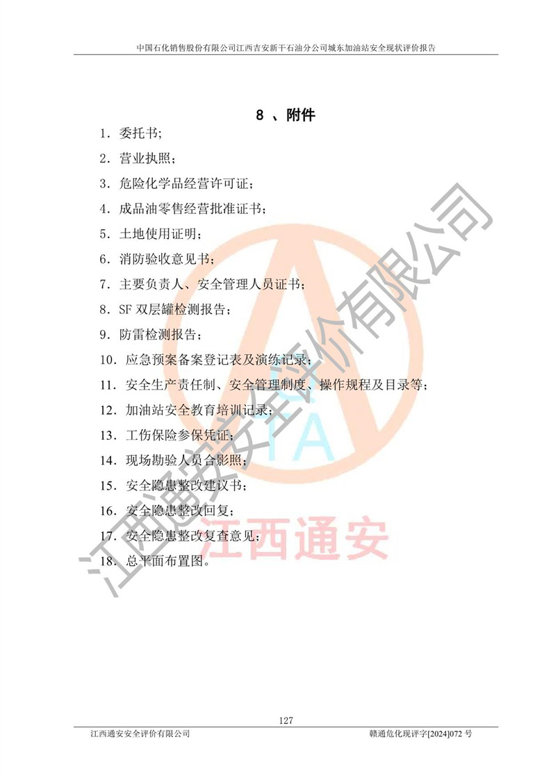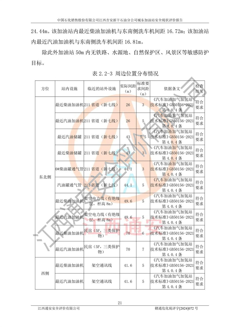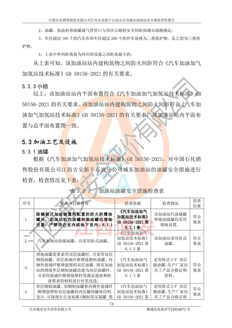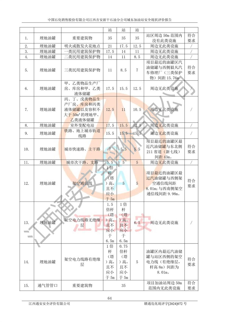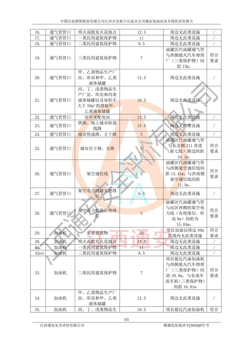 评价报告名称 | 中国石化销售股份有限公司江西吉安新干石油分公司城东加油站安全现状评价报告 | |||