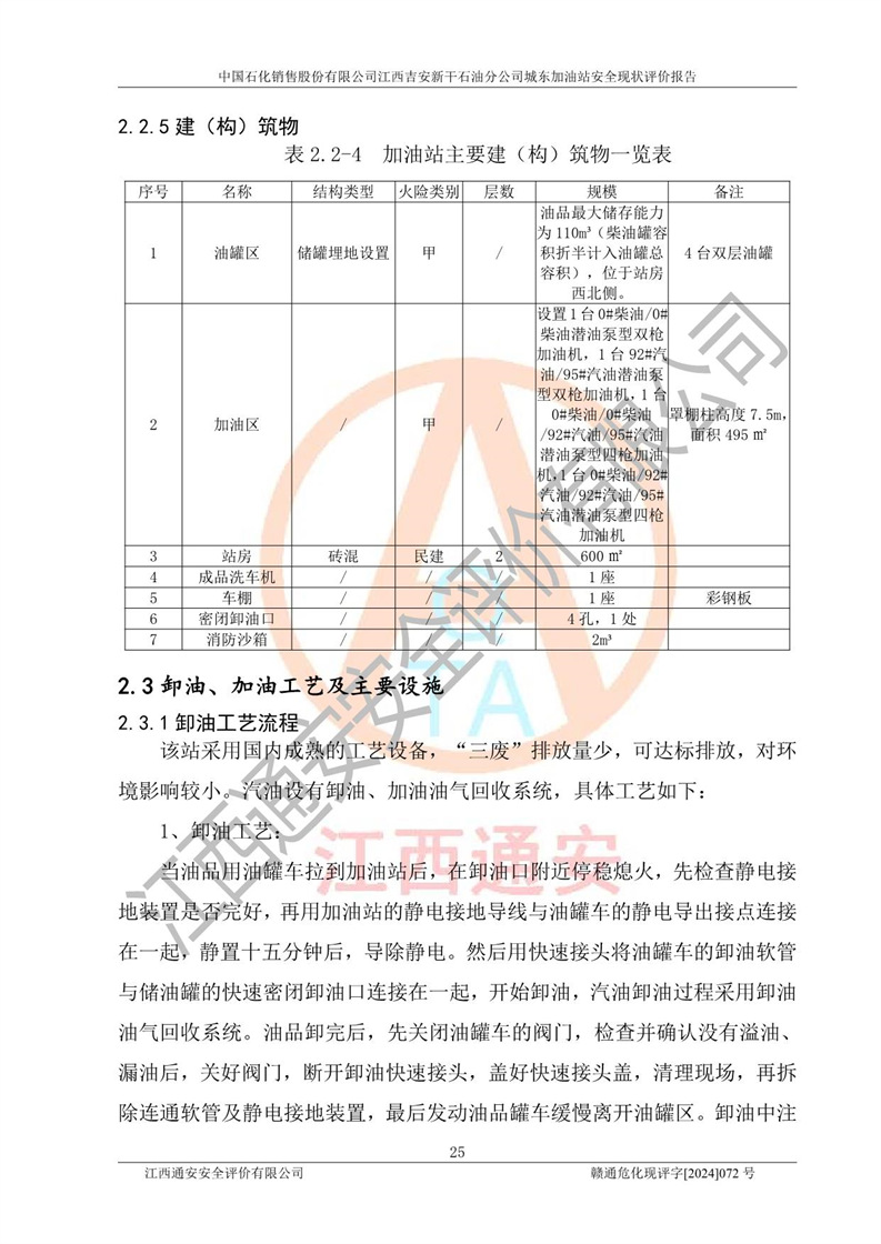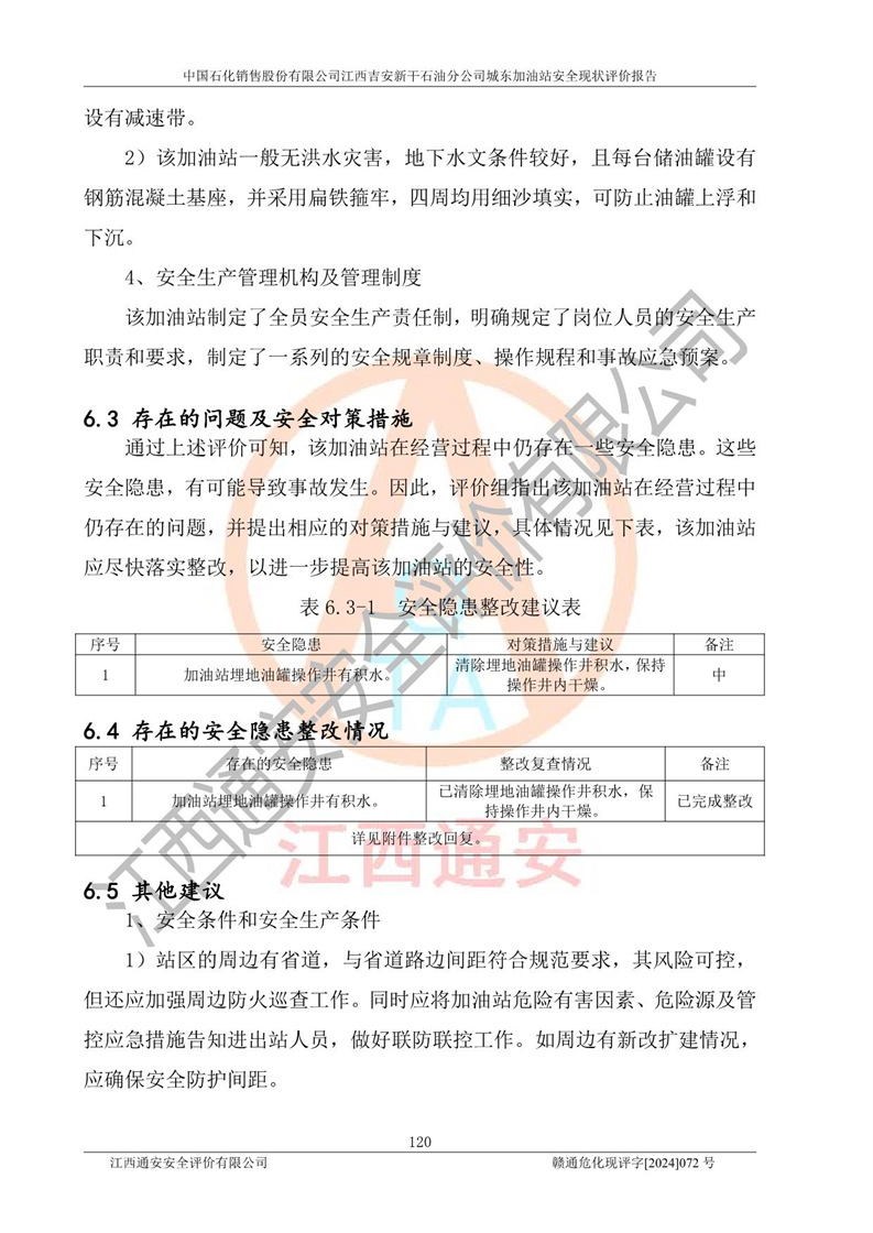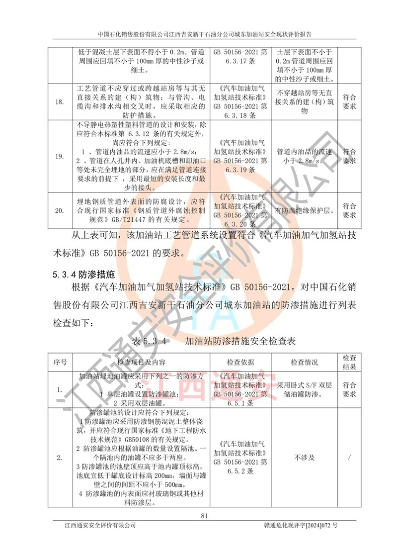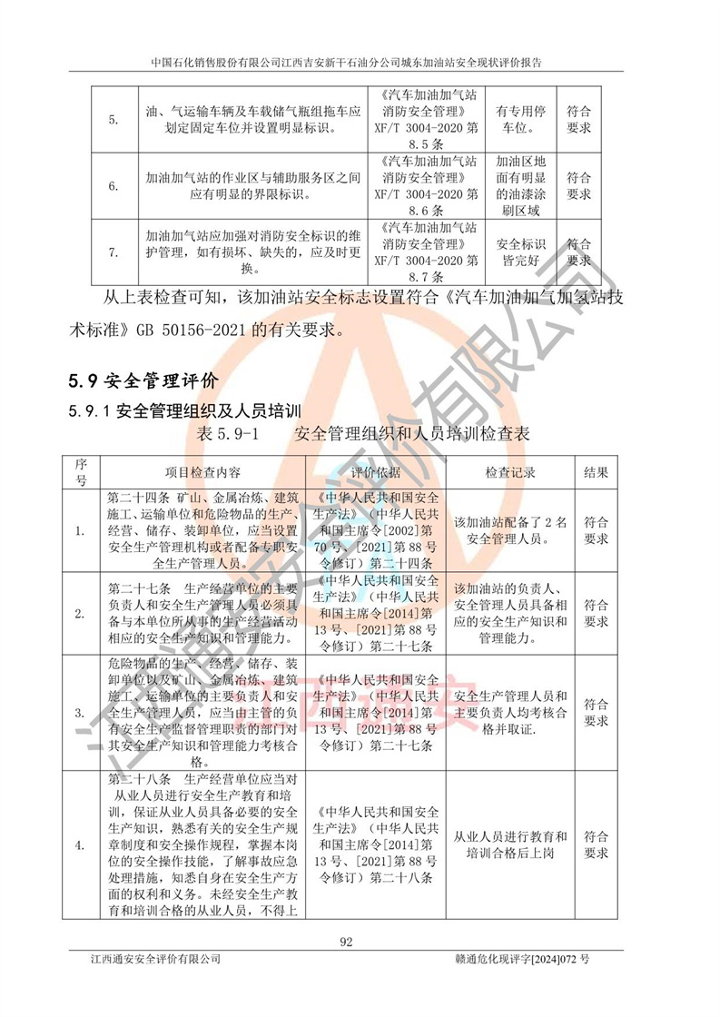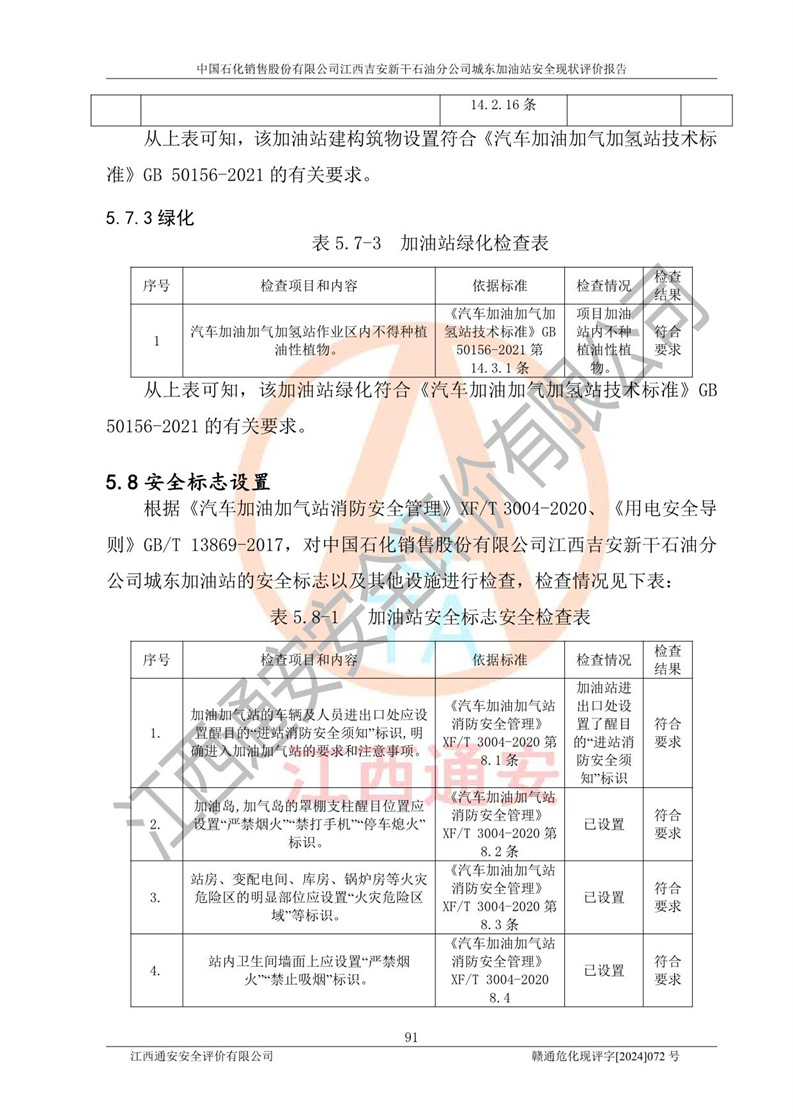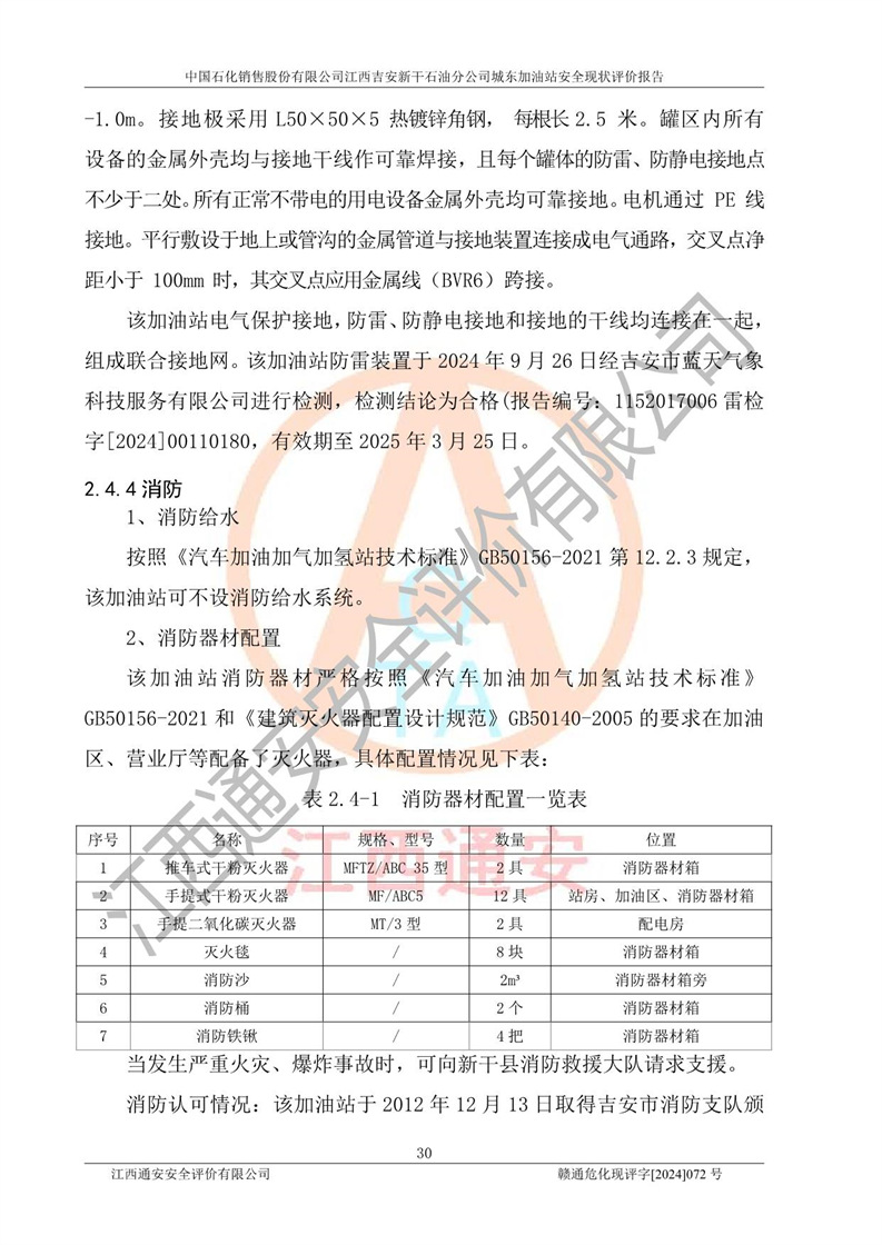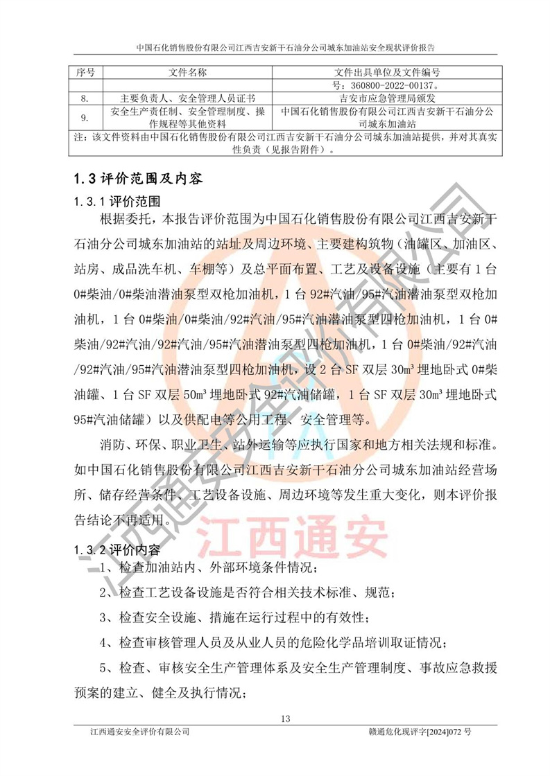 评价报告名称 | 中国石化销售股份有限公司江西吉安新干石油分公司城东加油站安全现状评价报告 | |||