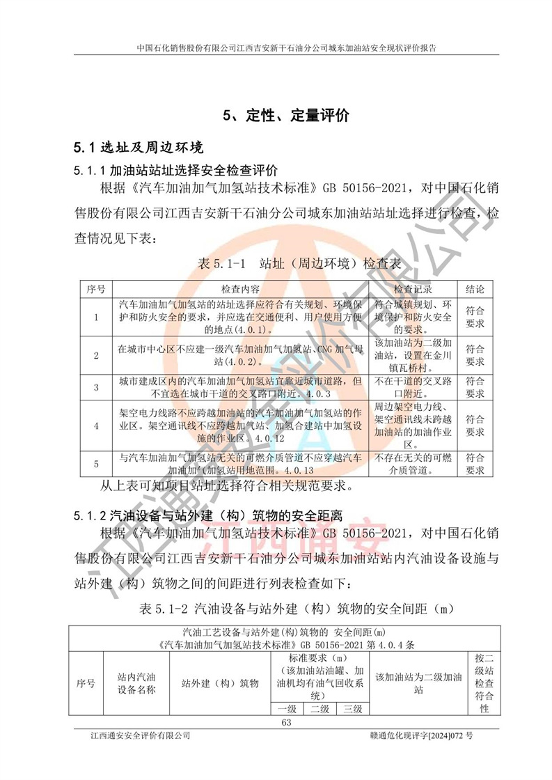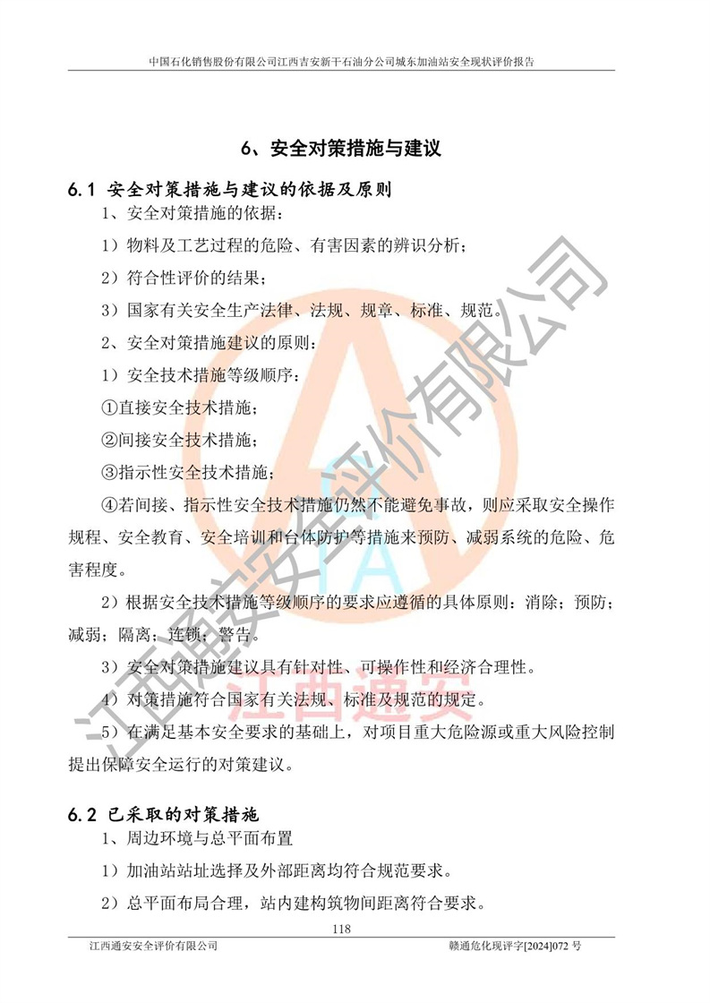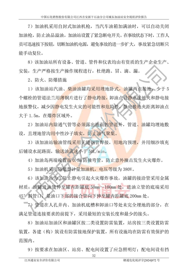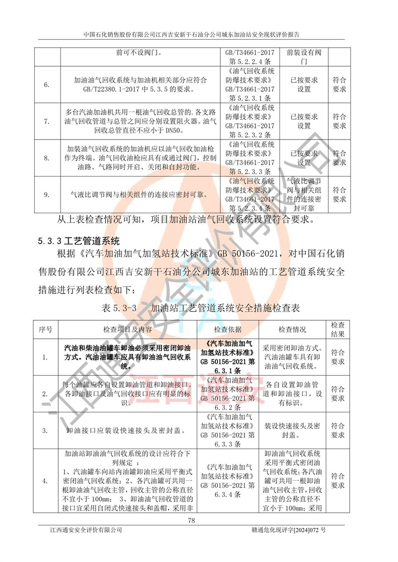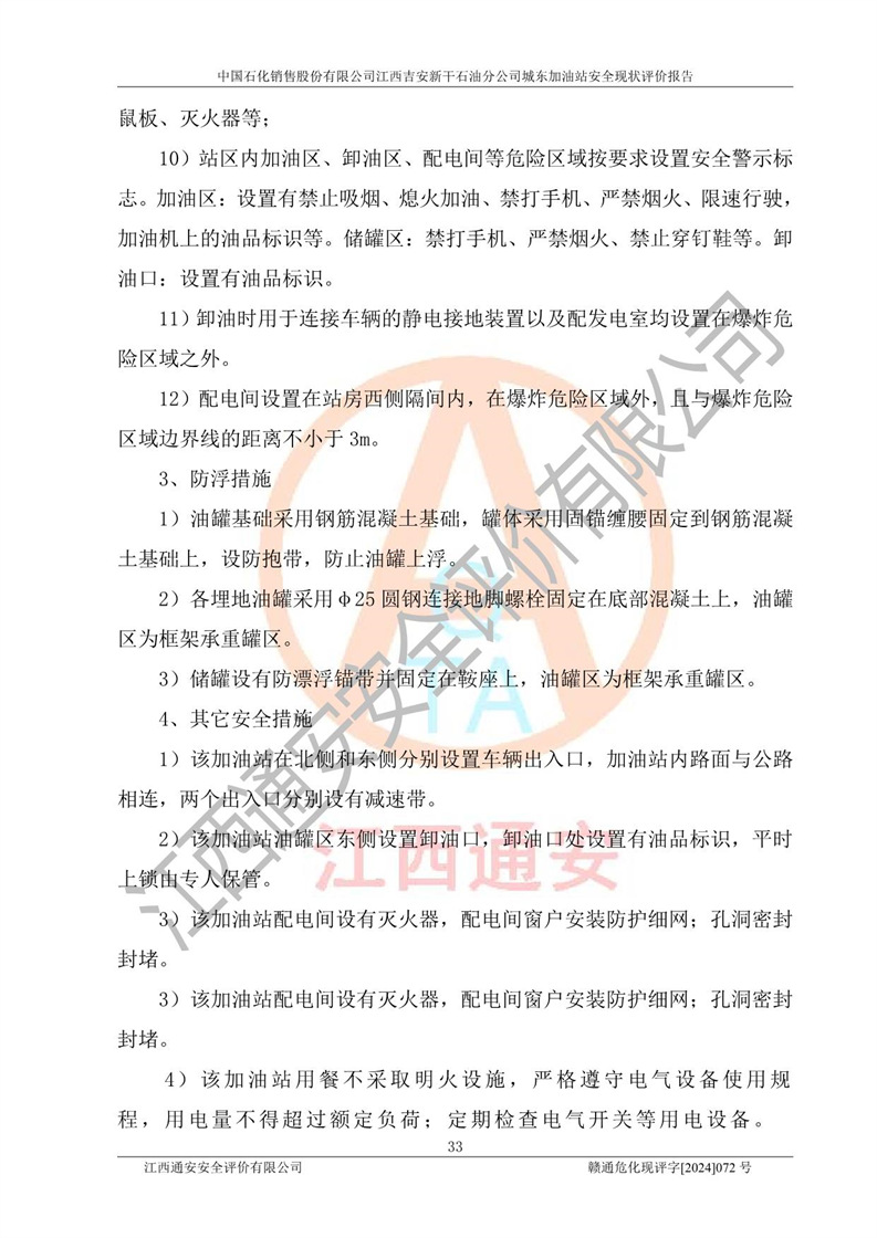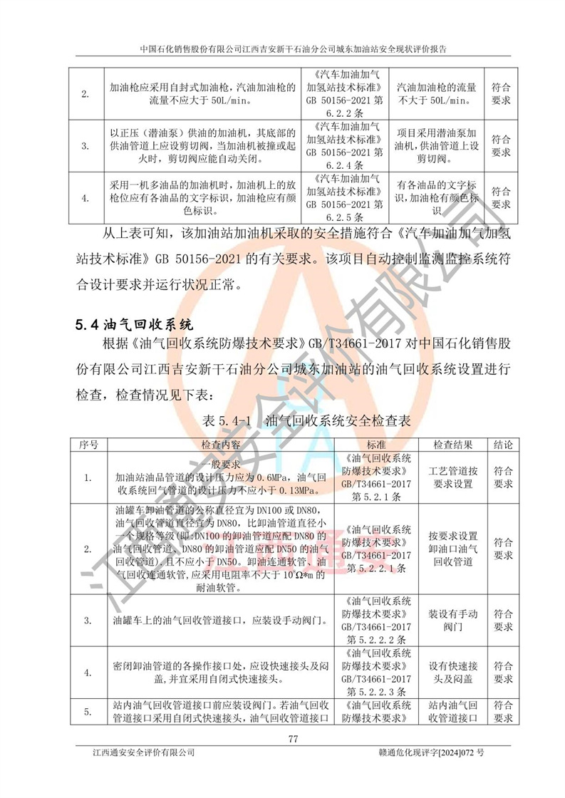 评价报告名称 | 中国石化销售股份有限公司江西吉安新干石油分公司城东加油站安全现状评价报告 | |||