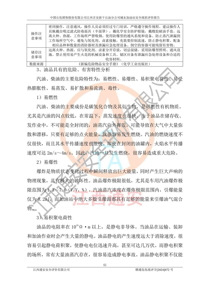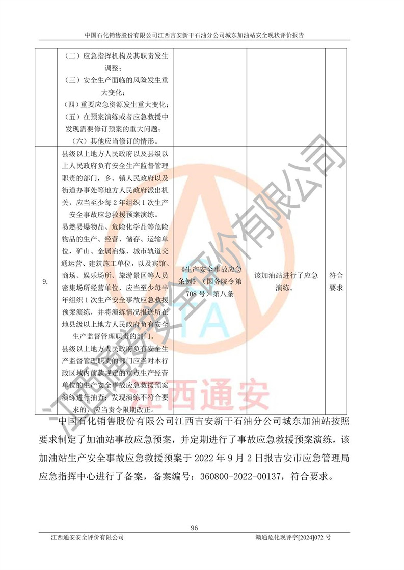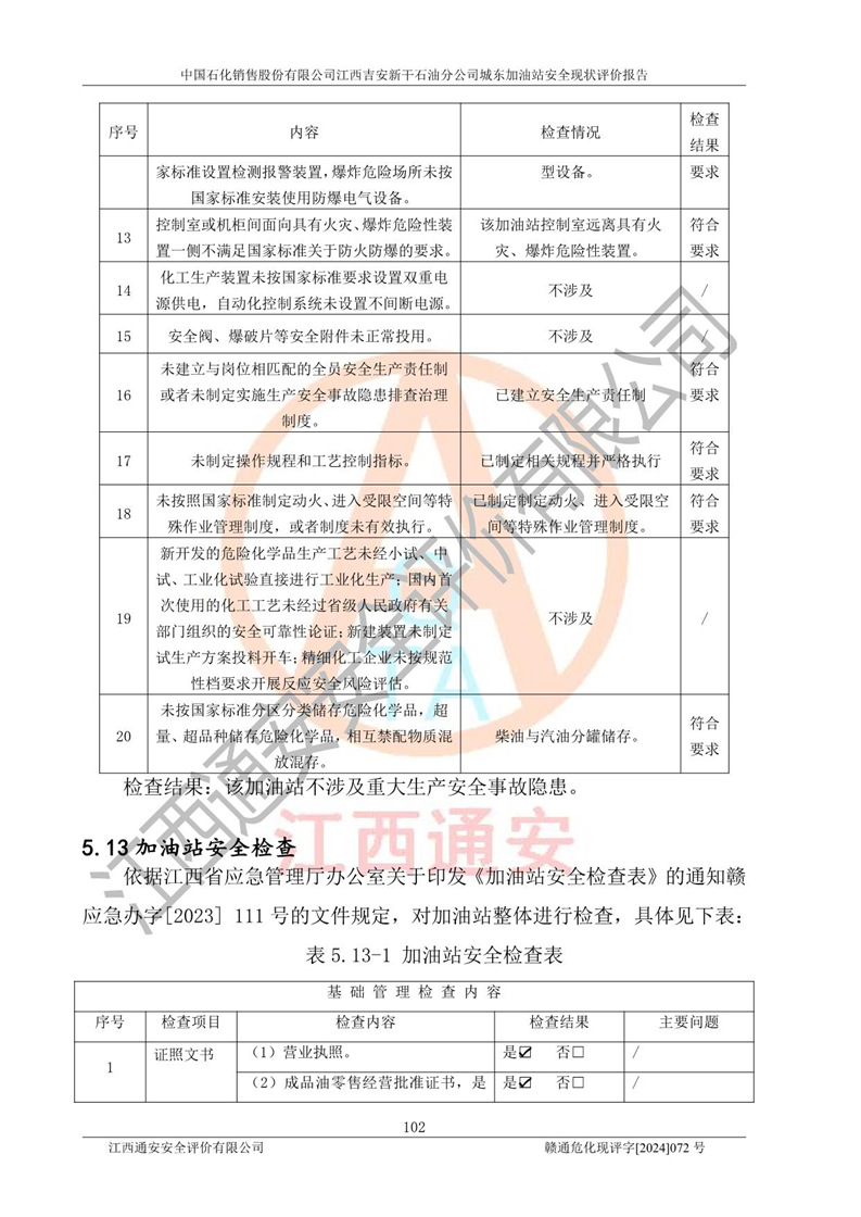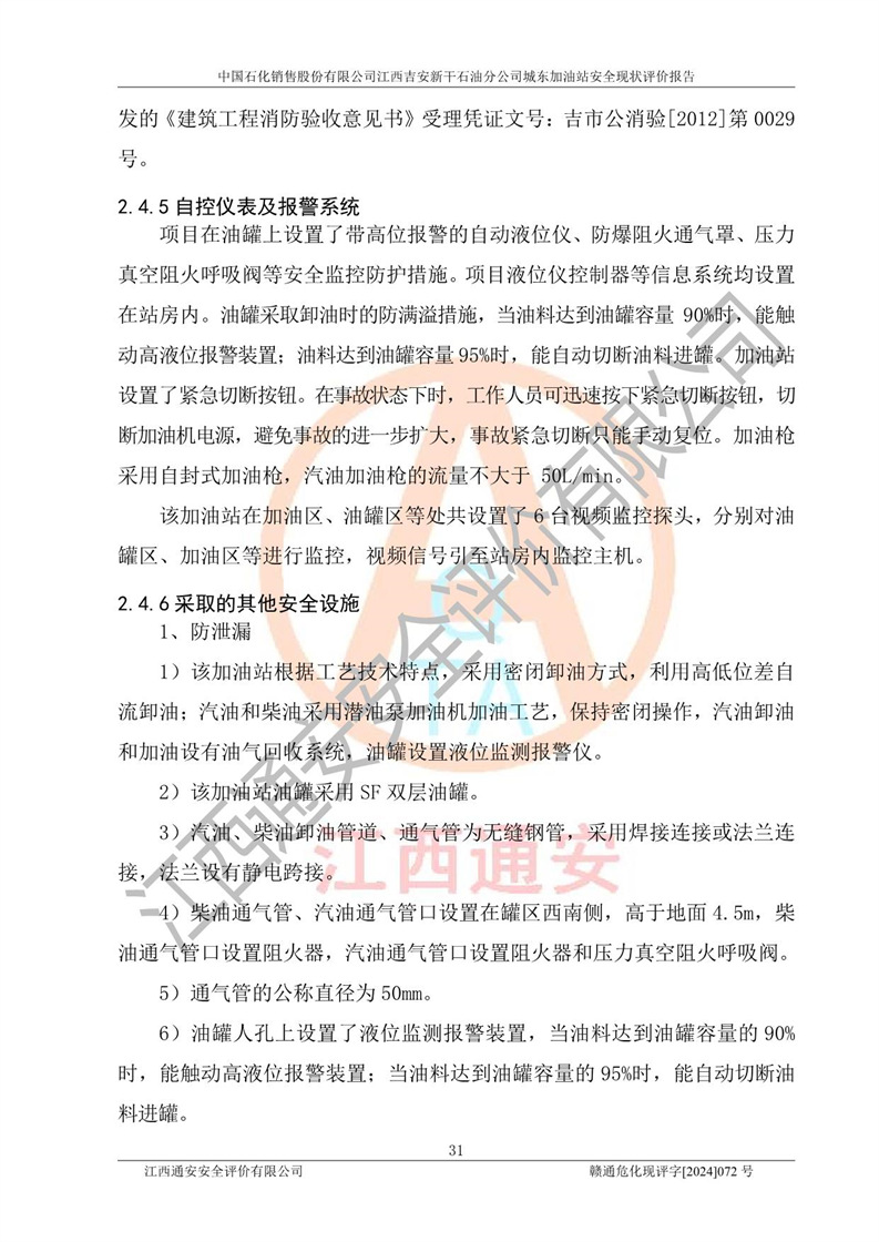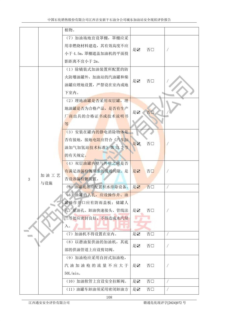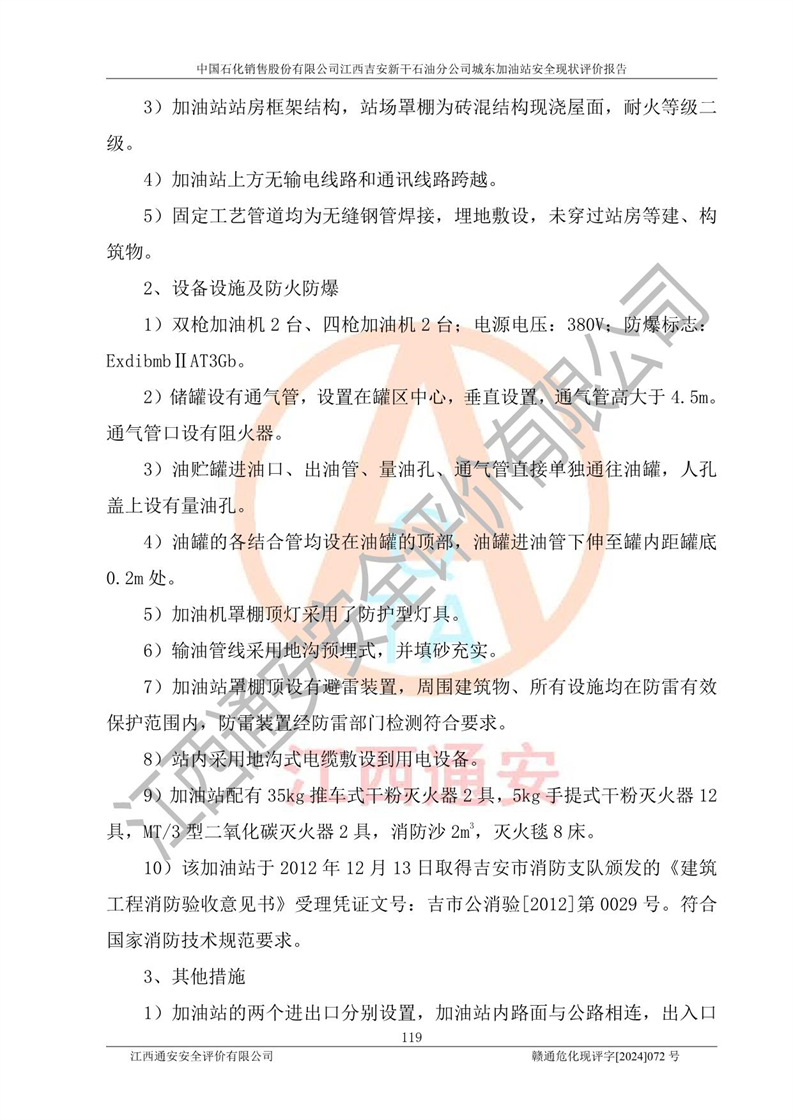 评价报告名称 | 中国石化销售股份有限公司江西吉安新干石油分公司城东加油站安全现状评价报告 | |||