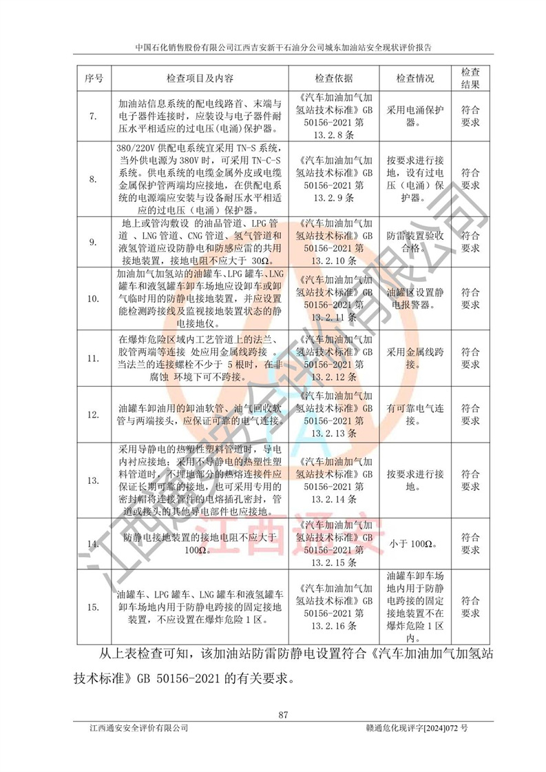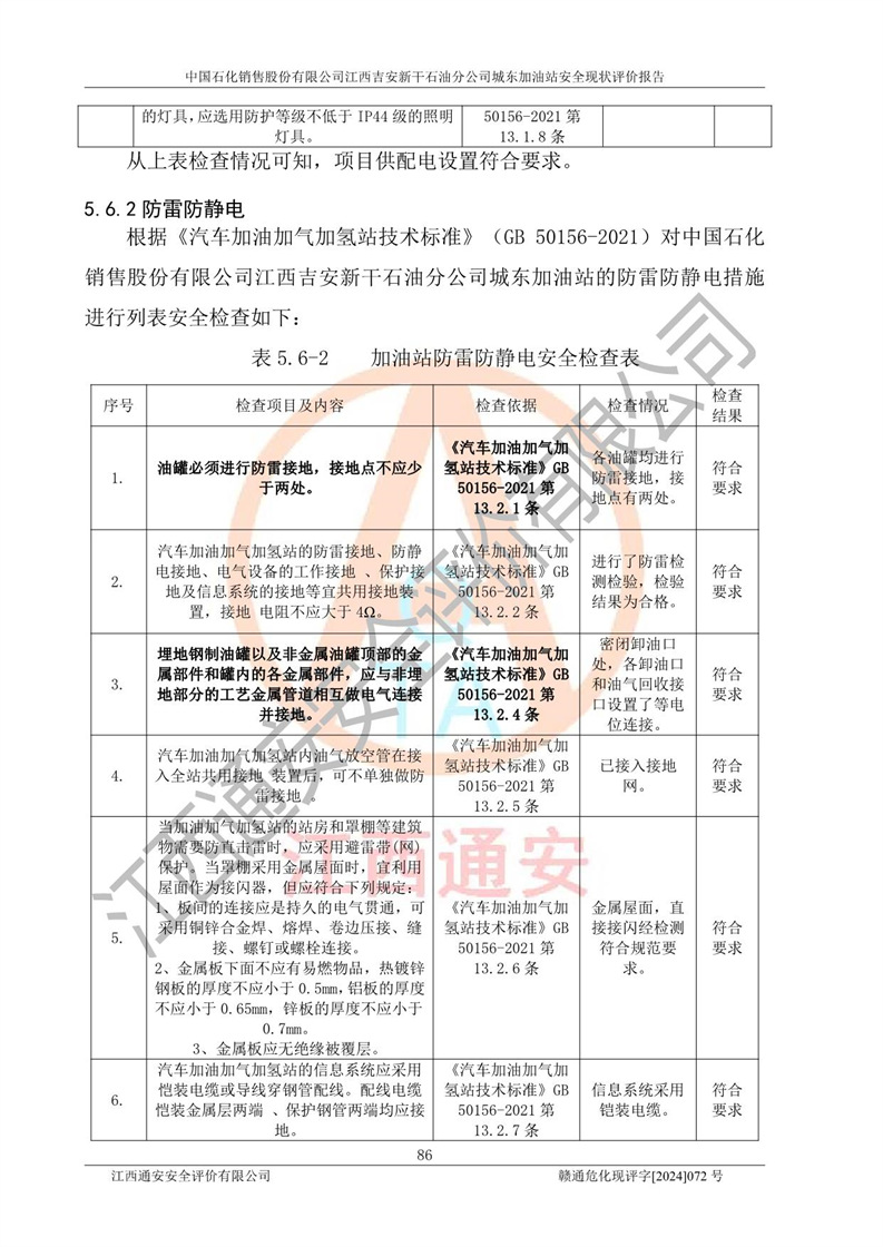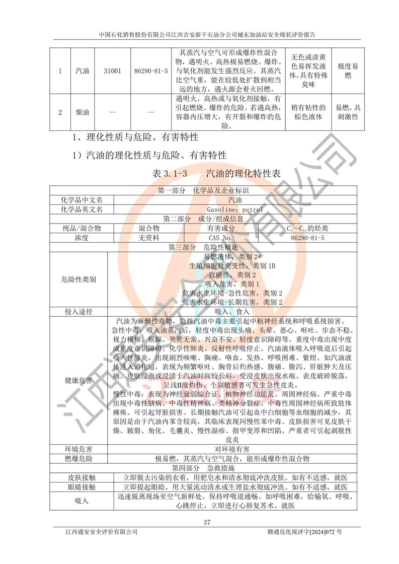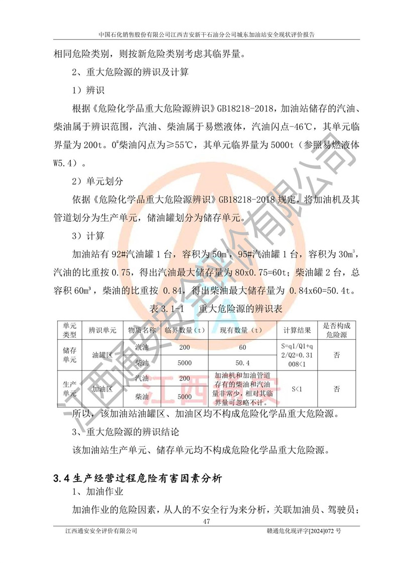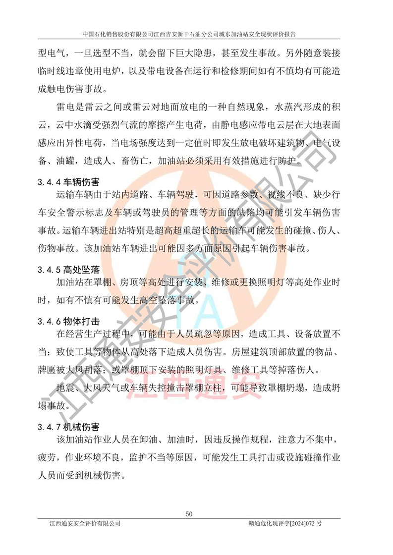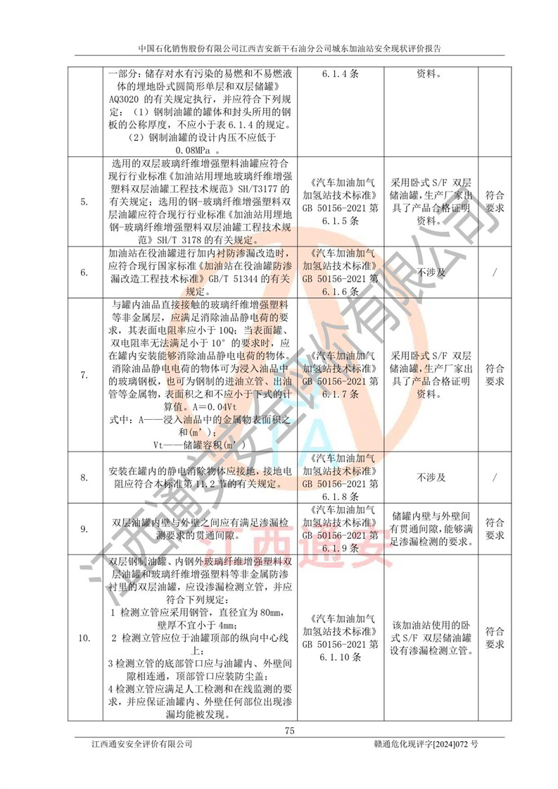评价报告名称 | 中国石化销售股份有限公司江西吉安新干石油分公司城东加油站安全现状评价报告 | |||