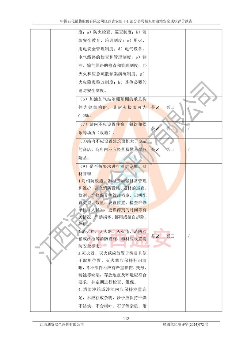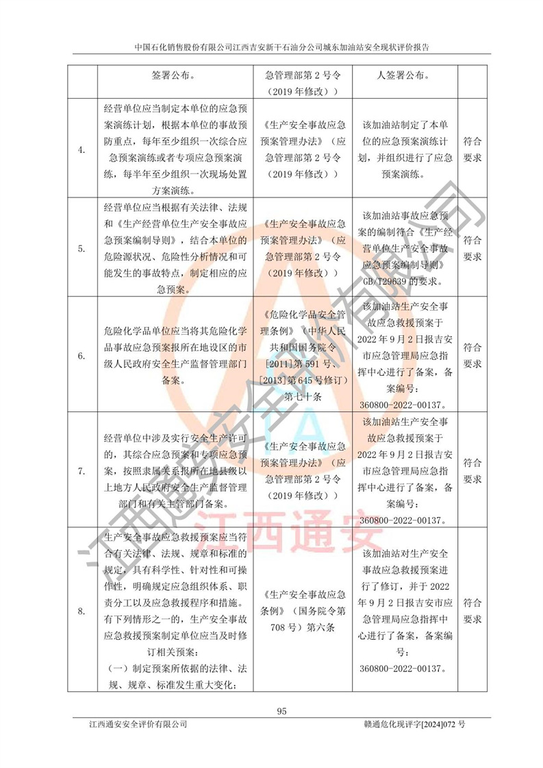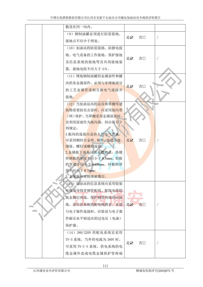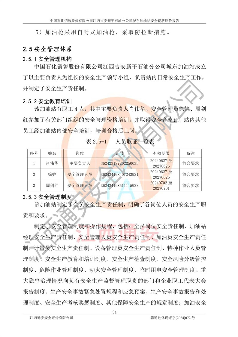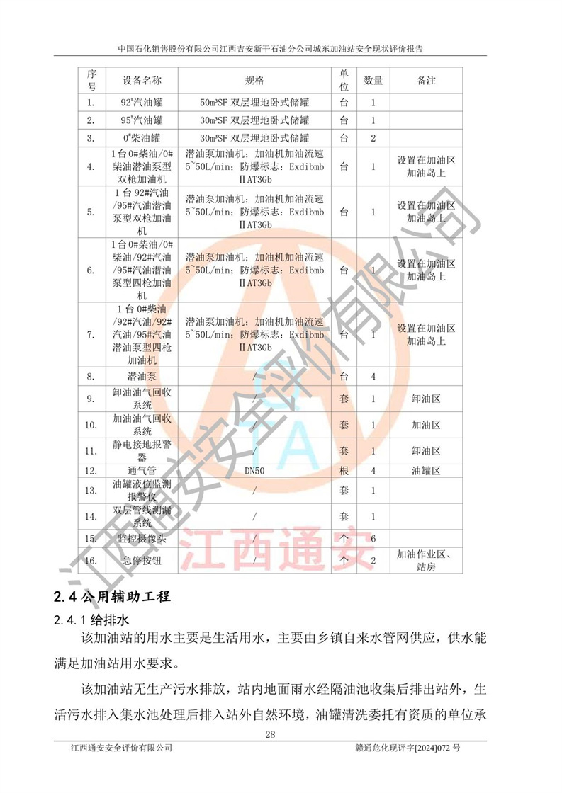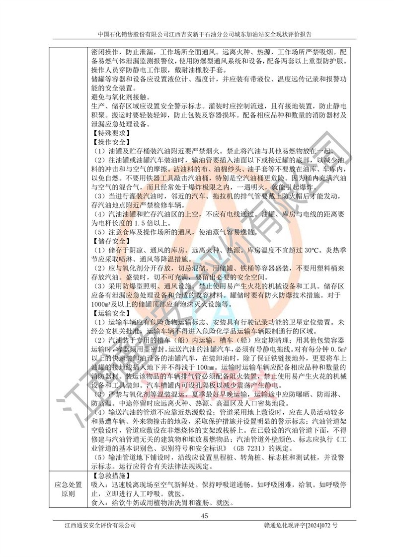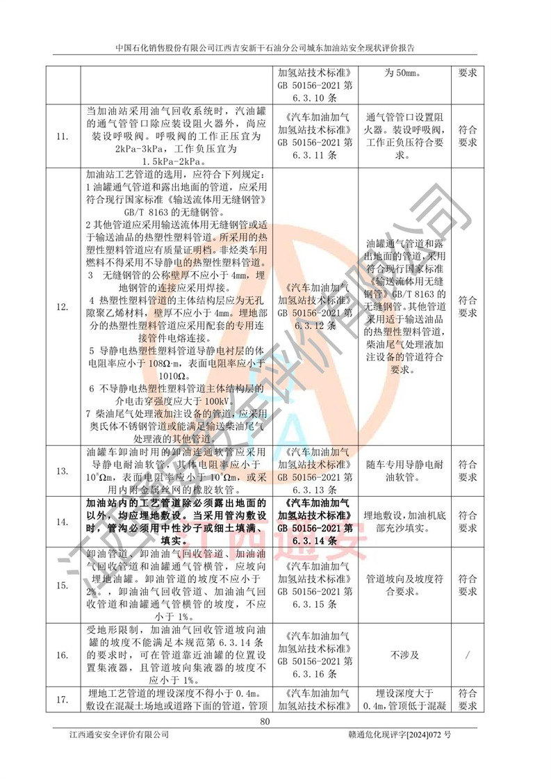 评价报告名称 | 中国石化销售股份有限公司江西吉安新干石油分公司城东加油站安全现状评价报告 | |||