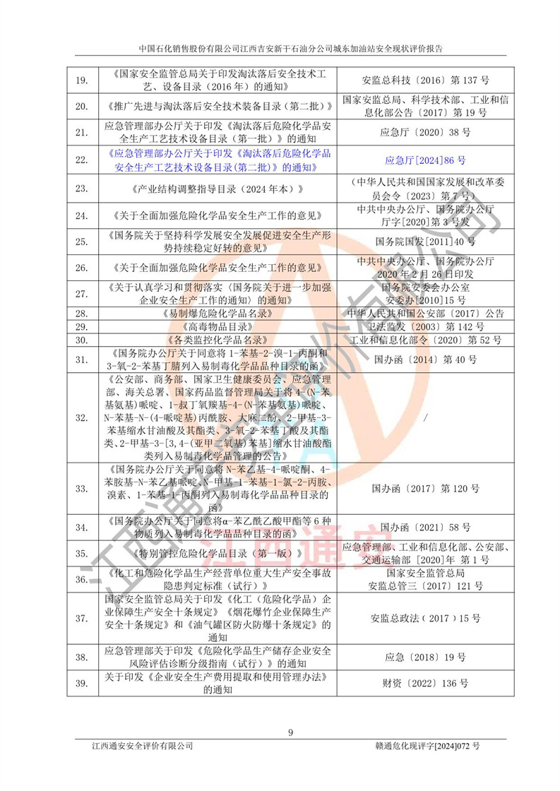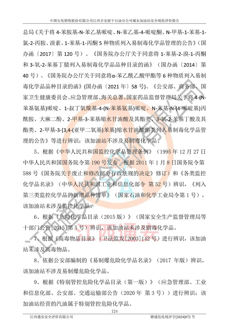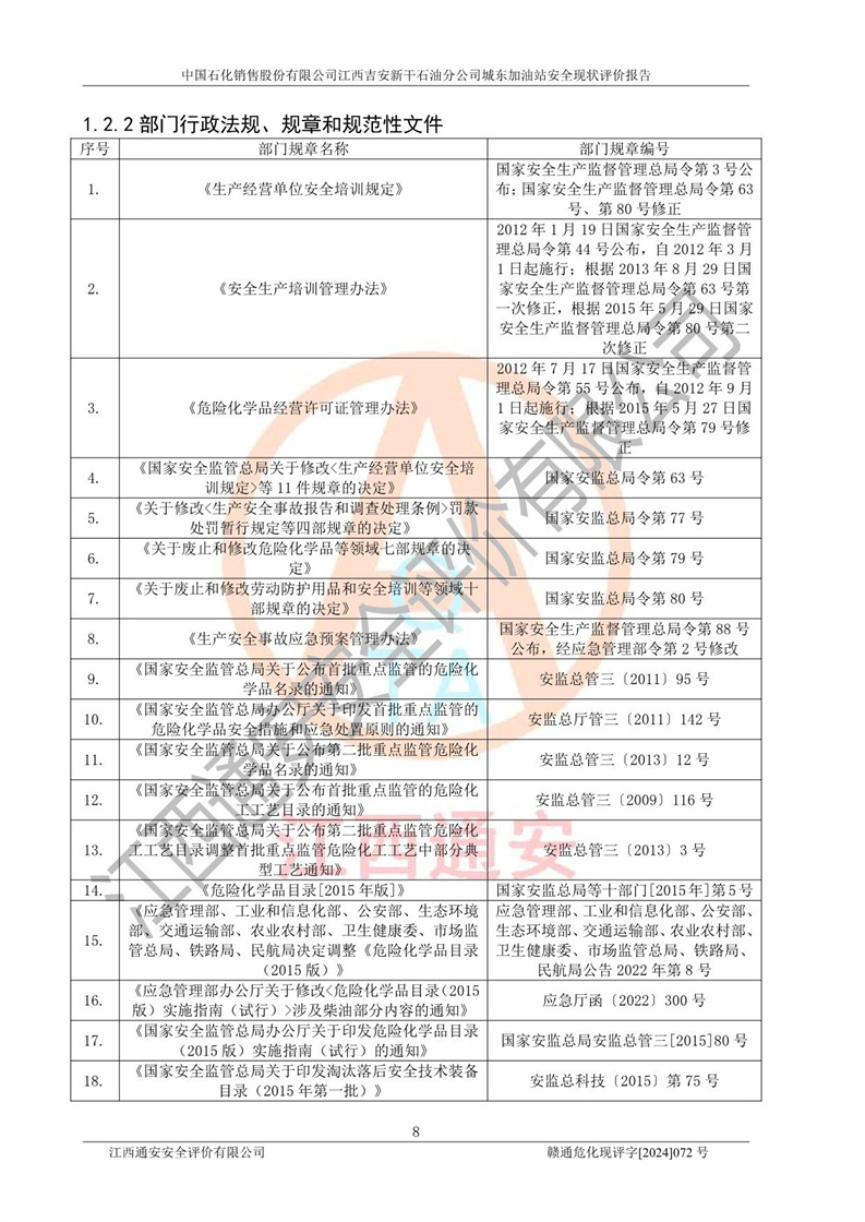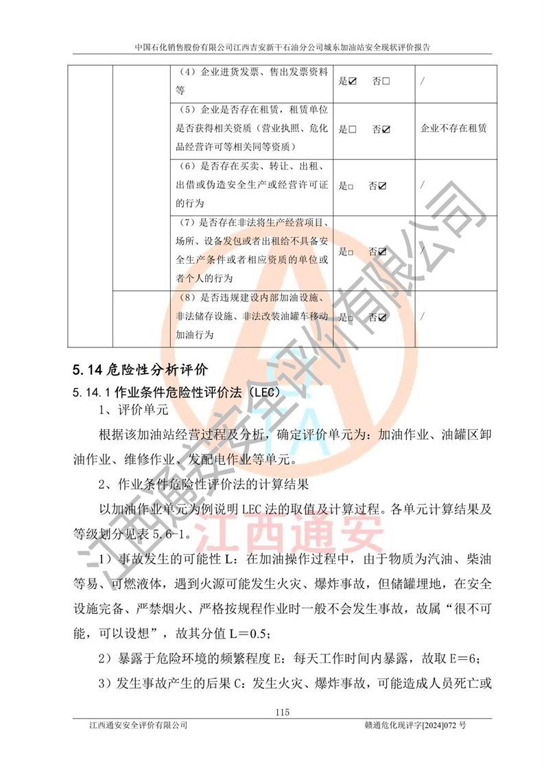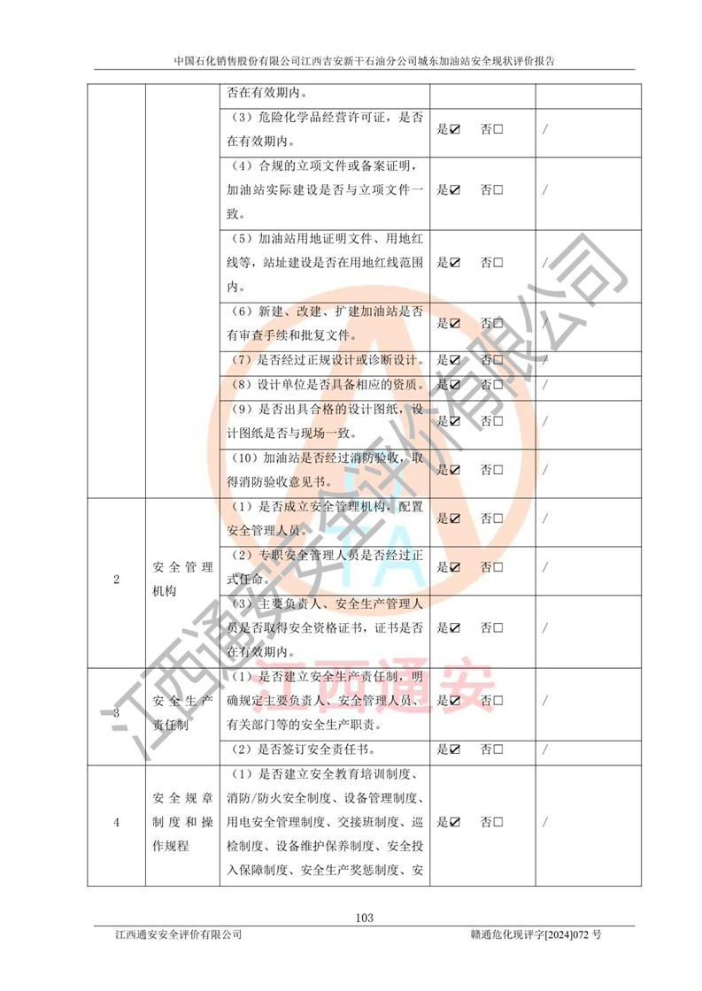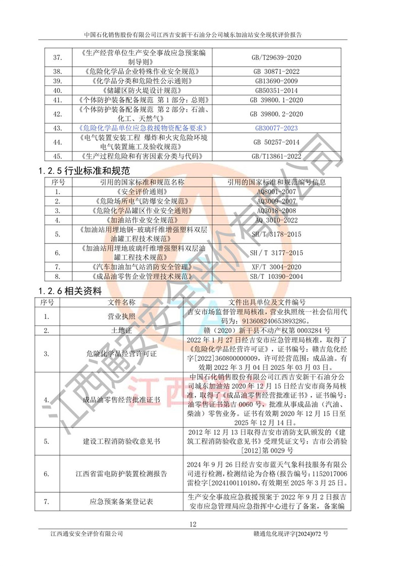 评价报告名称 | 中国石化销售股份有限公司江西吉安新干石油分公司城东加油站安全现状评价报告 | |||
