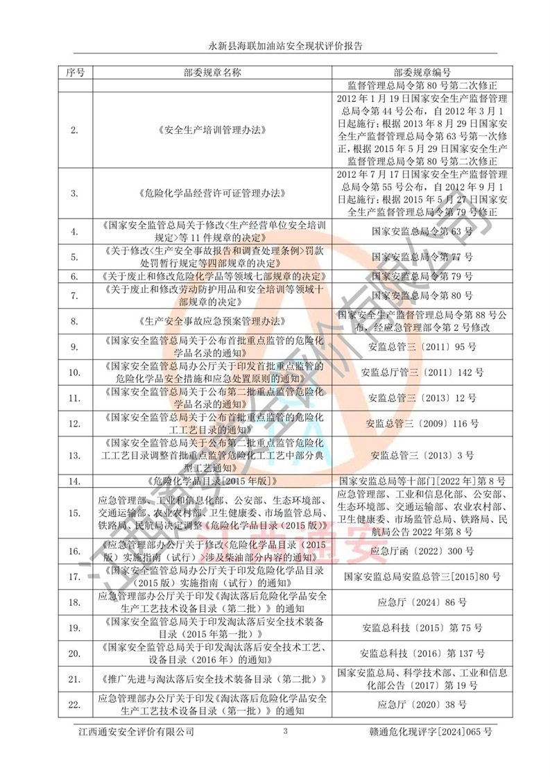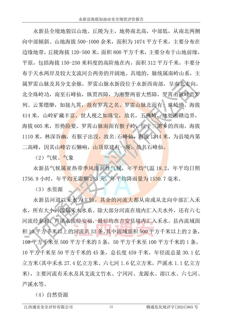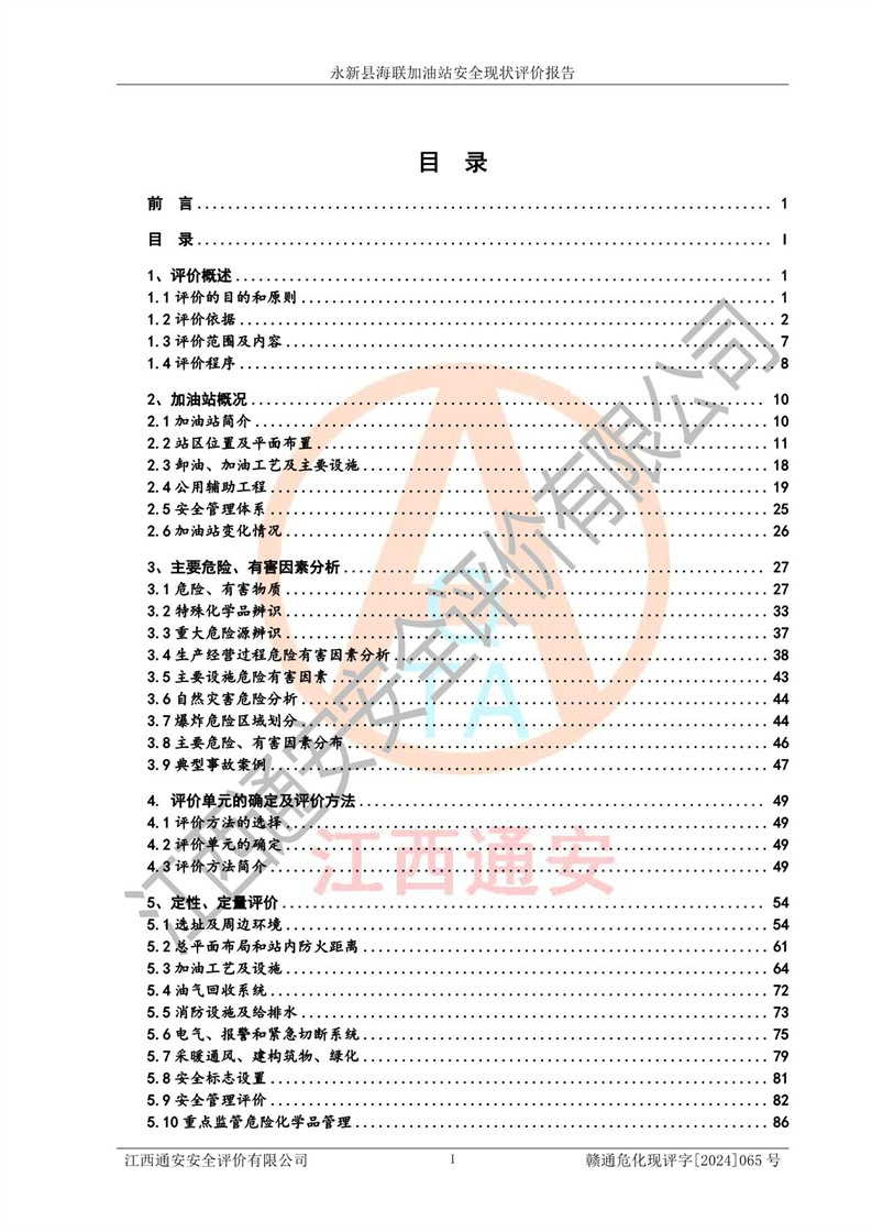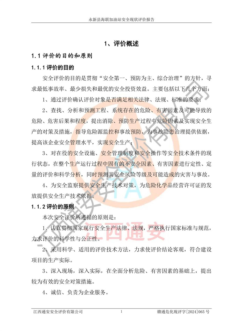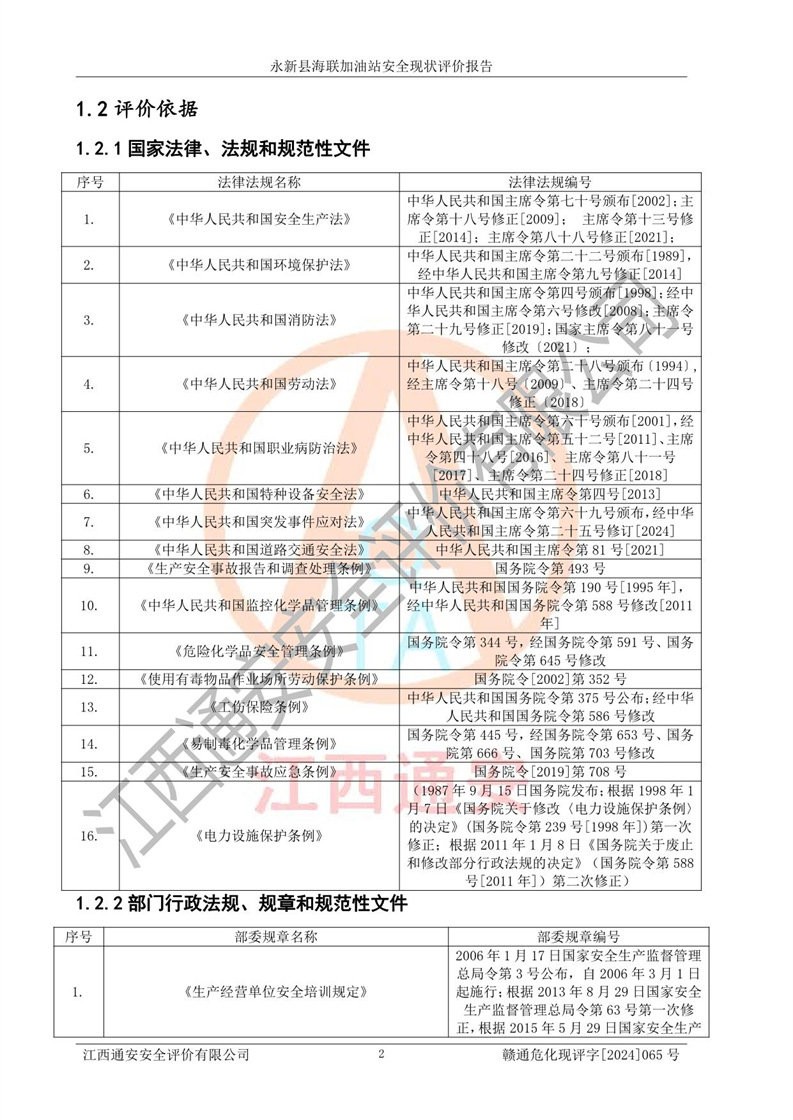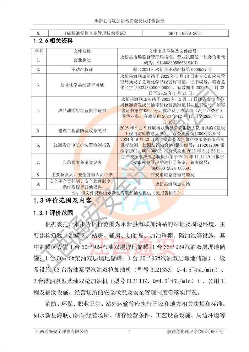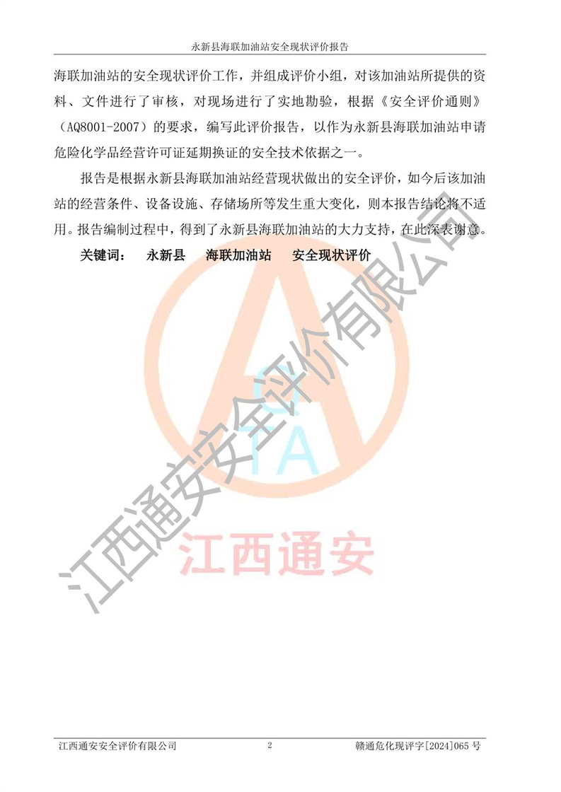 评价报告名称 | 永新县海联加油站安全现状评价报告 | |||