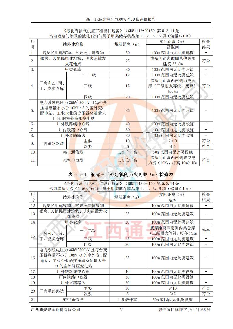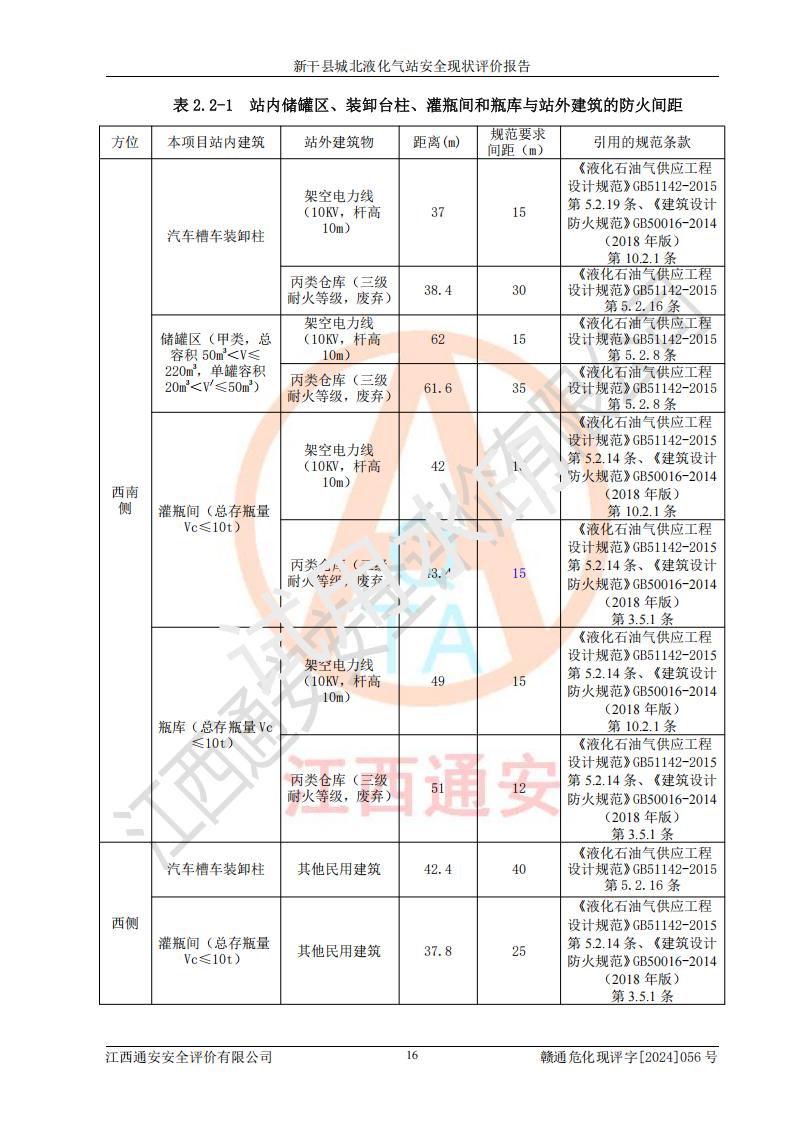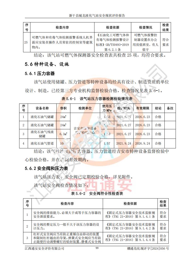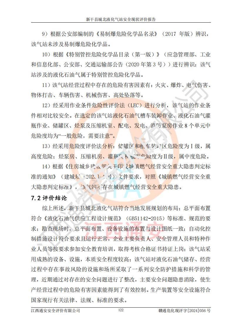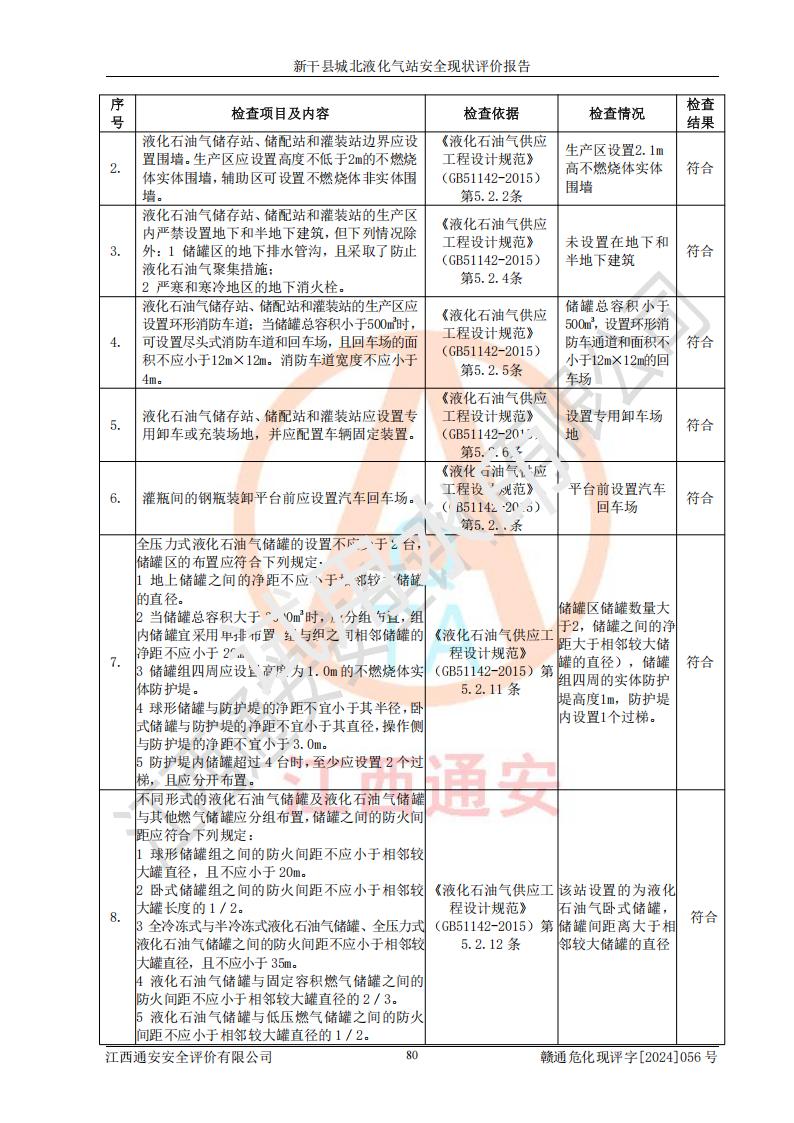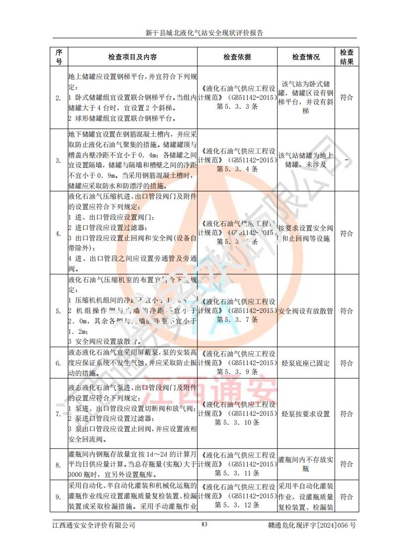 项目名称 | 新干县城北液化气站安全现状评价报告 | ||||