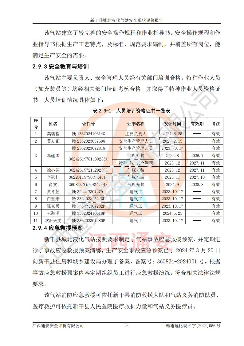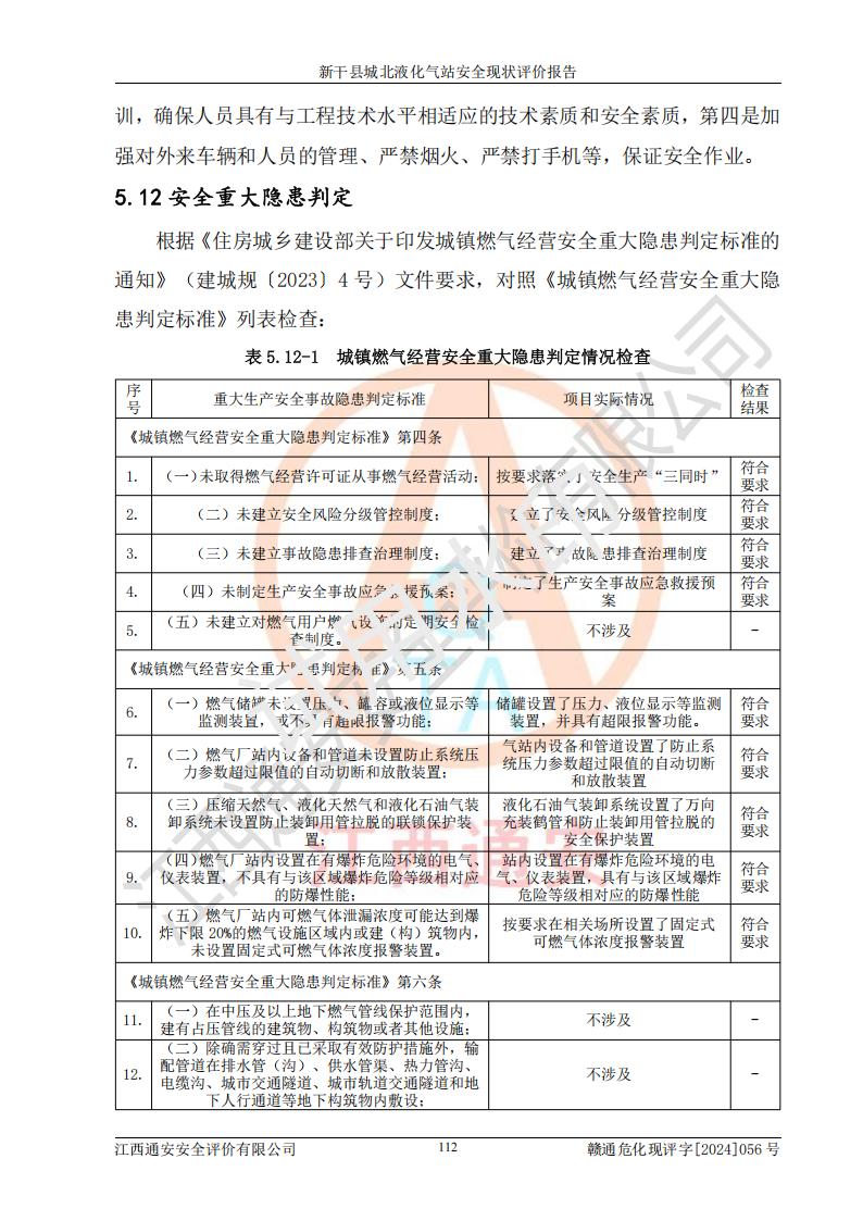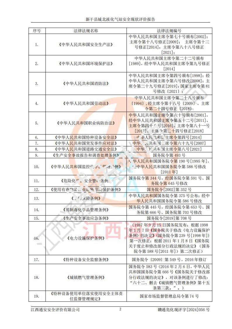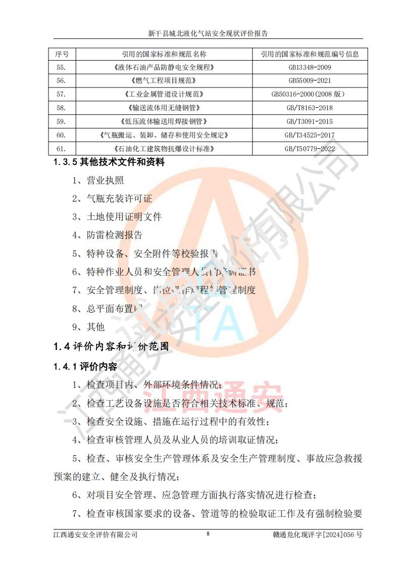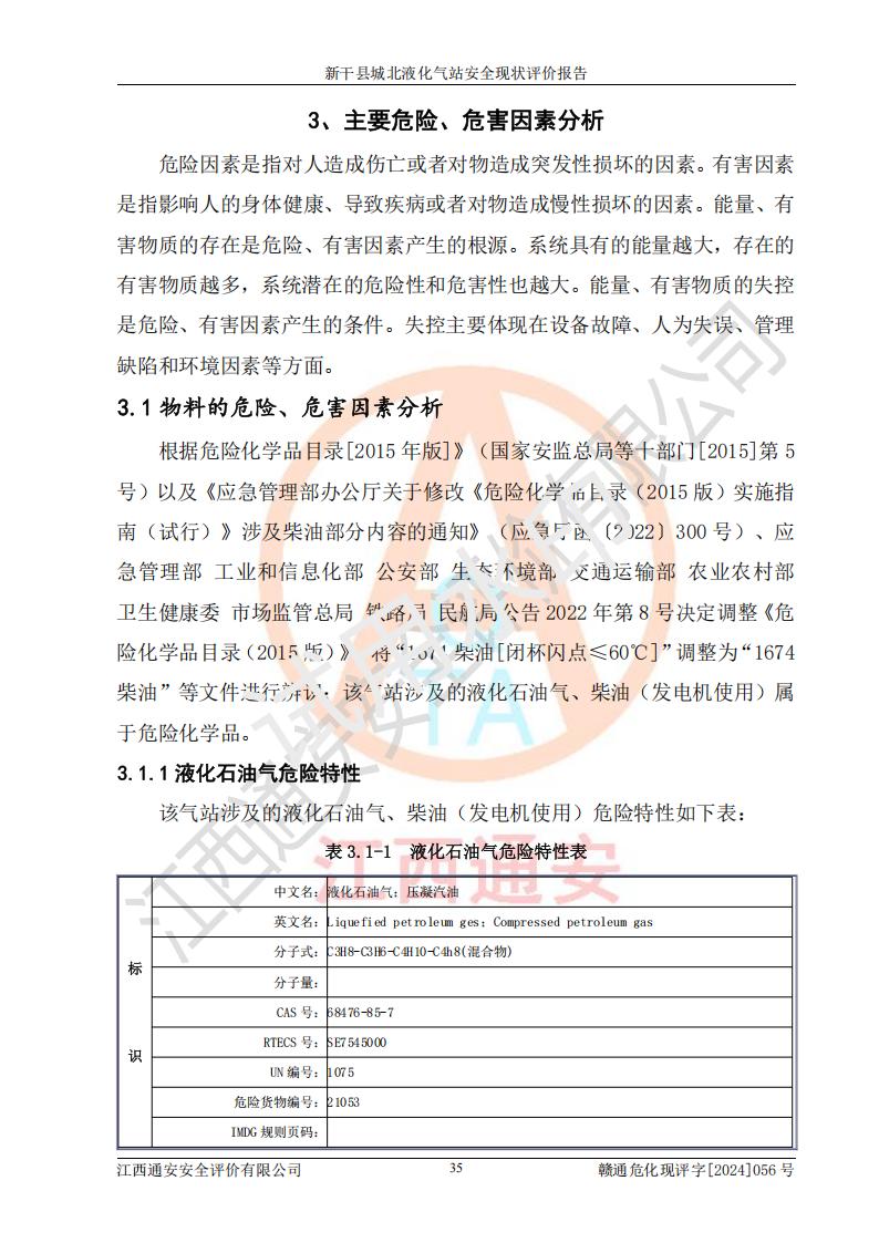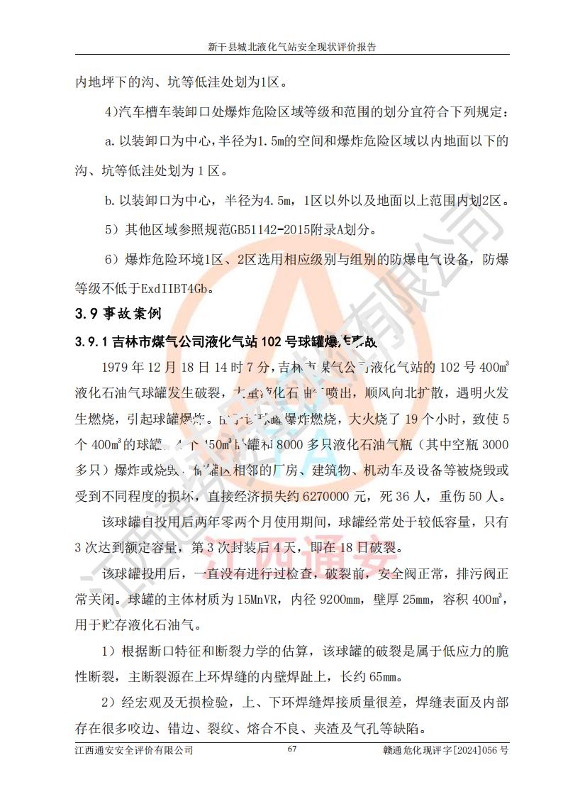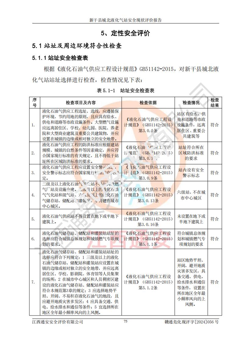 项目名称 | 新干县城北液化气站安全现状评价报告 | ||||