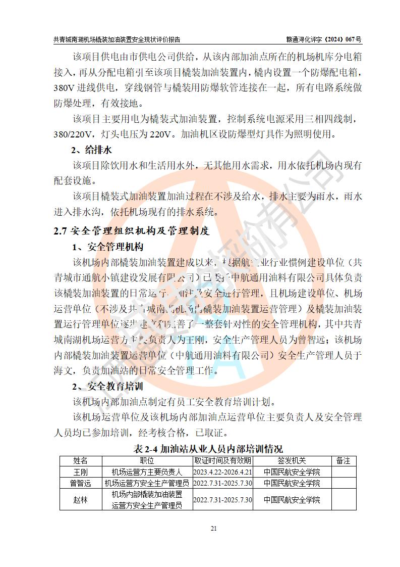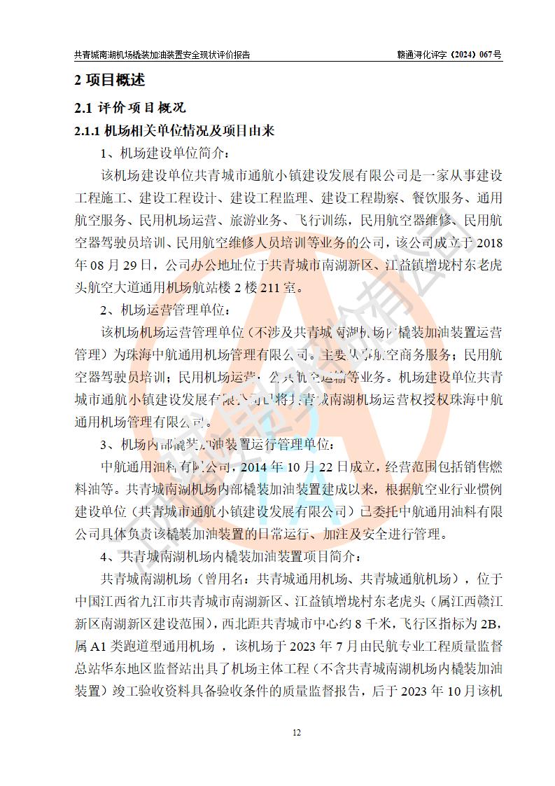 评价报告名称 | 共青城市通航小镇建设发展有限公司共青城南湖机场内橇装加油装置安全现状评价报告 | |||