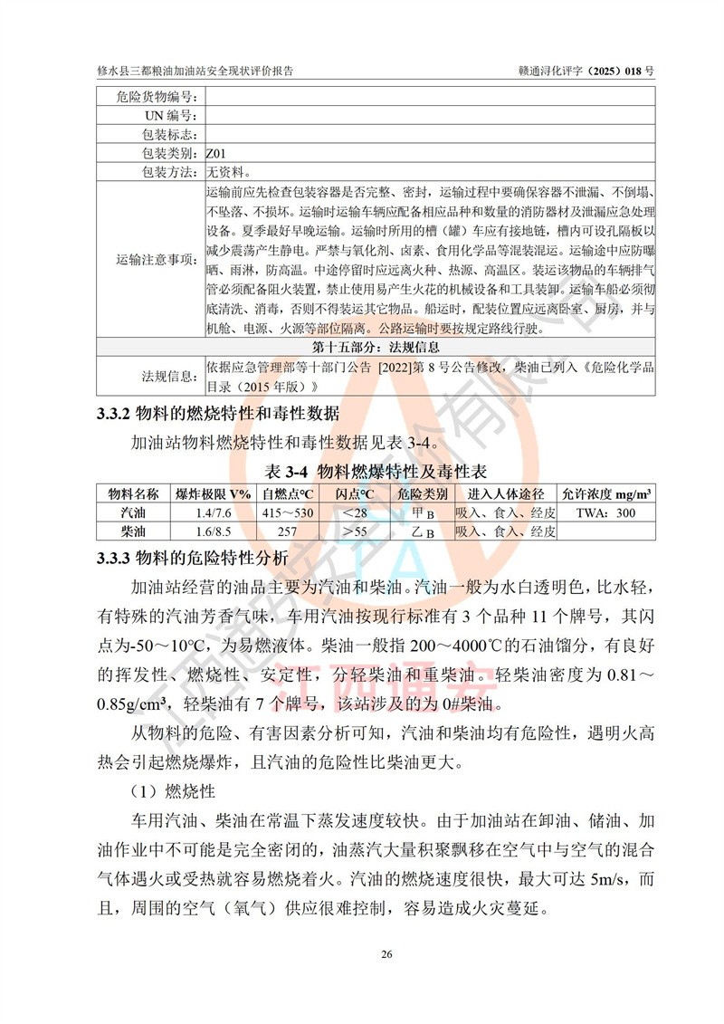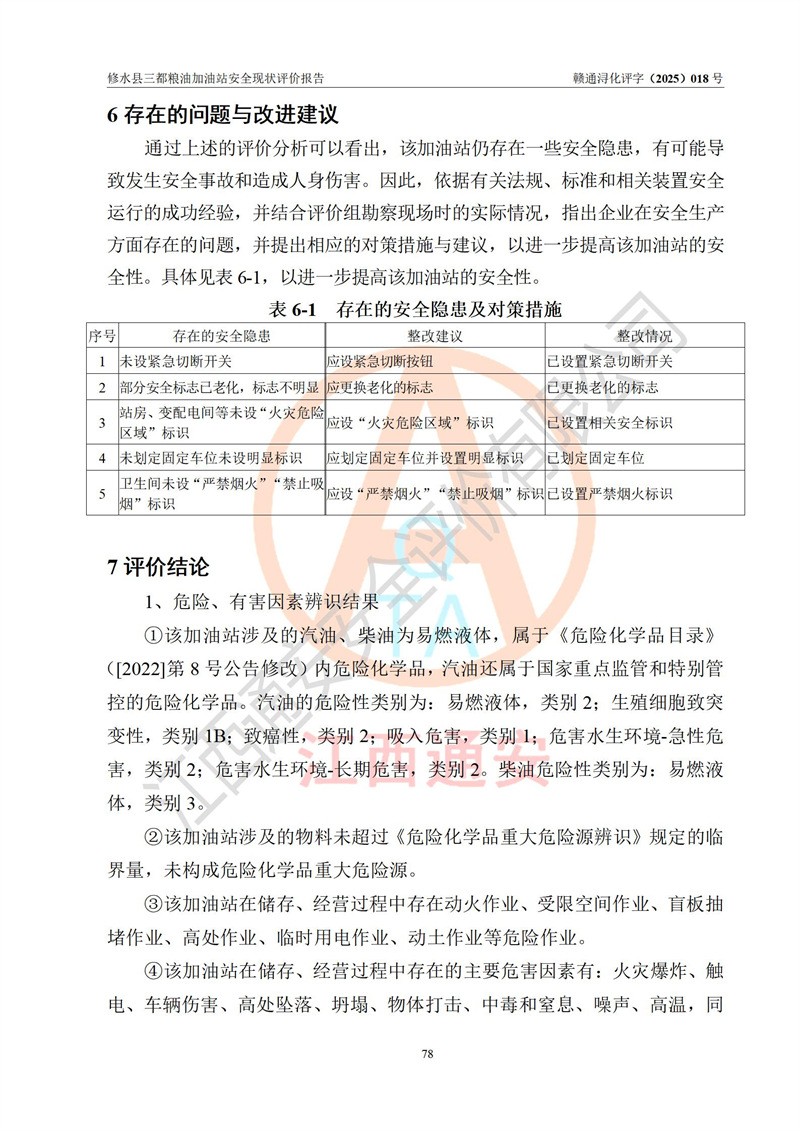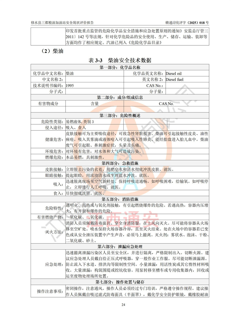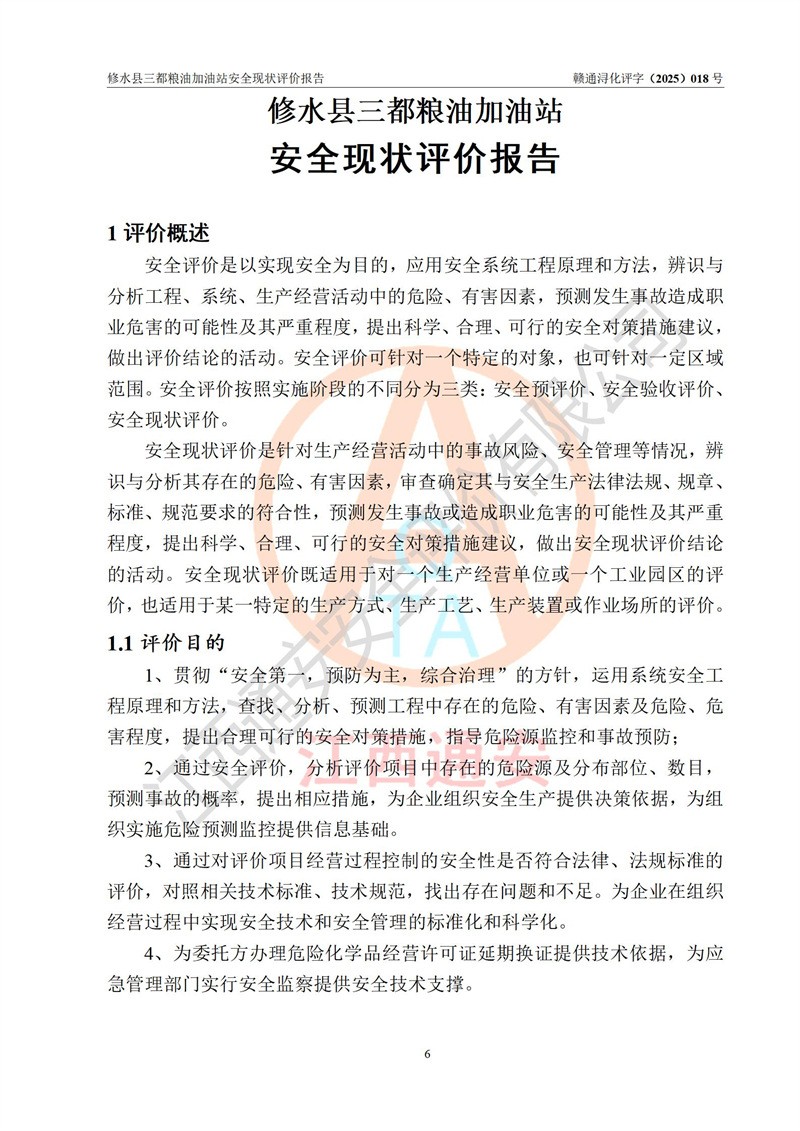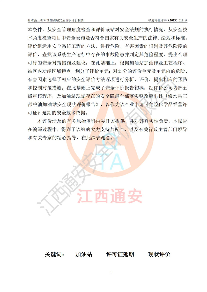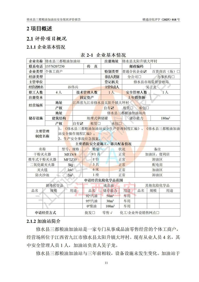 评价报告名称 | 修水县三都粮油加油站安全现状评价报告 | |||
