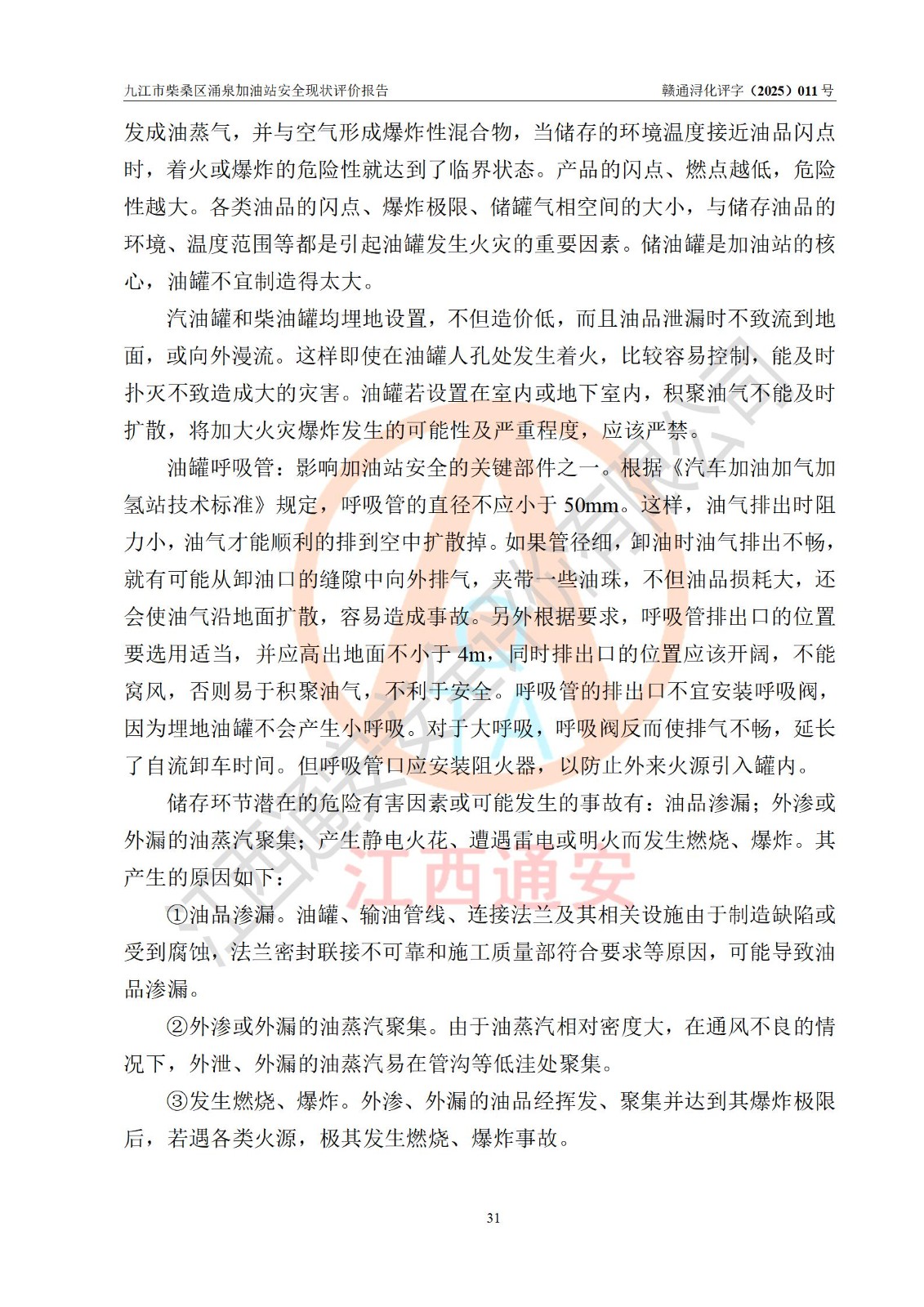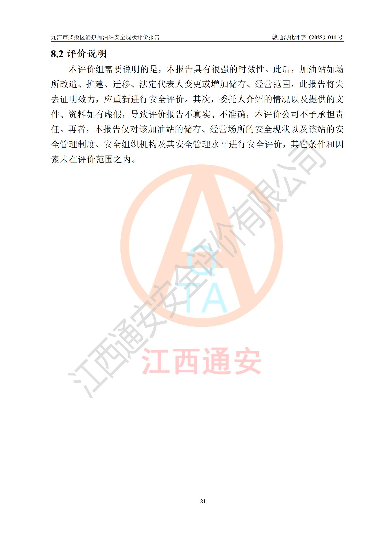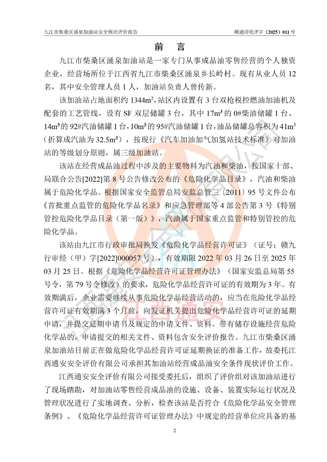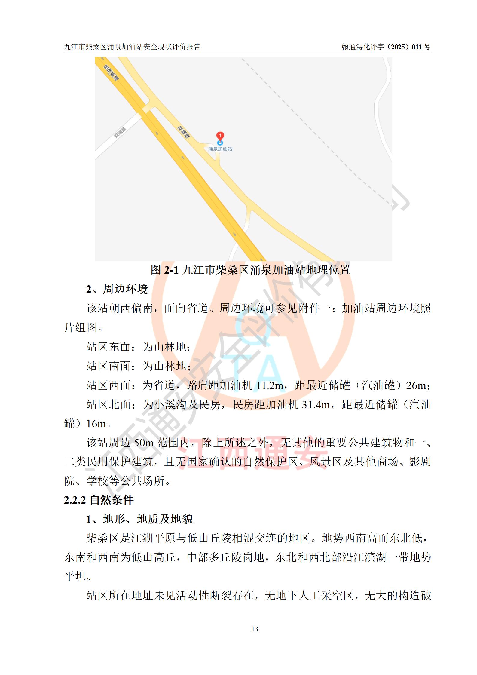 评价报告名称 | 九江市柴桑区涌泉加油站安全现状评价报告 | |||