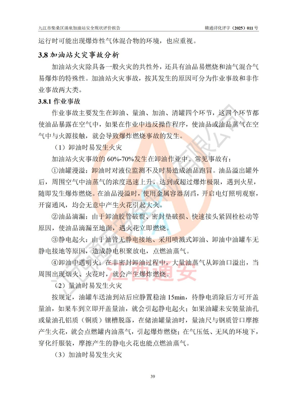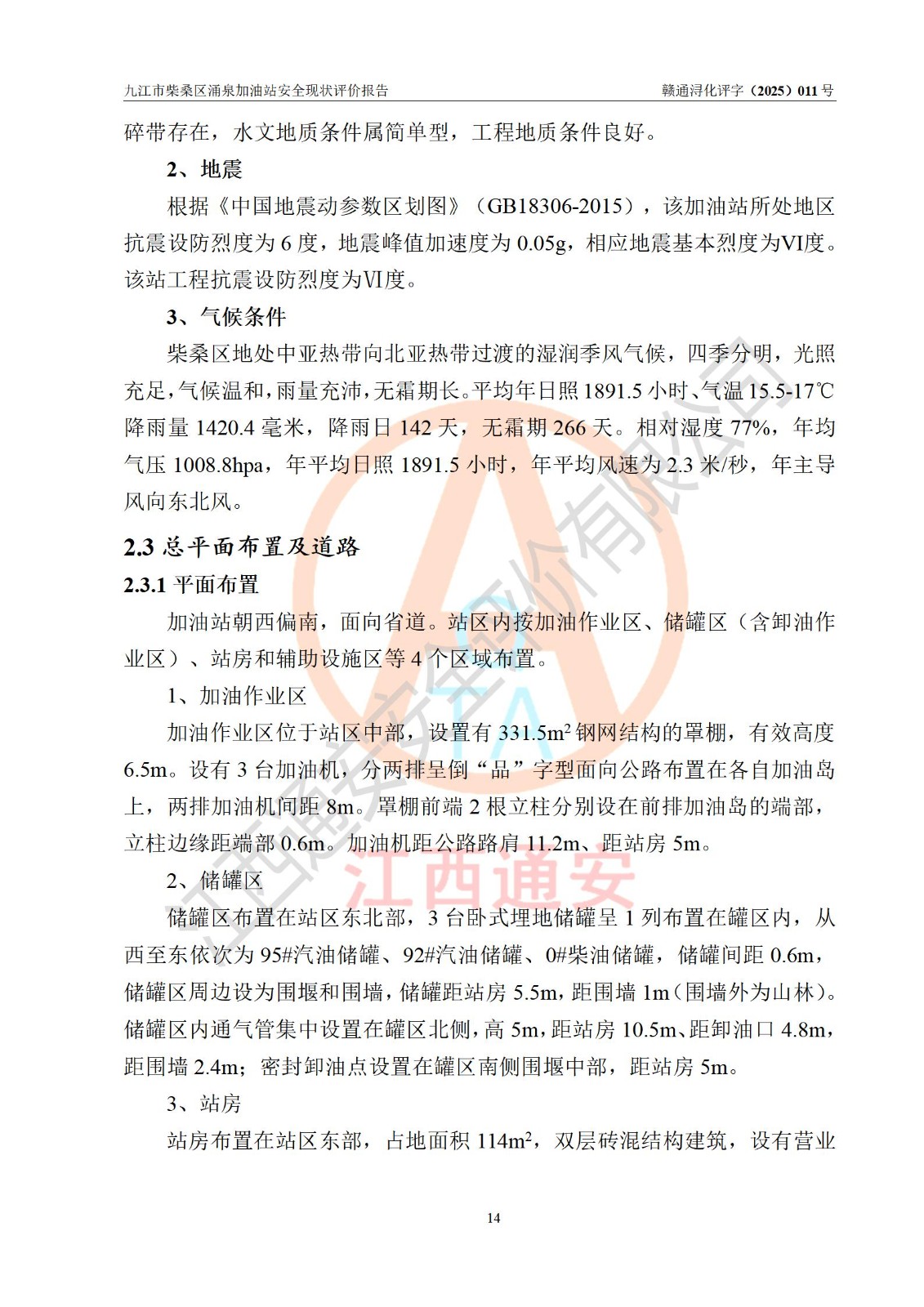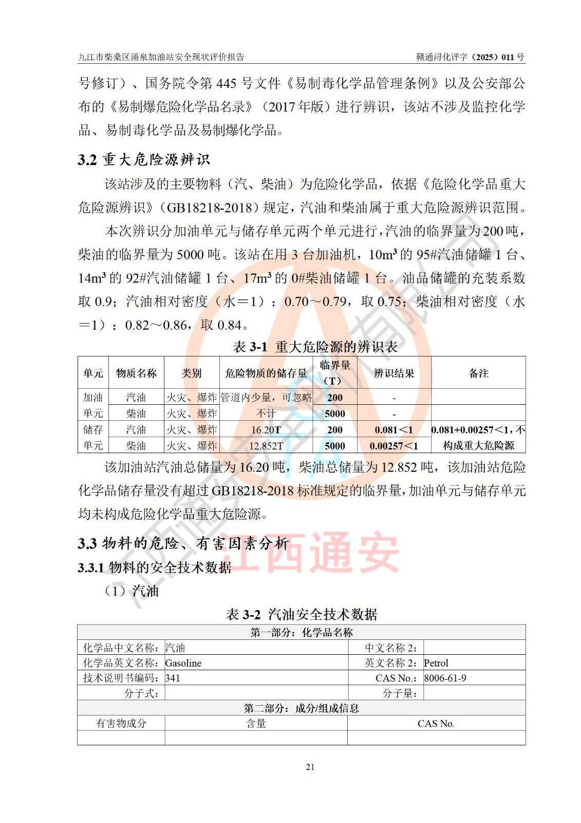 评价报告名称 | 九江市柴桑区涌泉加油站安全现状评价报告 | |||