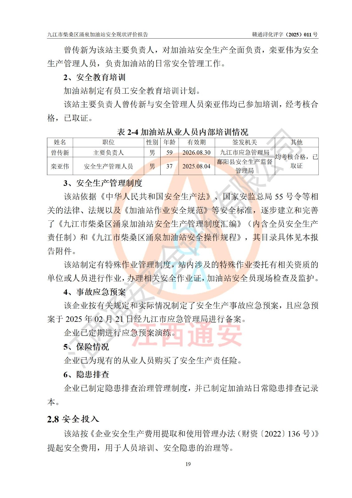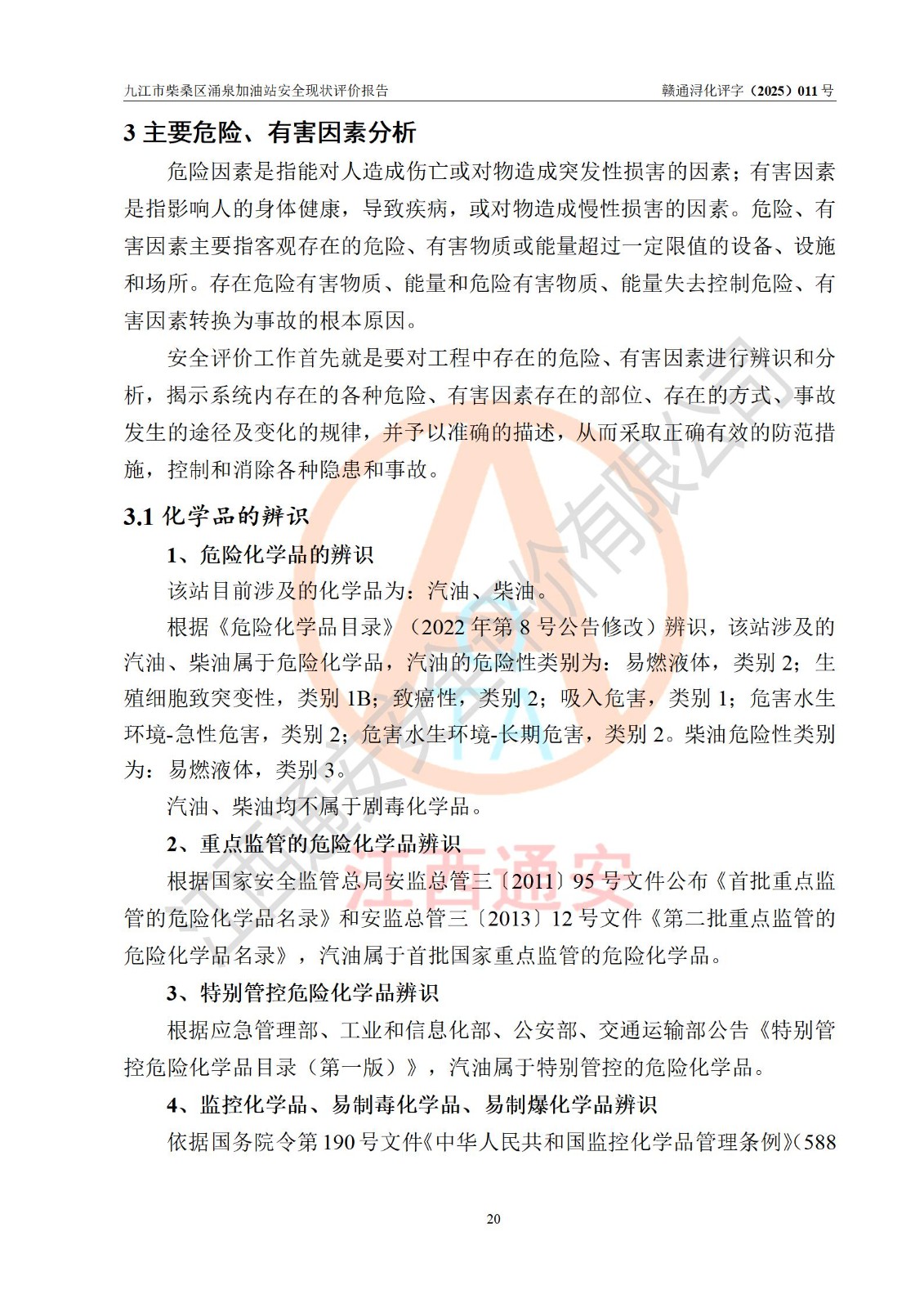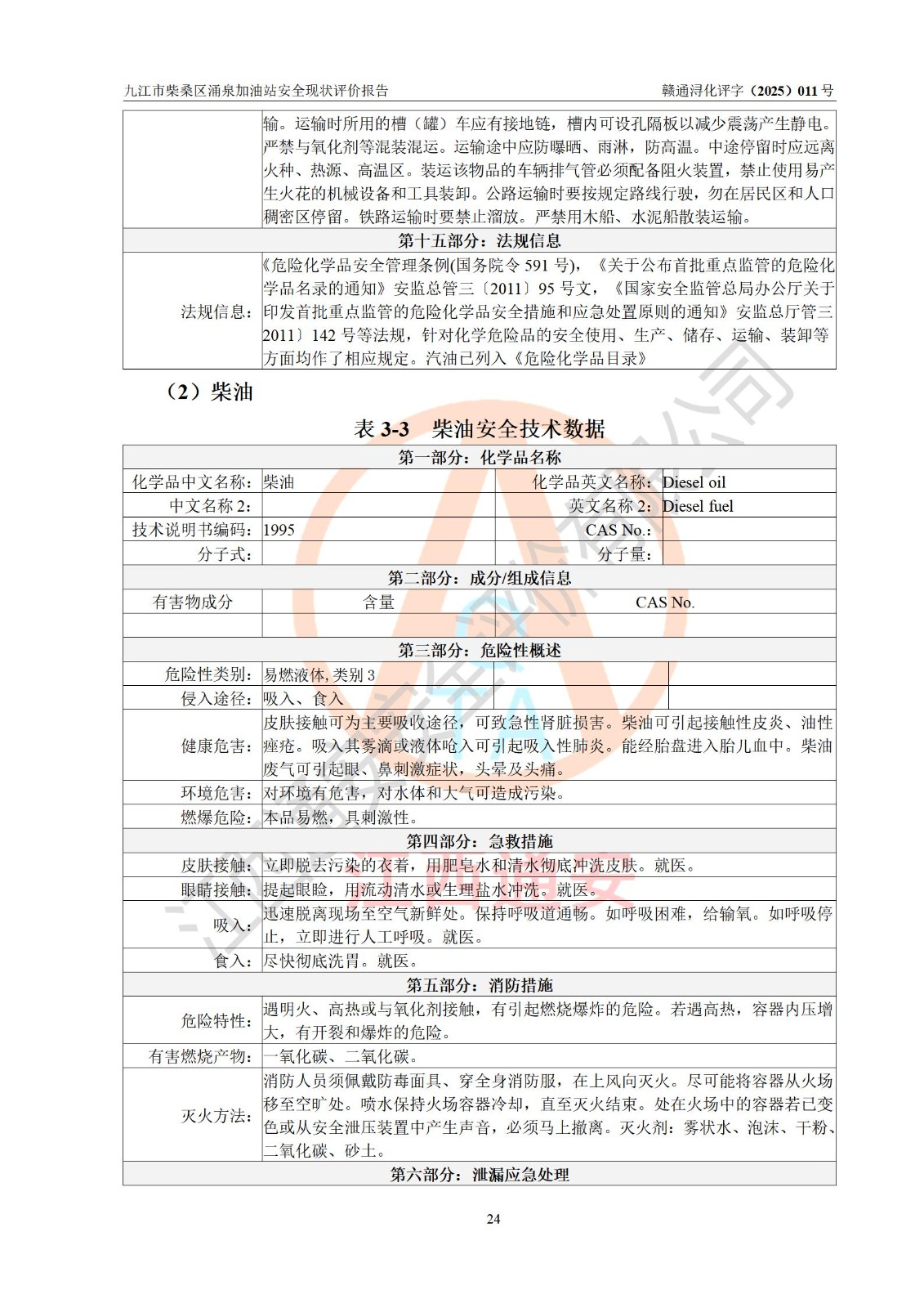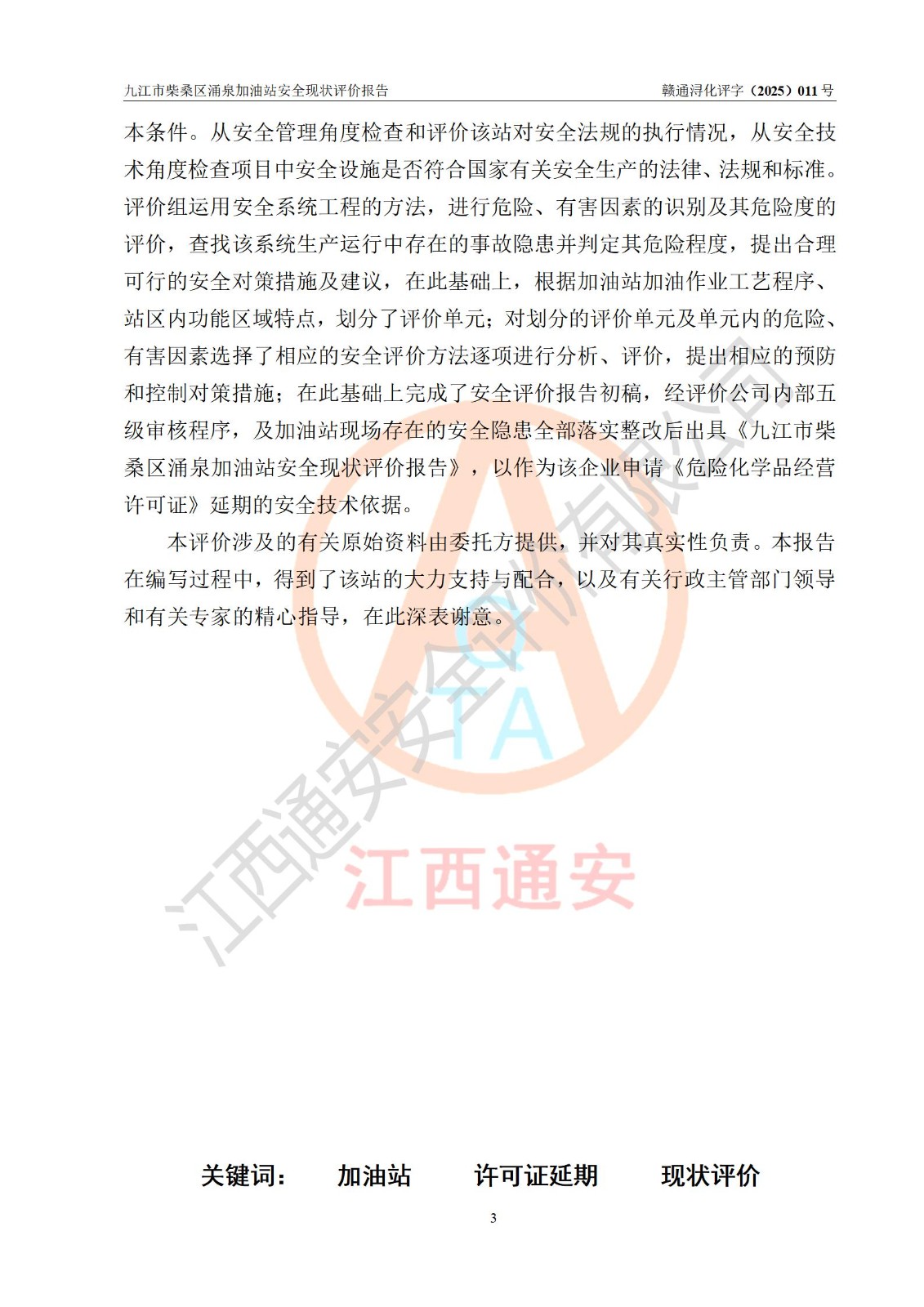 评价报告名称 | 九江市柴桑区涌泉加油站安全现状评价报告 | |||