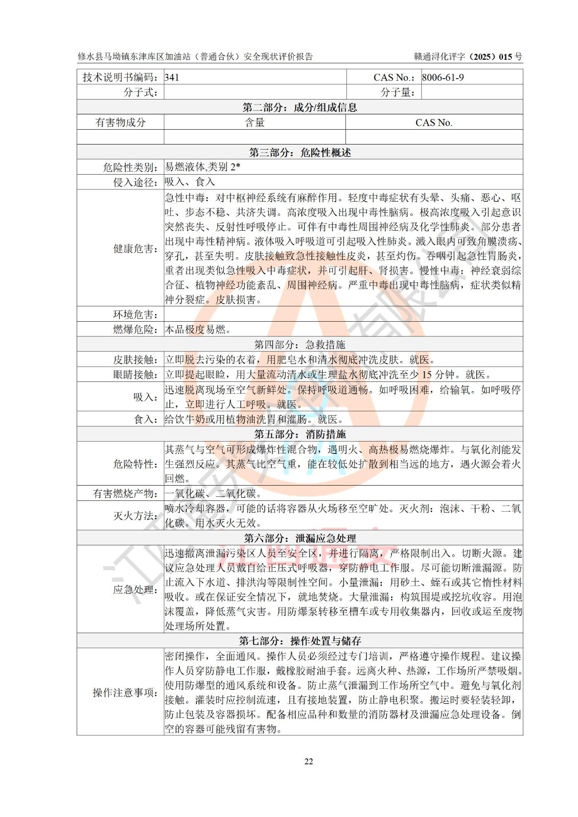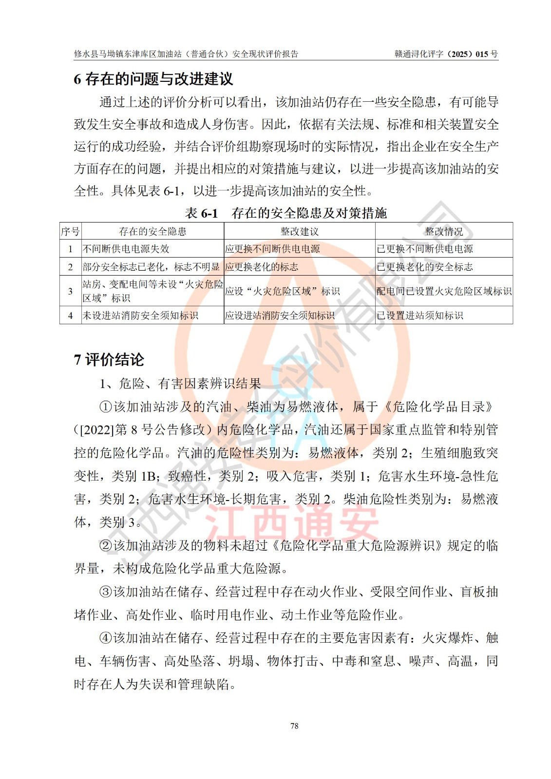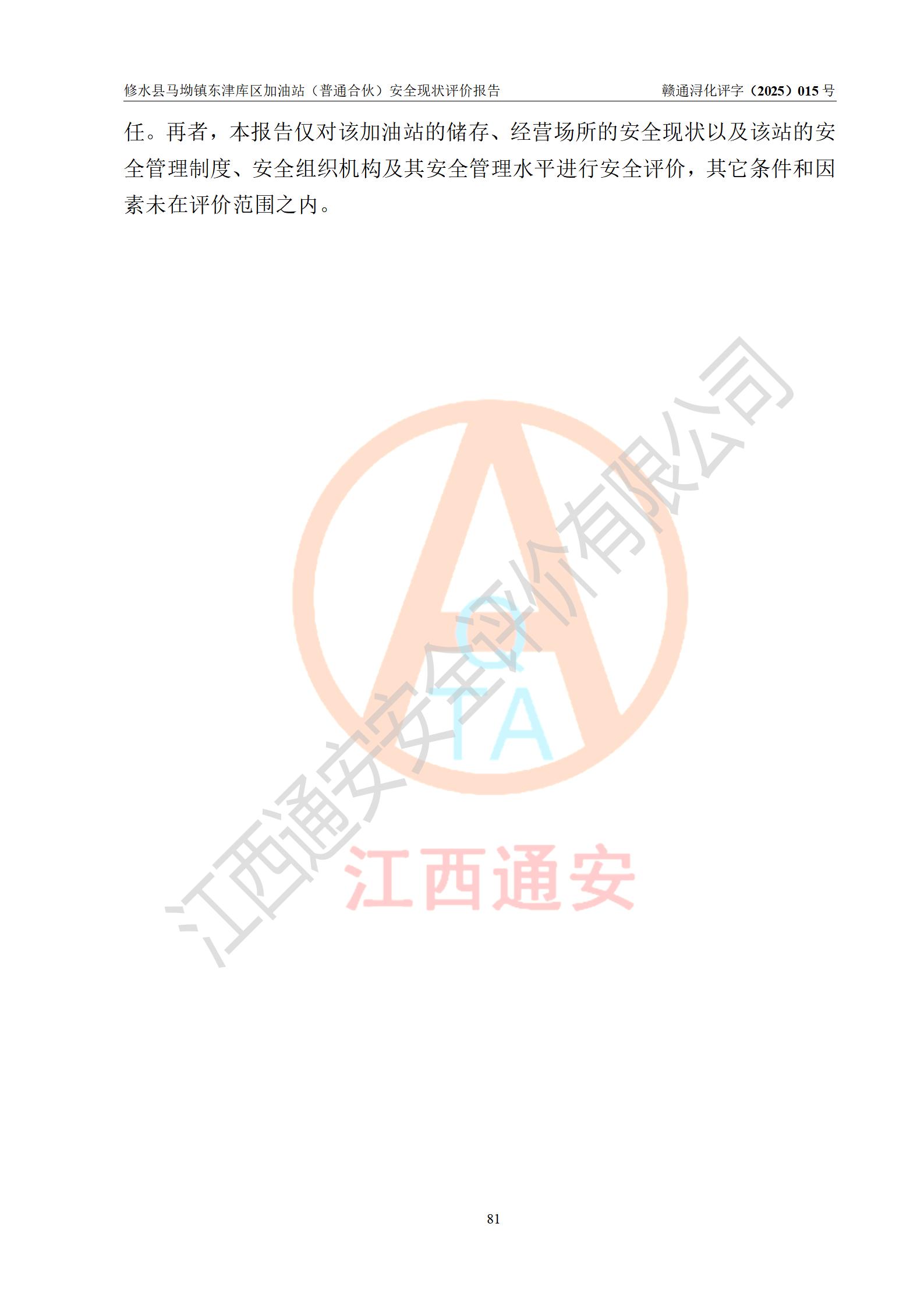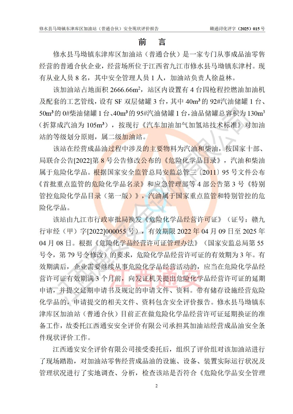 评价报告名称 | 修水县马坳镇东津库区加油站(普通合伙)安全现状评价报告 | |||