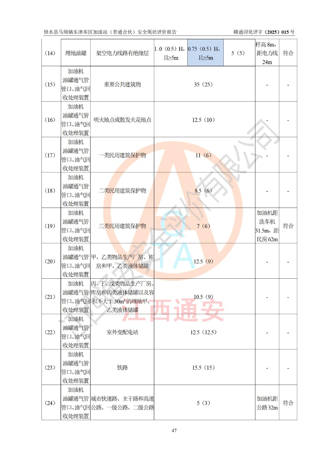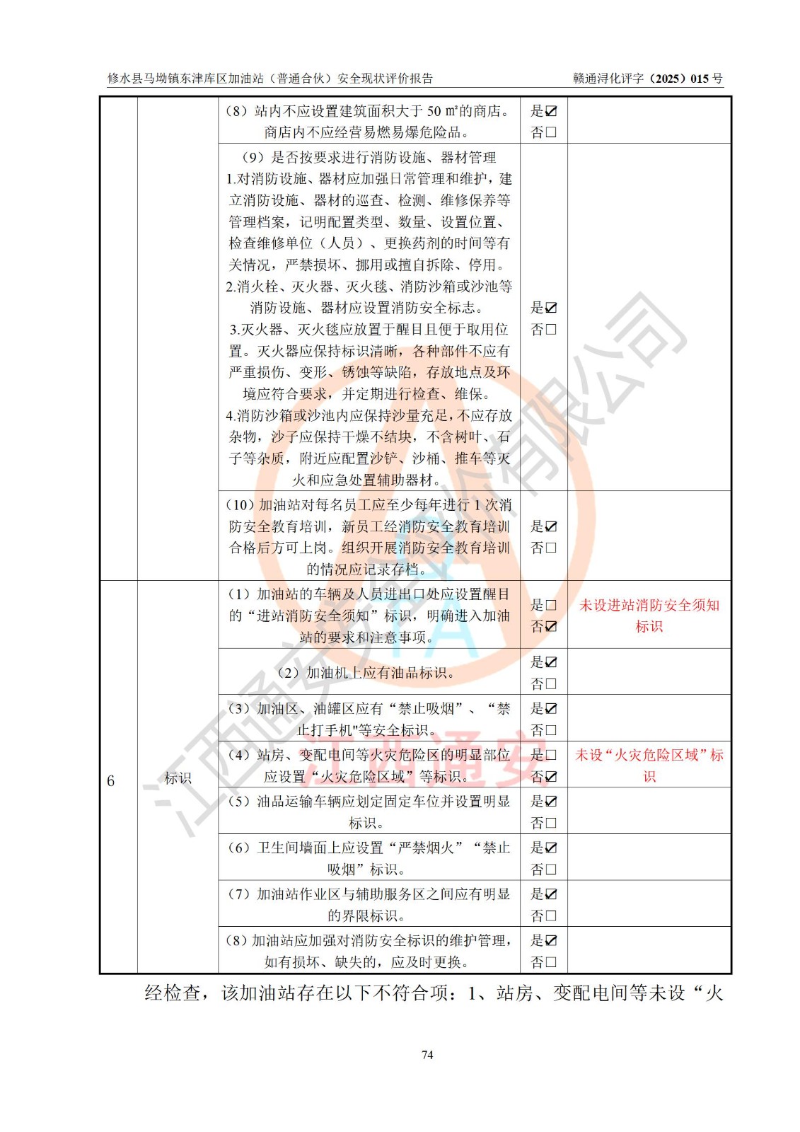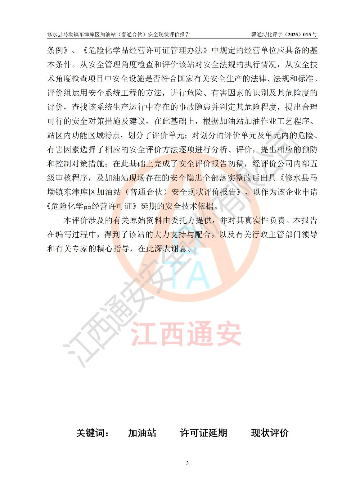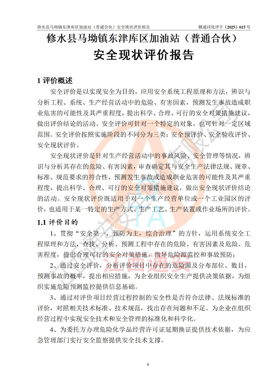 评价报告名称 | 修水县马坳镇东津库区加油站(普通合伙)安全现状评价报告 | |||