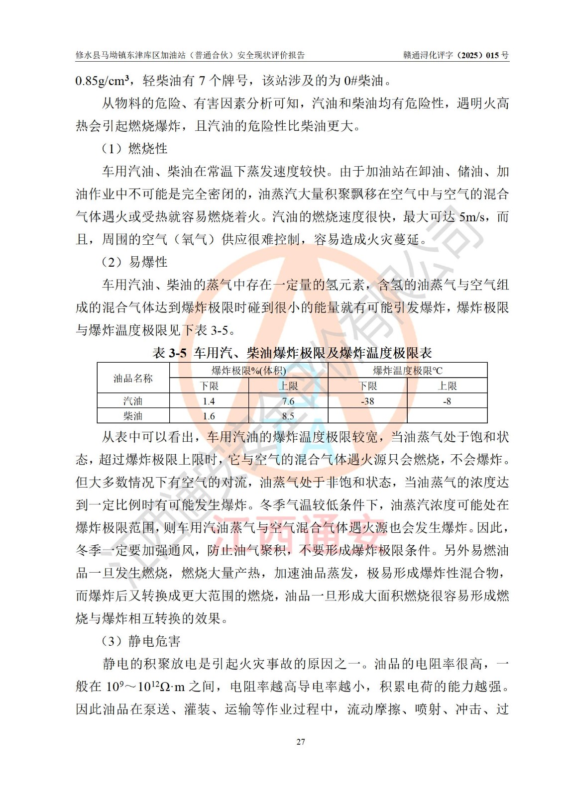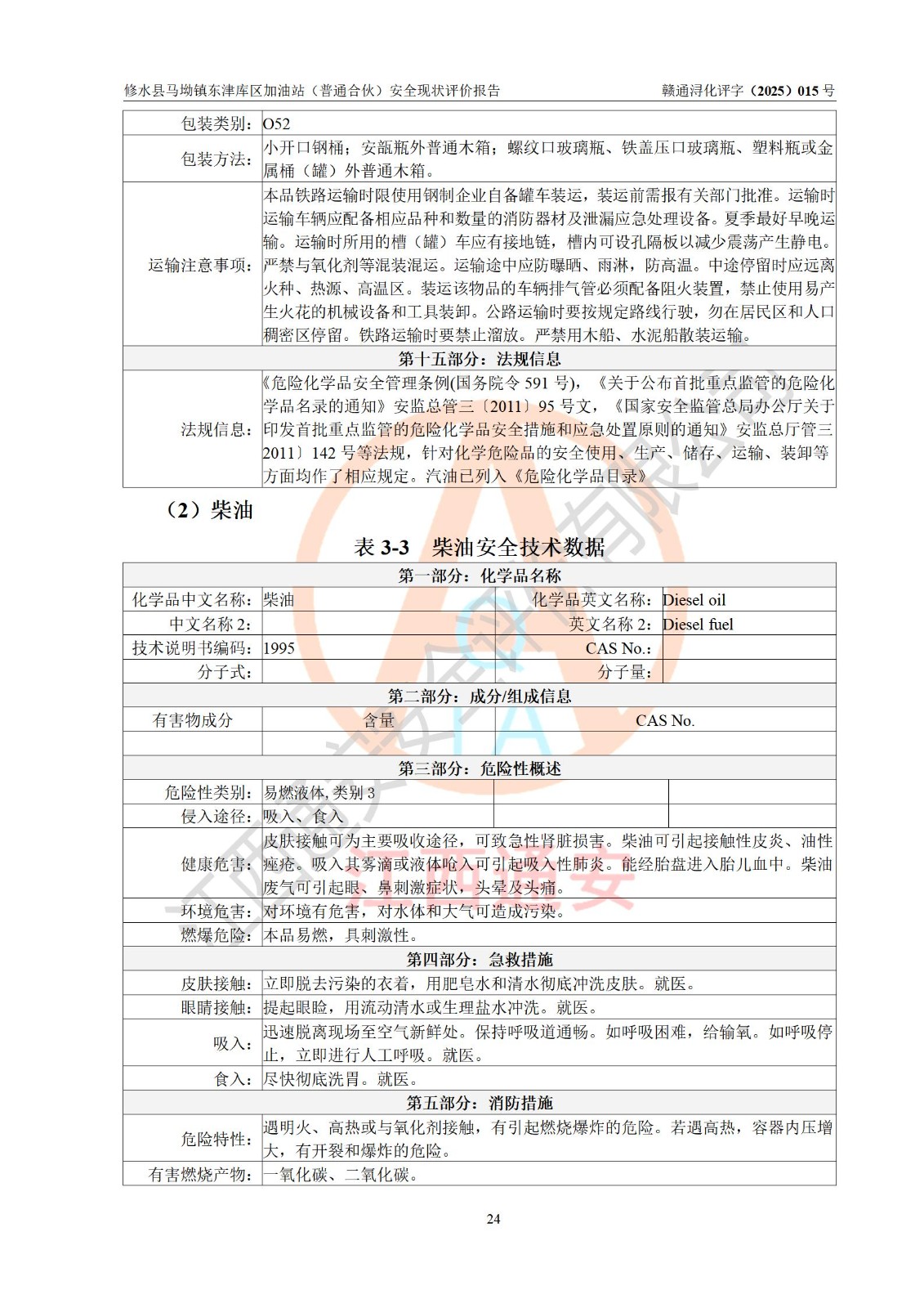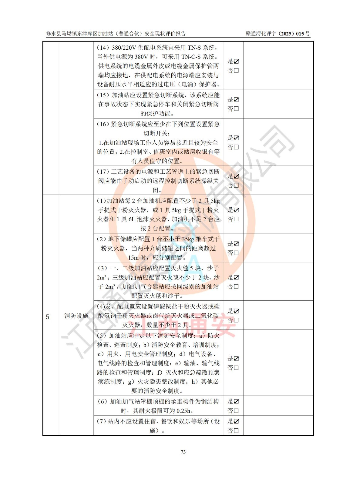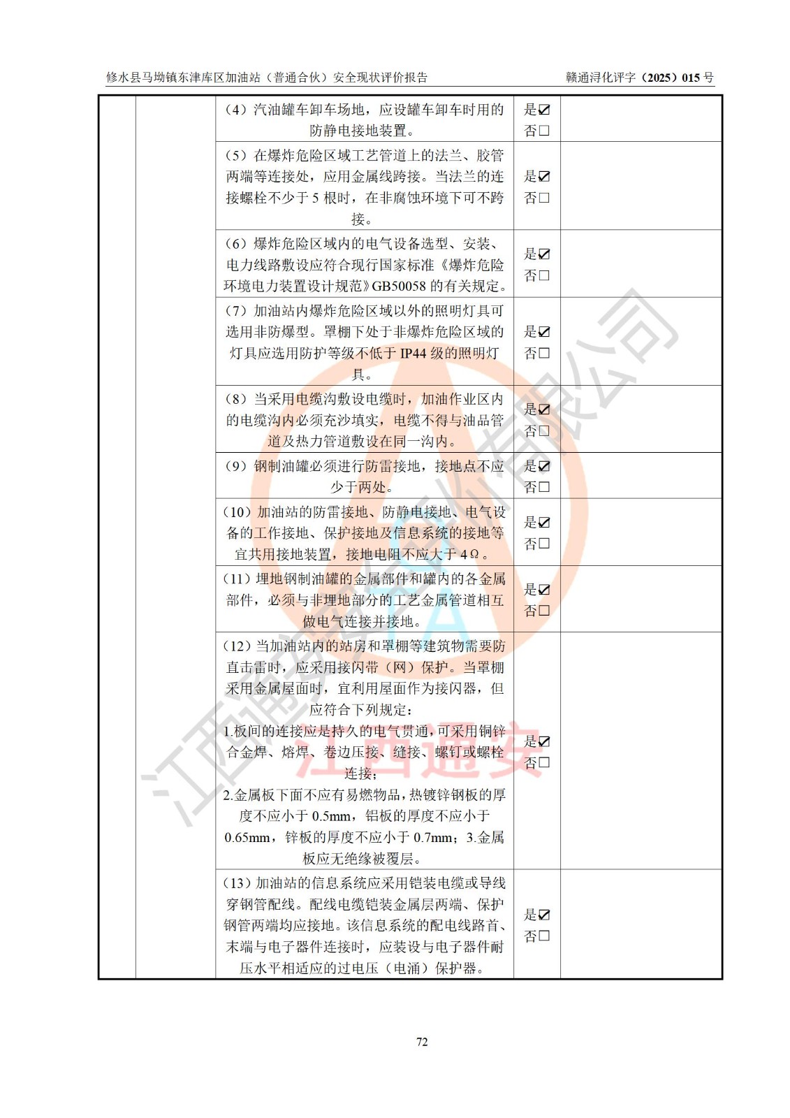 评价报告名称 | 修水县马坳镇东津库区加油站(普通合伙)安全现状评价报告 | |||