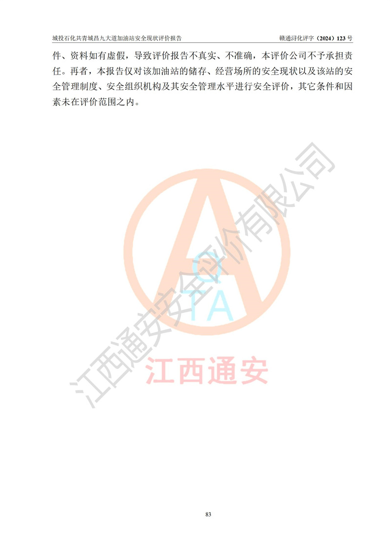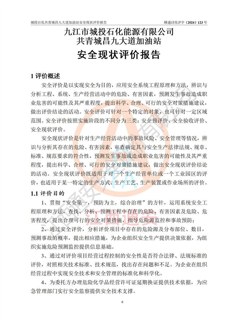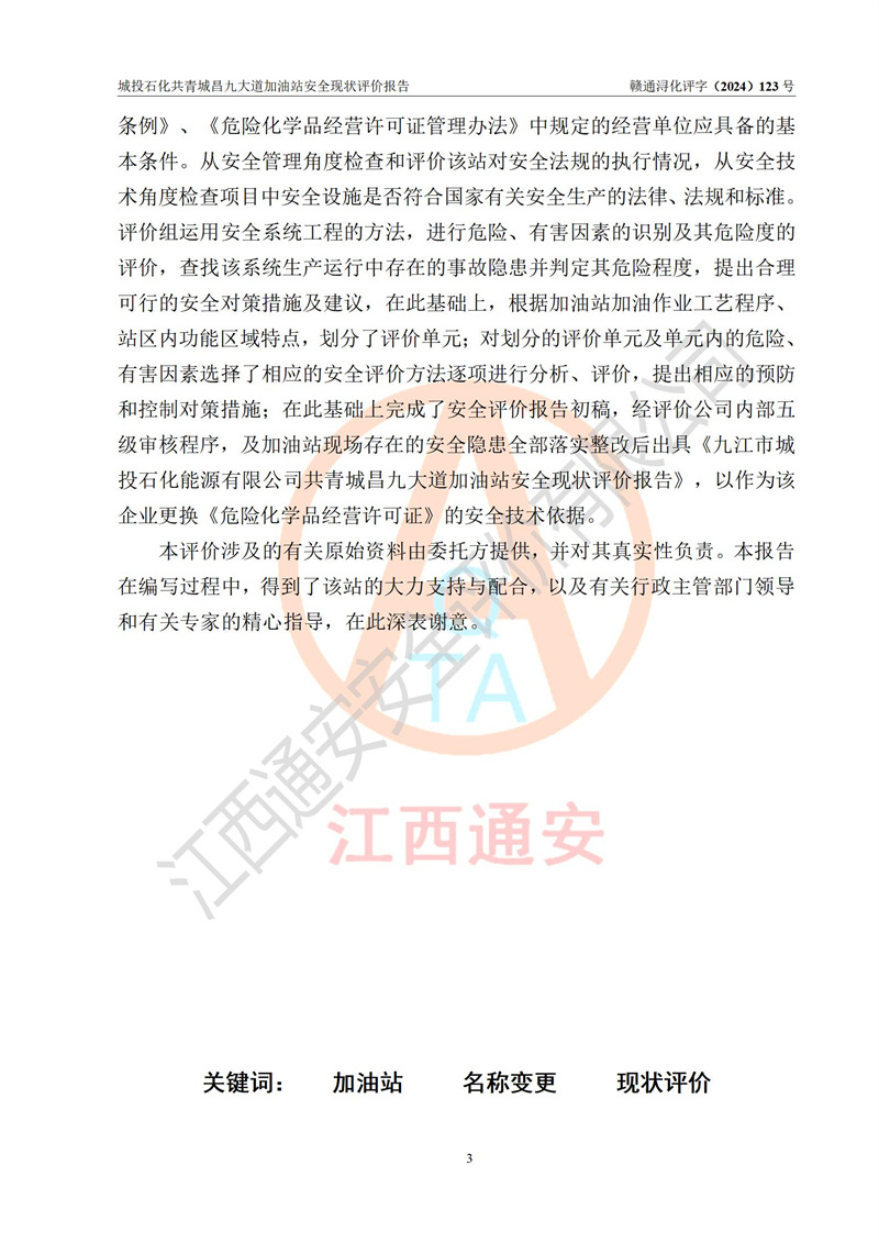 评价报告名称 | 九江市城投石化能源有限公司共青城昌九大道加油站安全现状评价报告 | |||