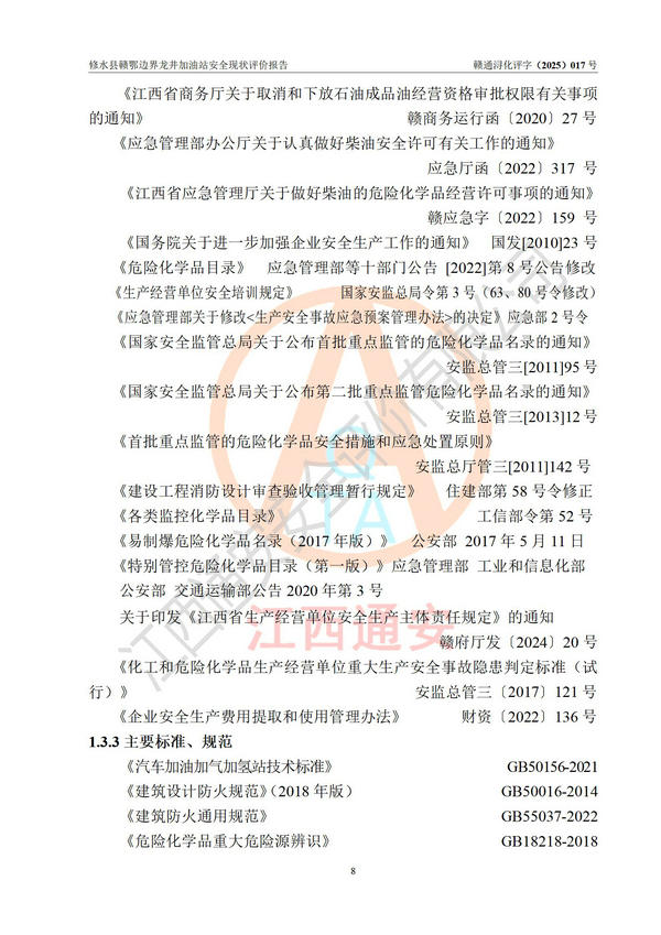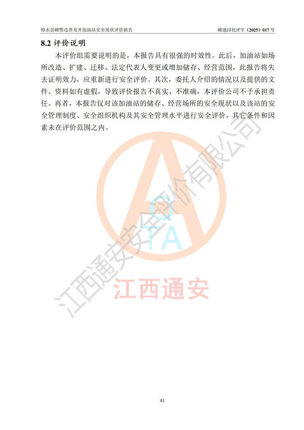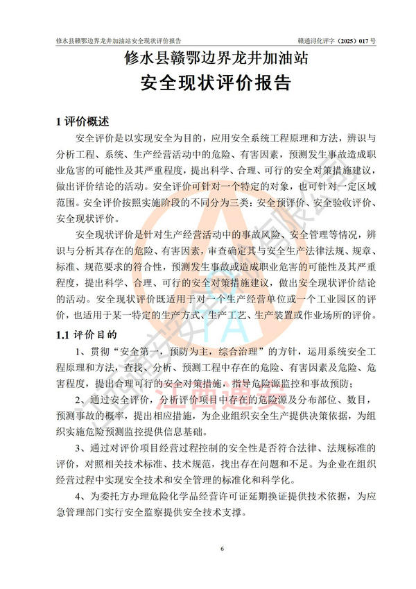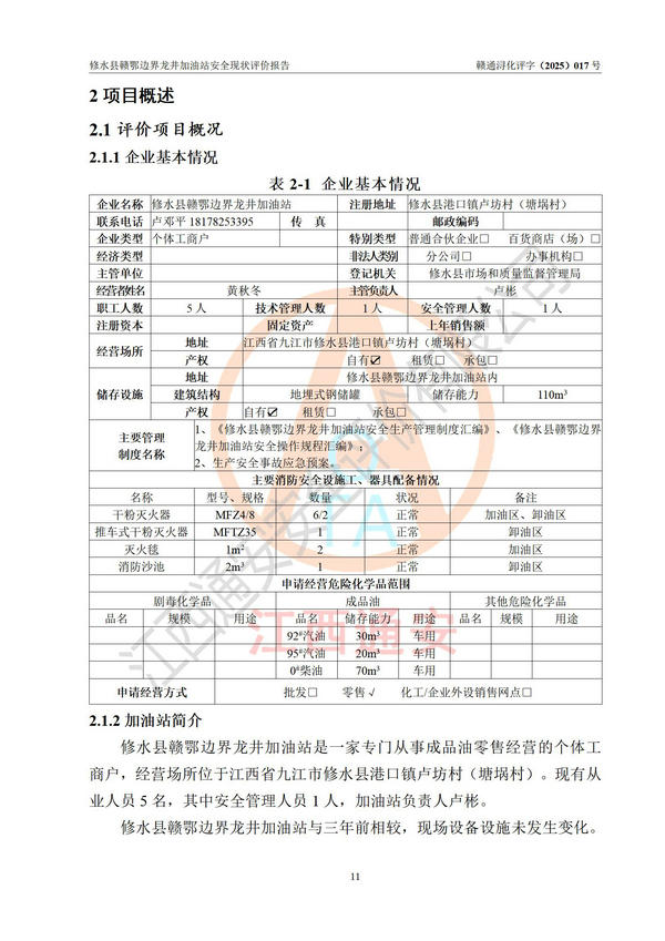 评价报告名称 | 修水县赣鄂边界龙井加油站安全现状评价报告 | |||