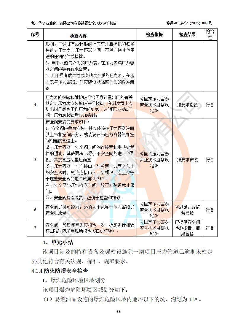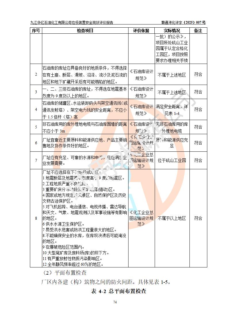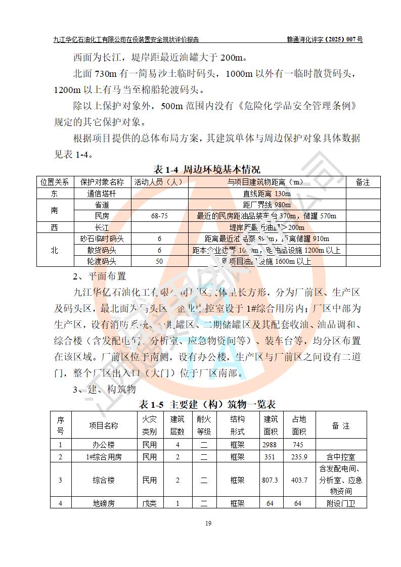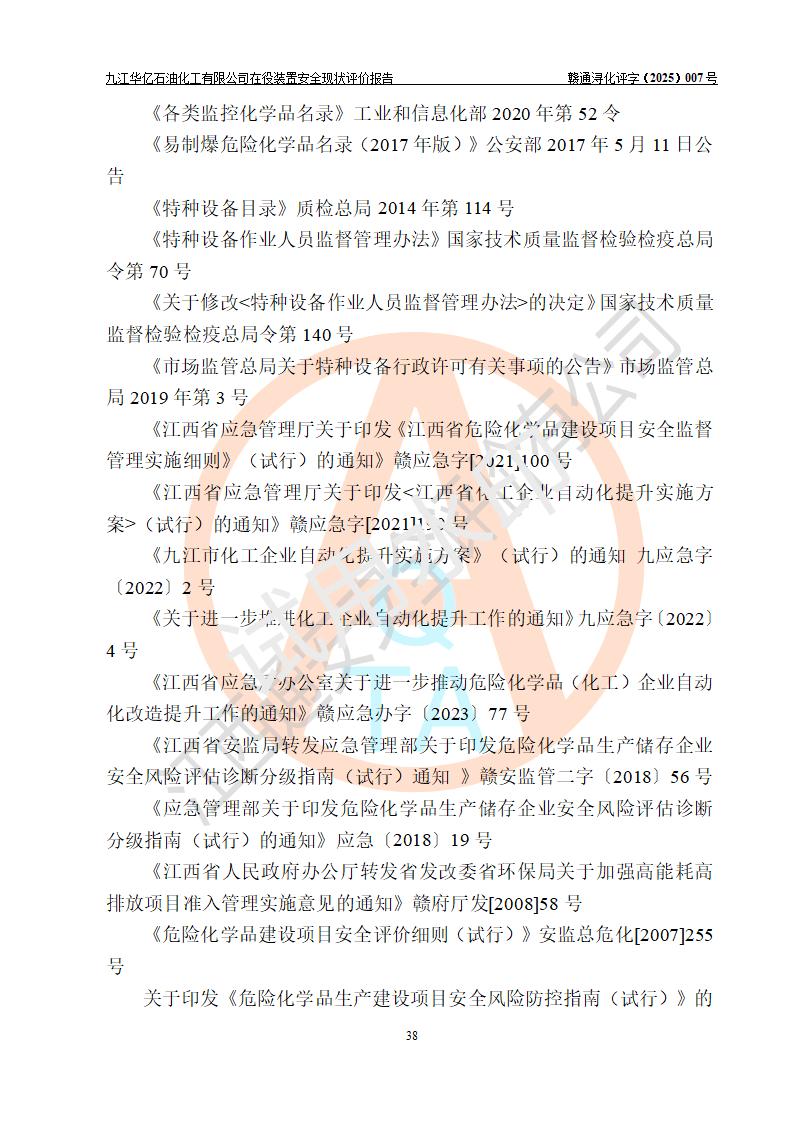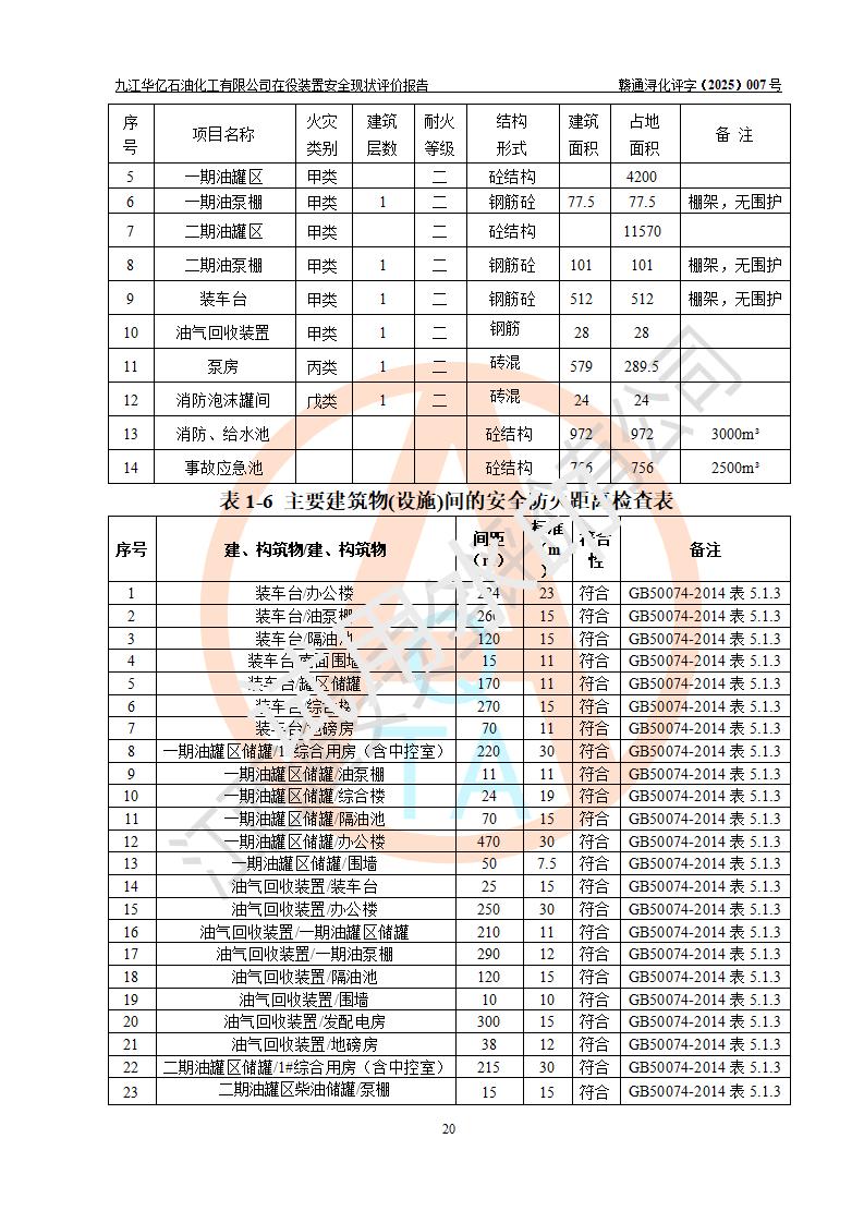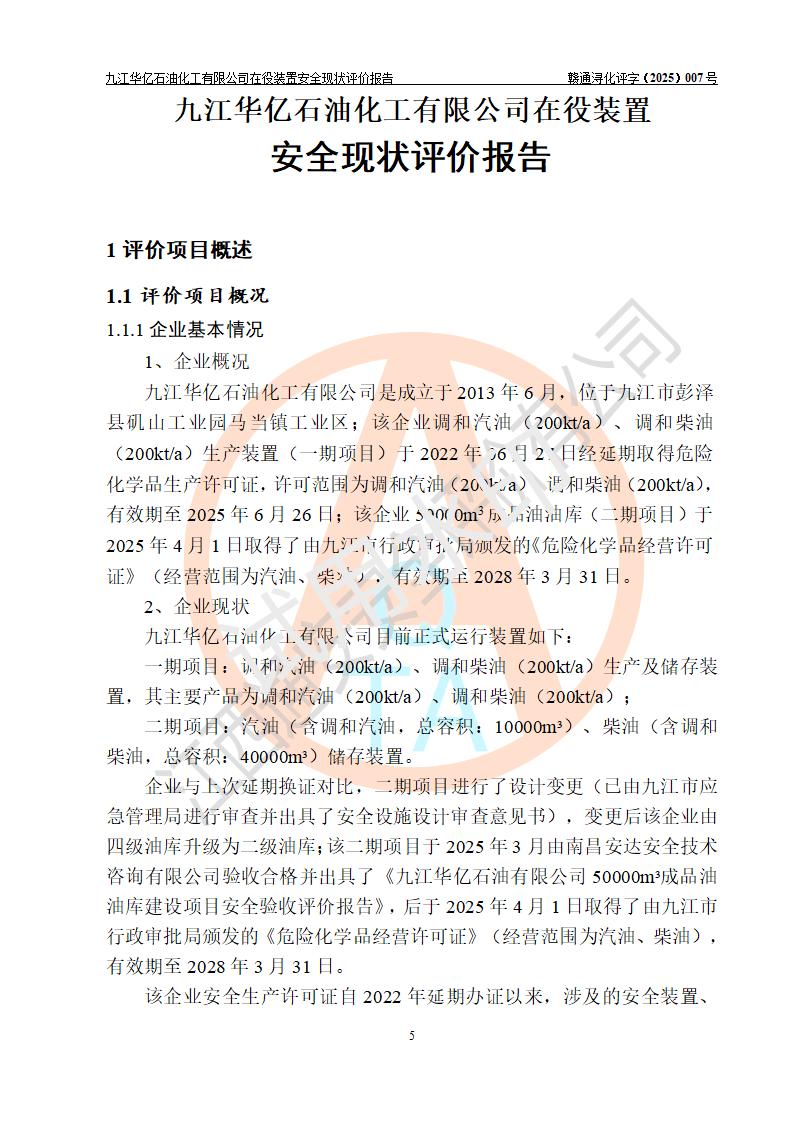 评价报告名称 | 九江华亿石油化工有限公司 在役装置安全现状评价 | |||||