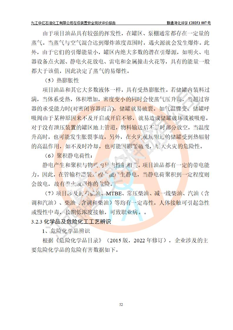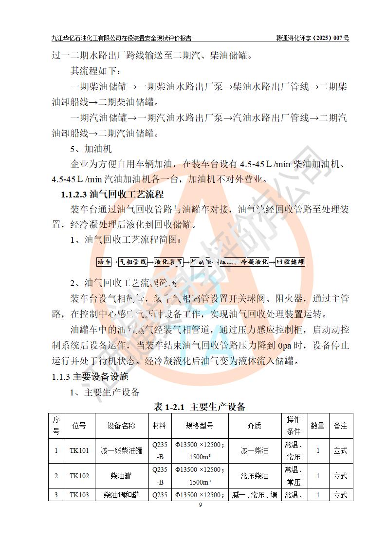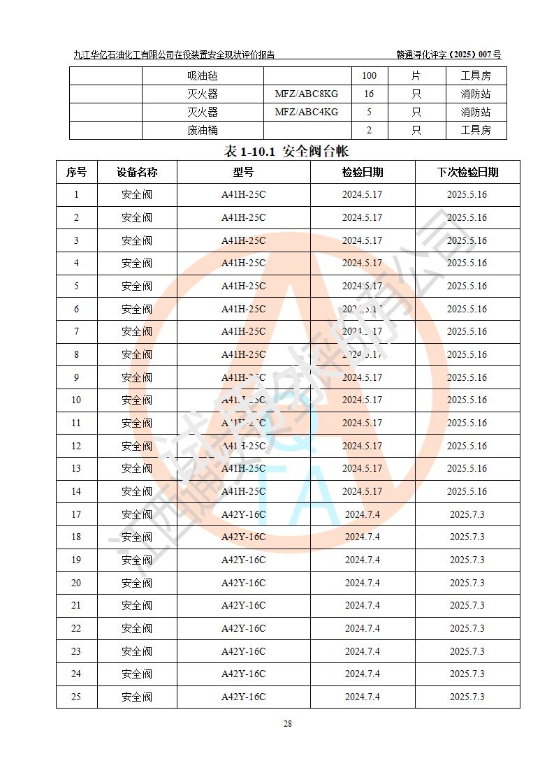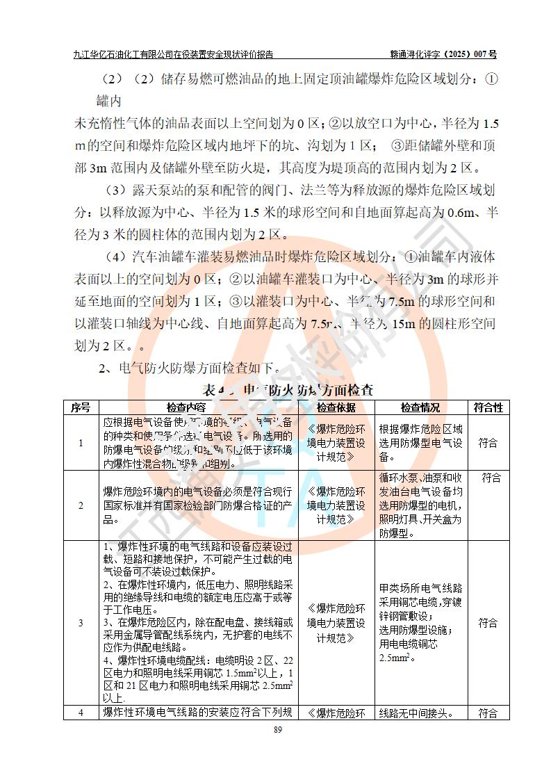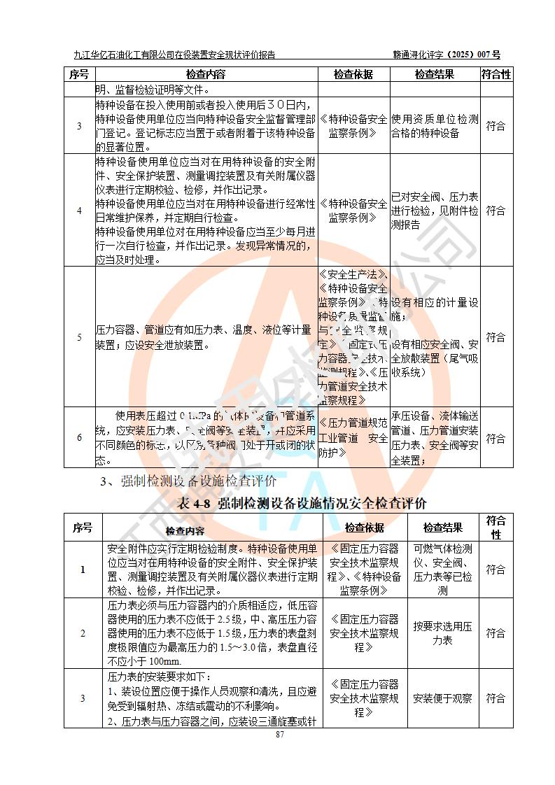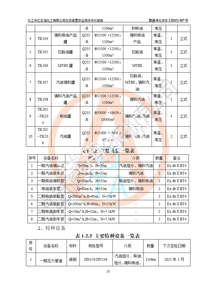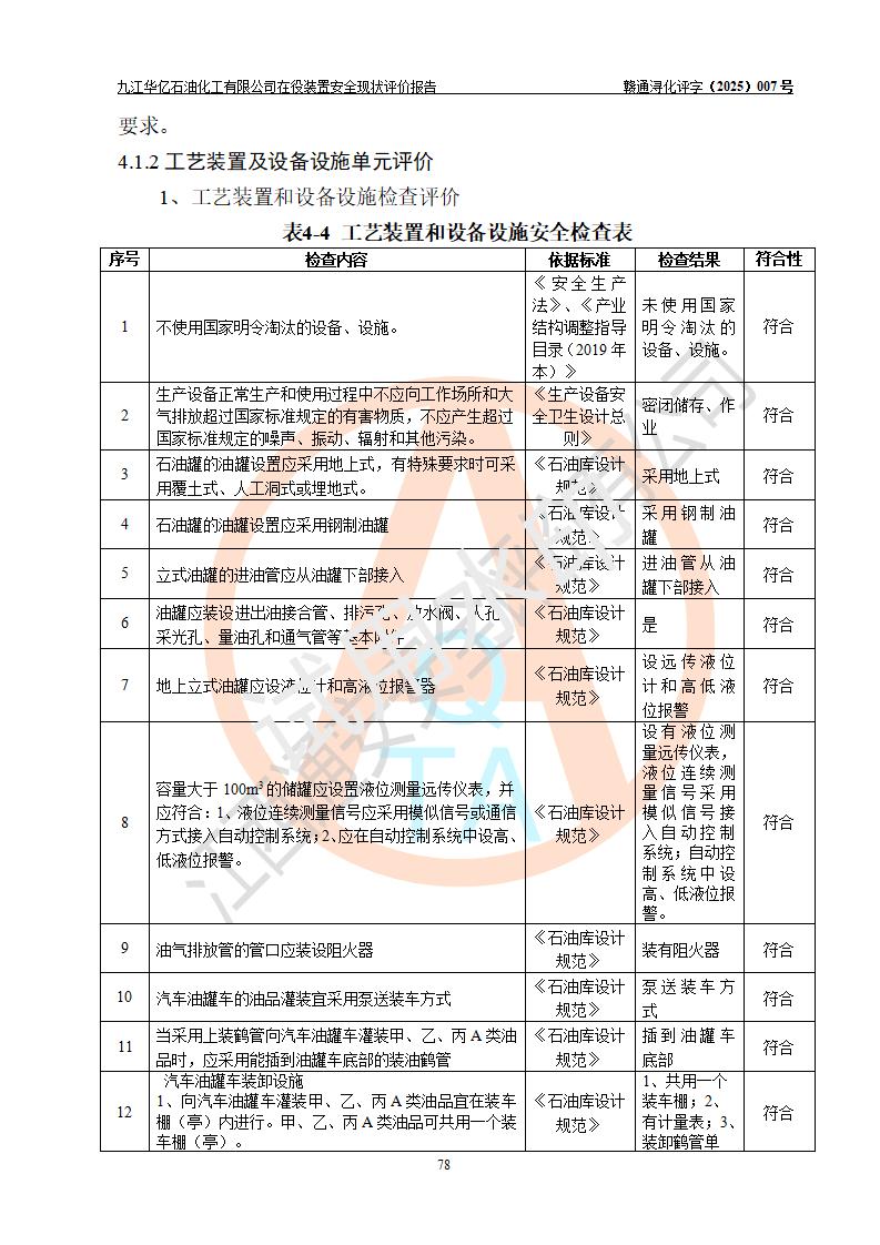 评价报告名称 | 九江华亿石油化工有限公司 在役装置安全现状评价 | |||||
