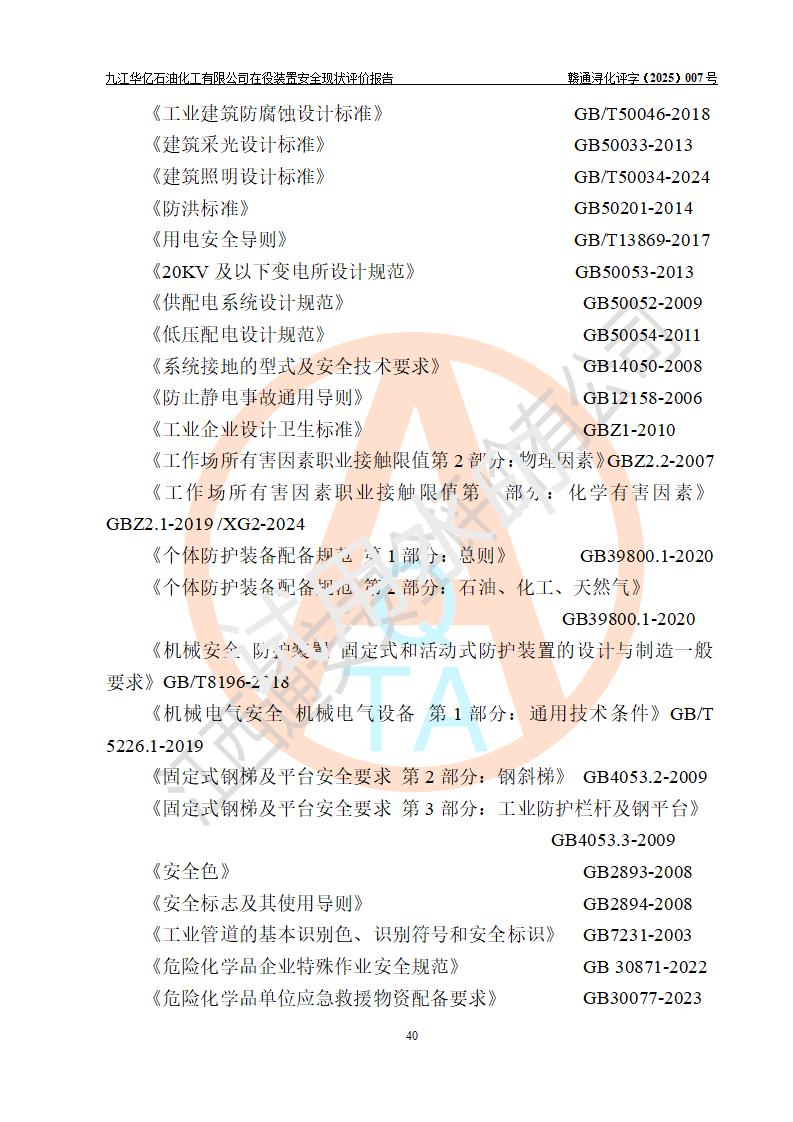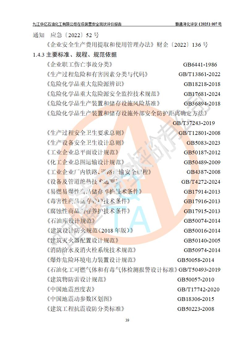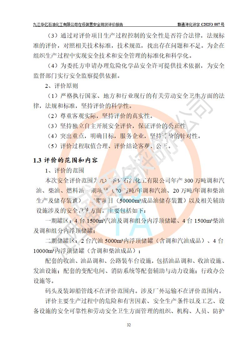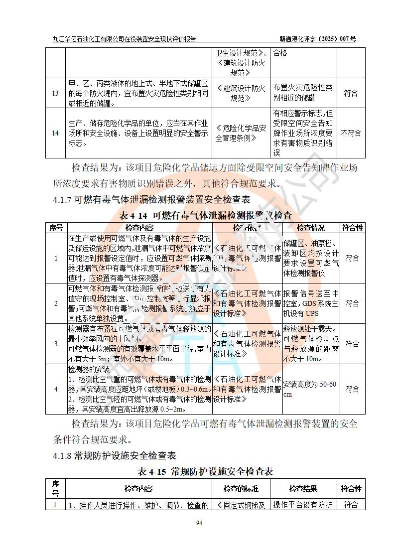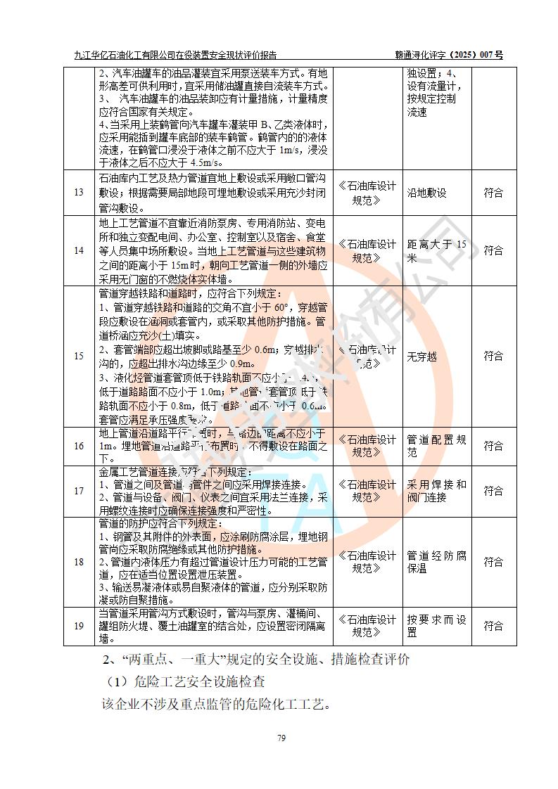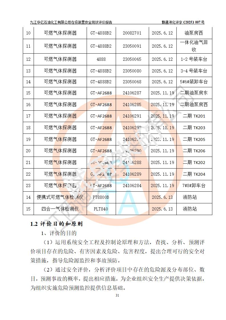 评价报告名称 | 九江华亿石油化工有限公司 在役装置安全现状评价 | |||||