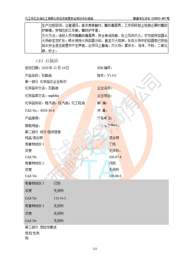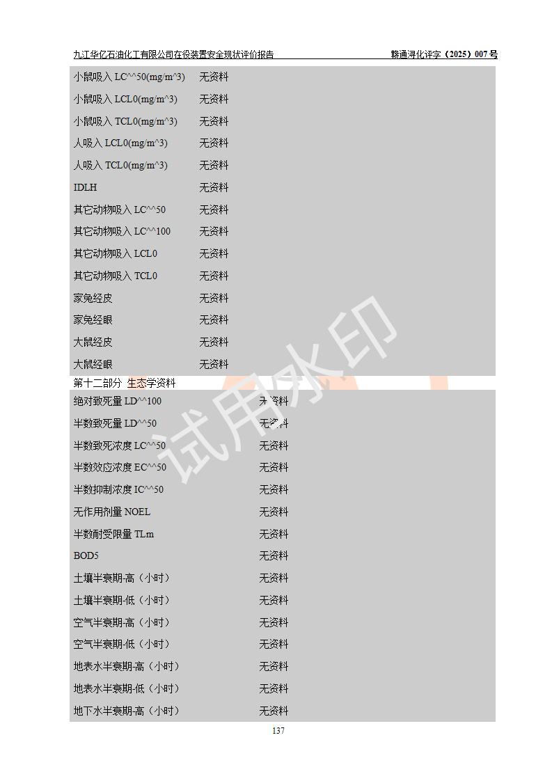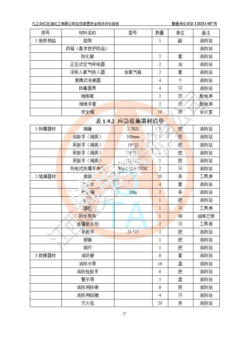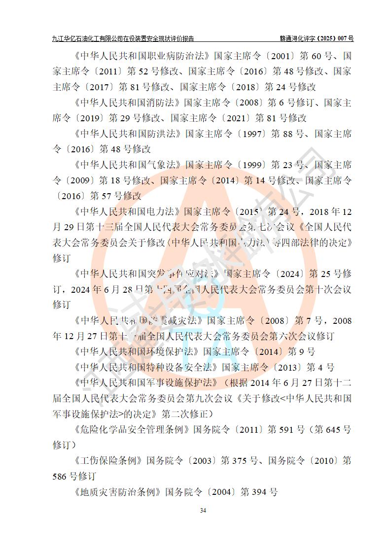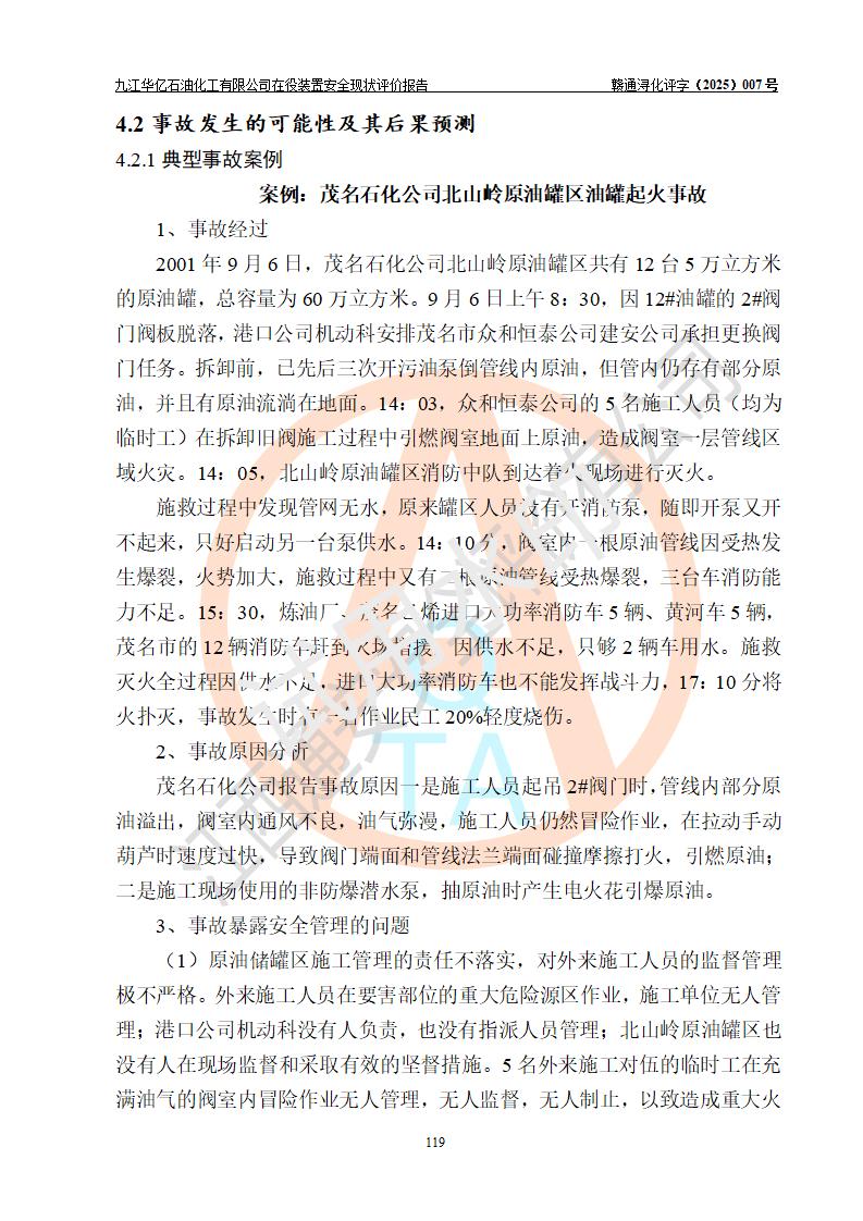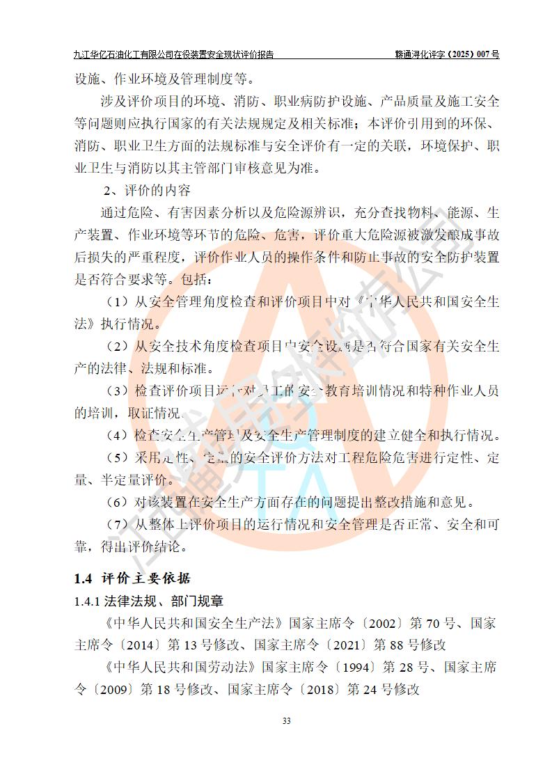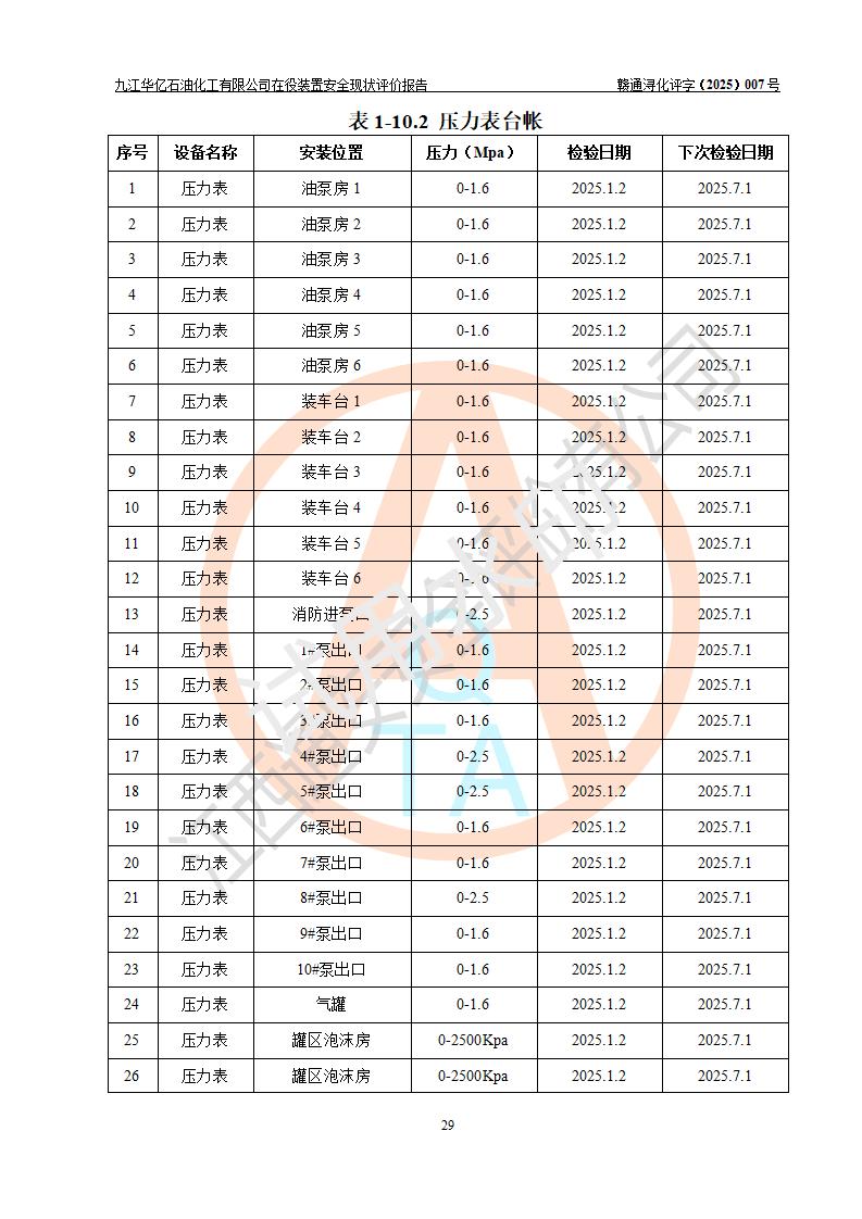 评价报告名称 | 九江华亿石油化工有限公司 在役装置安全现状评价 | |||||