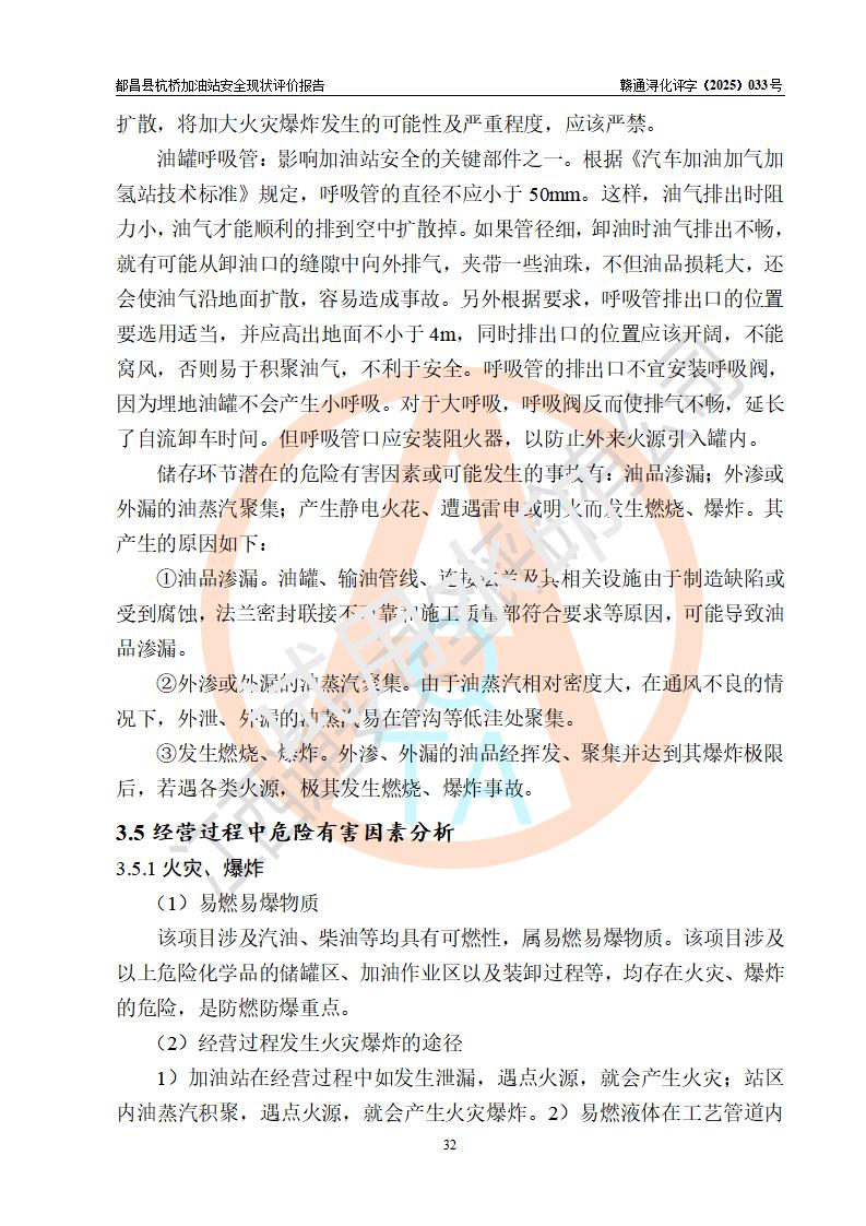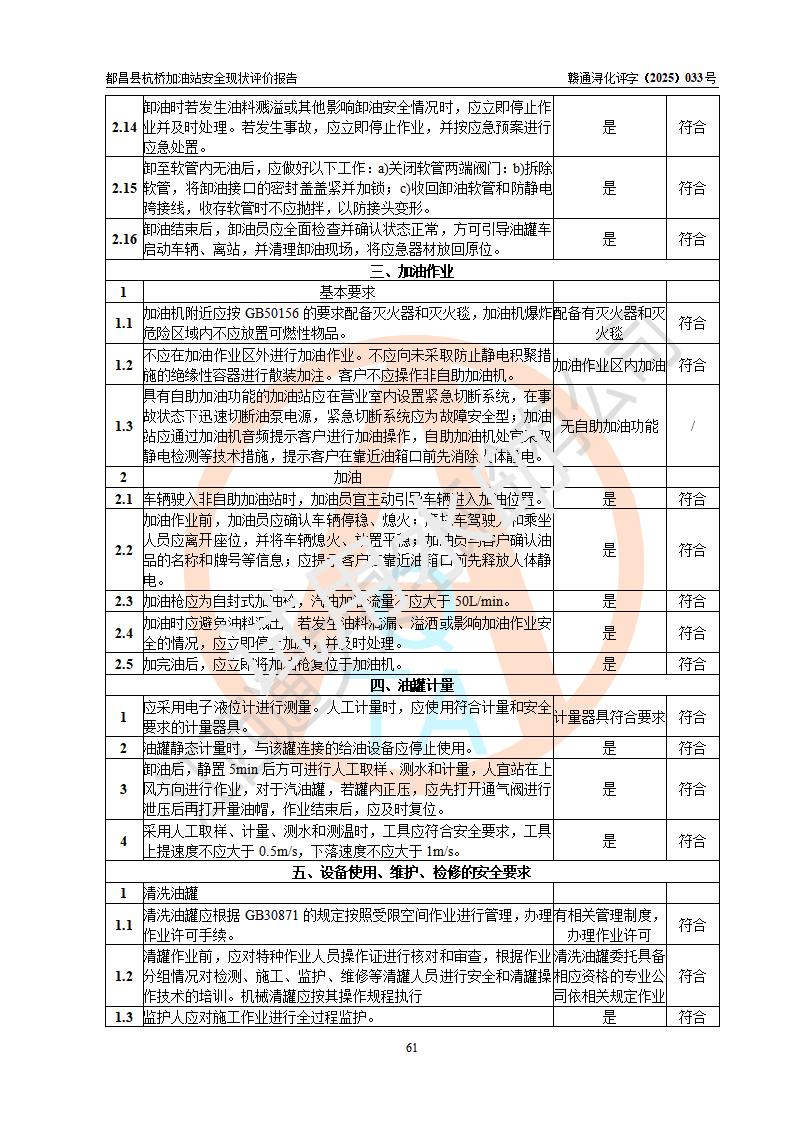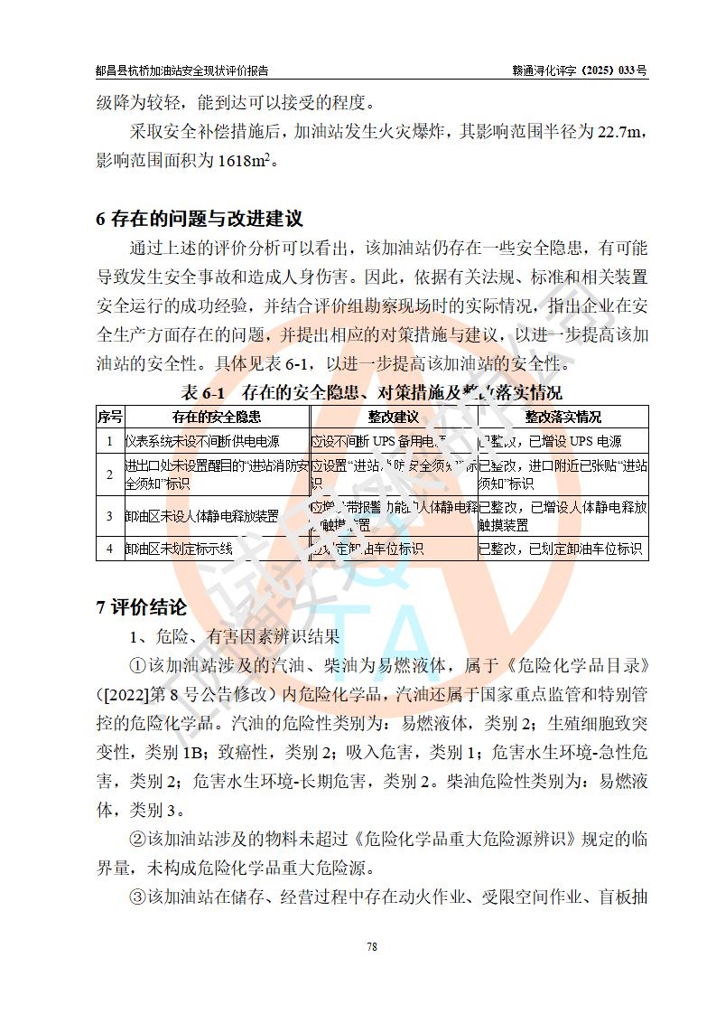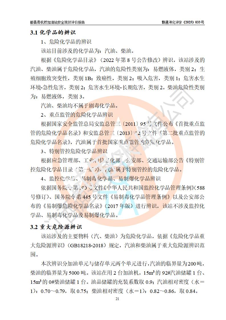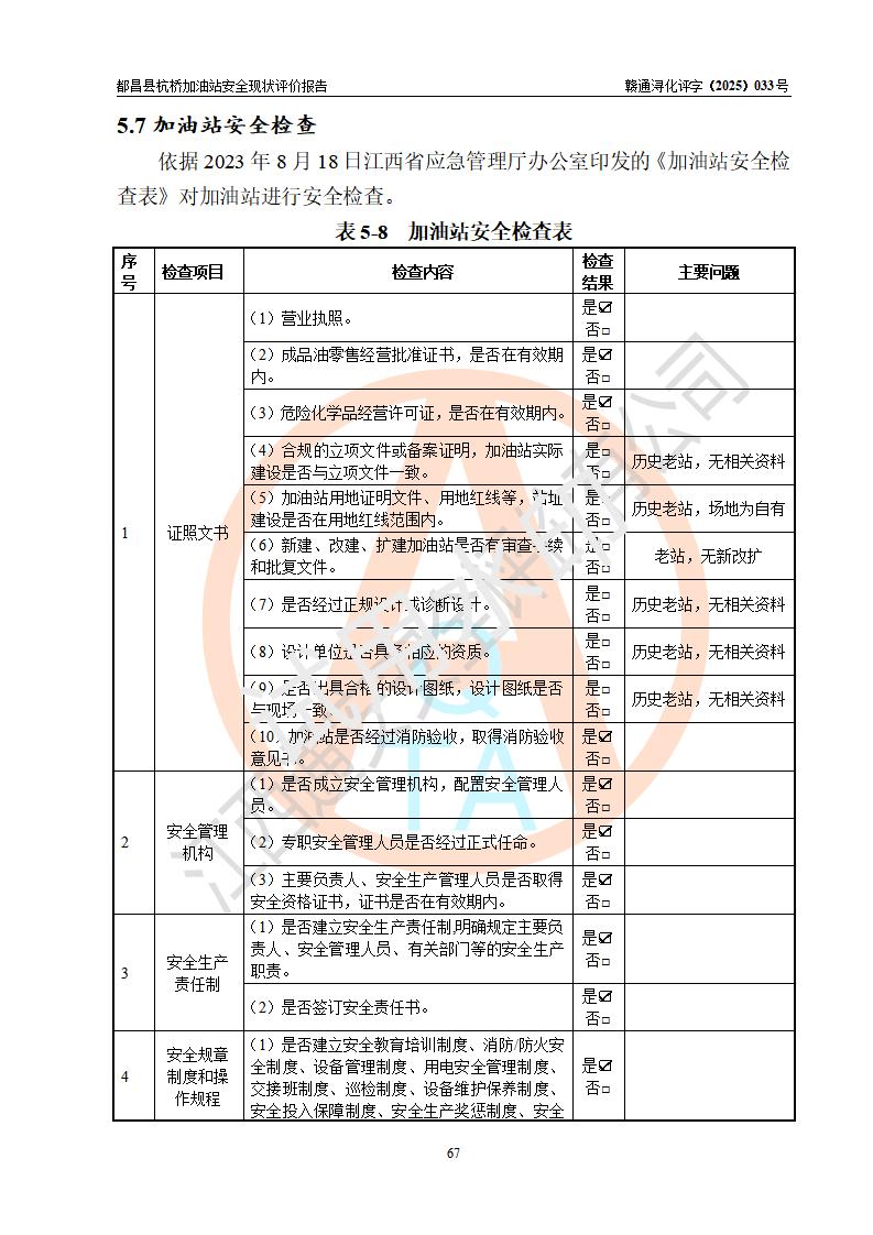 都昌县杭桥加油站是一家专门从事成品油零售经营的个人独资企业,投资人张爱香,经营场所位于都昌县土塘镇杭桥珠光村。该加油站现有从业人员4人,其中安全管理人员1人,主要负责人陈闽。 该加油站站区占地面积833m2,站区内设置有1台三枪税控燃油加油机和1台双枪税控燃油加油机及配套的工艺管线,设有15m3的92#汽油双层储罐1台、15m3的0#柴油双层储罐1台,油品储罐总容积为30m3(折算成汽油为22.5m3)。按现行《汽车加油加气加氢站技术标准》对加油站的等级划分原则,该站属于三级加油站。 该站由九江市行政审批局换发《危险化学品经营许可证》(证号:赣九行审经(甲)字[2022]000080号),**期限2022年06月27日至2025年06月26日。 |