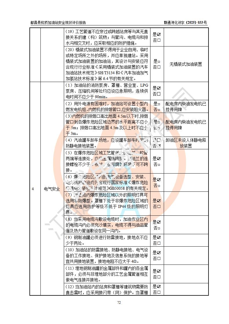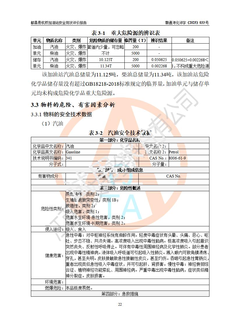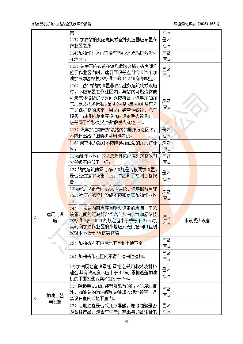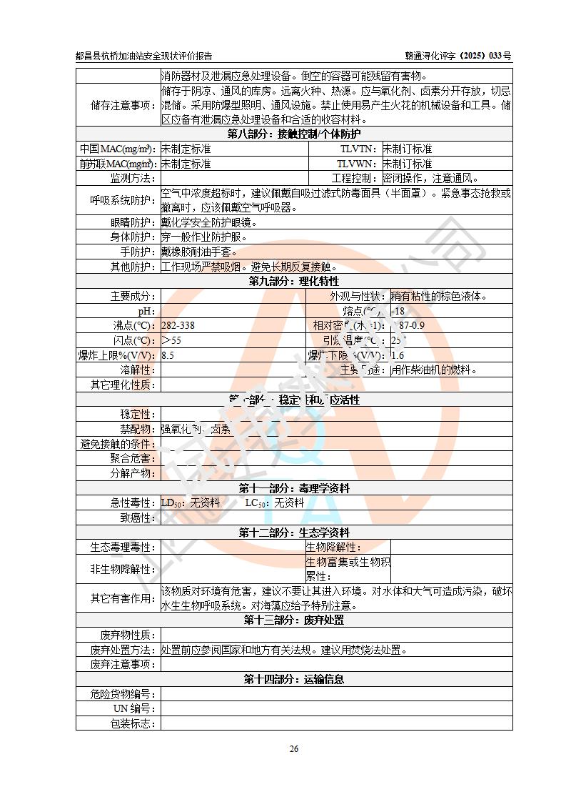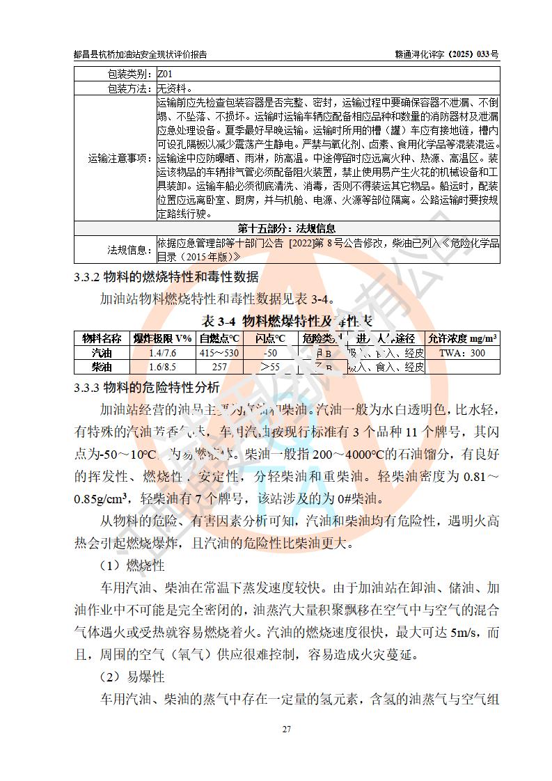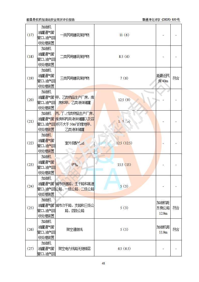 都昌县杭桥加油站是一家专门从事成品油零售经营的个人独资企业,投资人张爱香,经营场所位于都昌县土塘镇杭桥珠光村。该加油站现有从业人员4人,其中安全管理人员1人,主要负责人陈闽。 该加油站站区占地面积833m2,站区内设置有1台三枪税控燃油加油机和1台双枪税控燃油加油机及配套的工艺管线,设有15m3的92#汽油双层储罐1台、15m3的0#柴油双层储罐1台,油品储罐总容积为30m3(折算成汽油为22.5m3)。按现行《汽车加油加气加氢站技术标准》对加油站的等级划分原则,该站属于三级加油站。 该站由九江市行政审批局换发《危险化学品经营许可证》(证号:赣九行审经(甲)字[2022]000080号),**期限2022年06月27日至2025年06月26日。 |