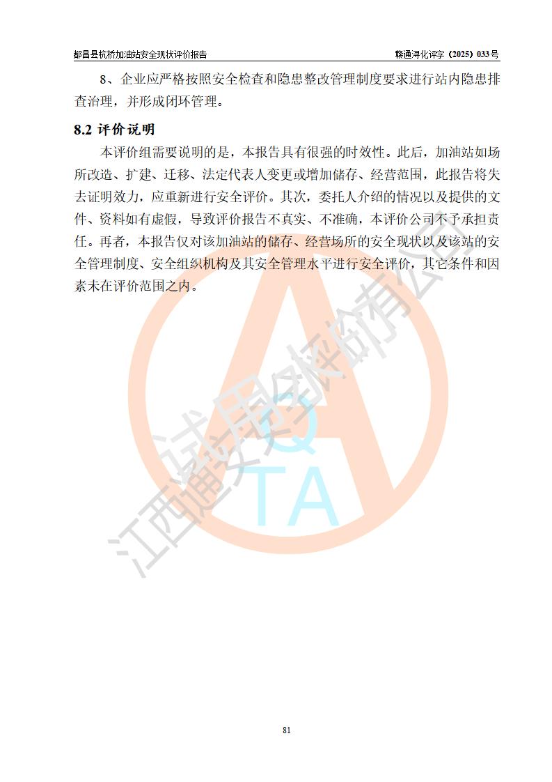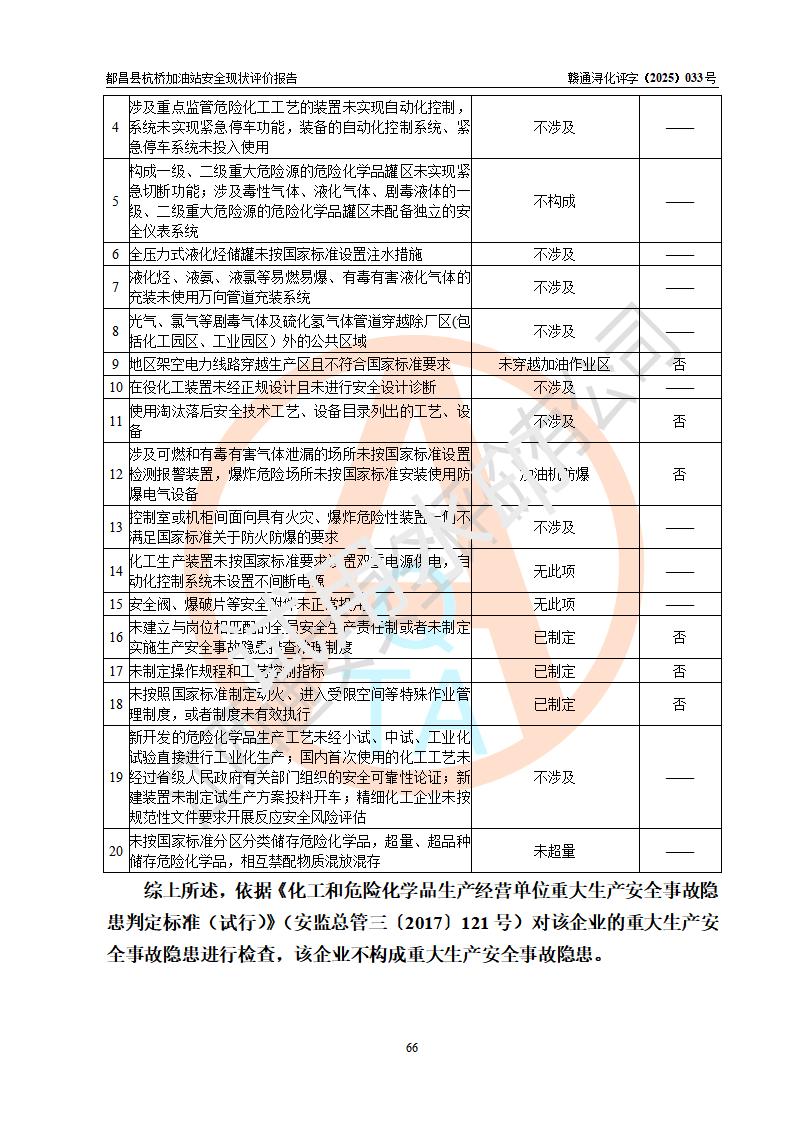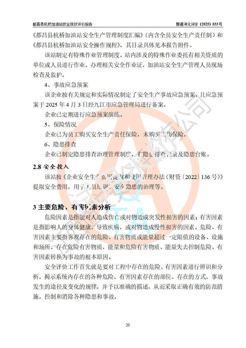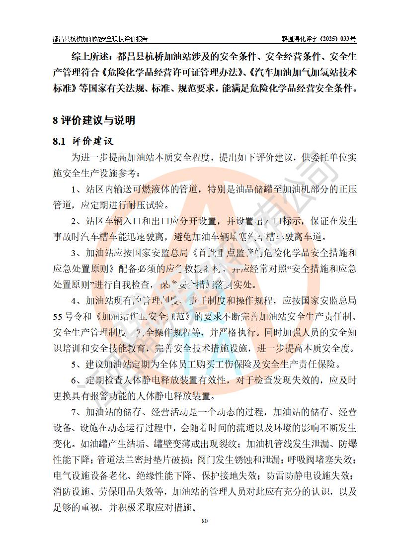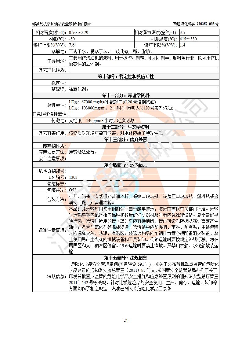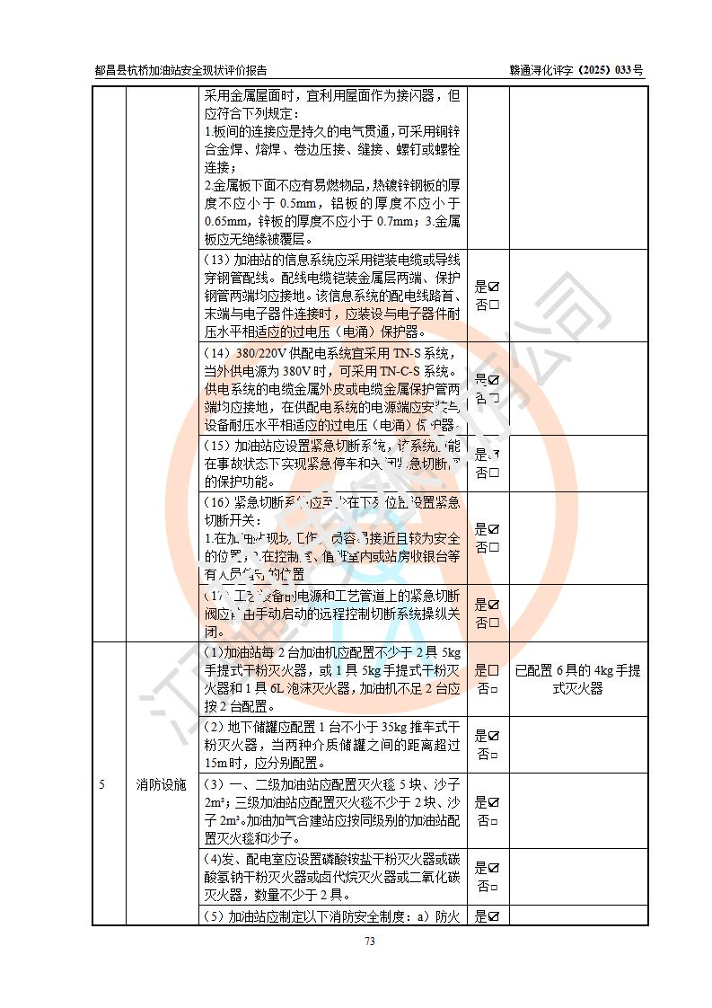 都昌县杭桥加油站是一家专门从事成品油零售经营的个人独资企业,投资人张爱香,经营场所位于都昌县土塘镇杭桥珠光村。该加油站现有从业人员4人,其中安全管理人员1人,主要负责人陈闽。 该加油站站区占地面积833m2,站区内设置有1台三枪税控燃油加油机和1台双枪税控燃油加油机及配套的工艺管线,设有15m3的92#汽油双层储罐1台、15m3的0#柴油双层储罐1台,油品储罐总容积为30m3(折算成汽油为22.5m3)。按现行《汽车加油加气加氢站技术标准》对加油站的等级划分原则,该站属于三级加油站。 该站由九江市行政审批局换发《危险化学品经营许可证》(证号:赣九行审经(甲)字[2022]000080号),**期限2022年06月27日至2025年06月26日。 |