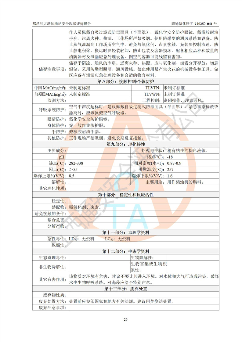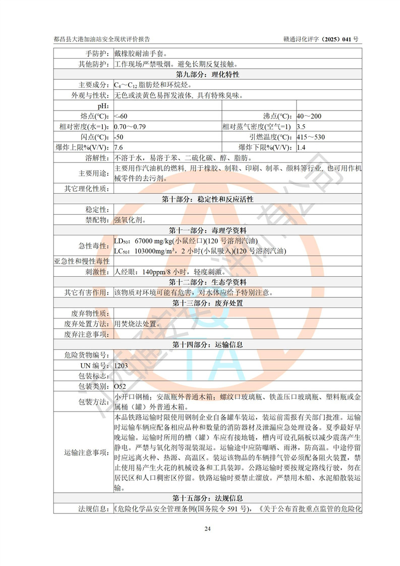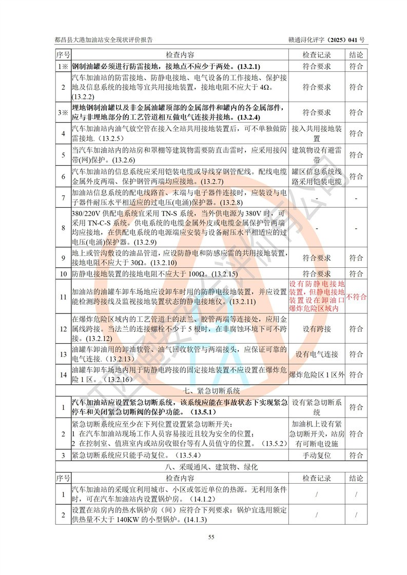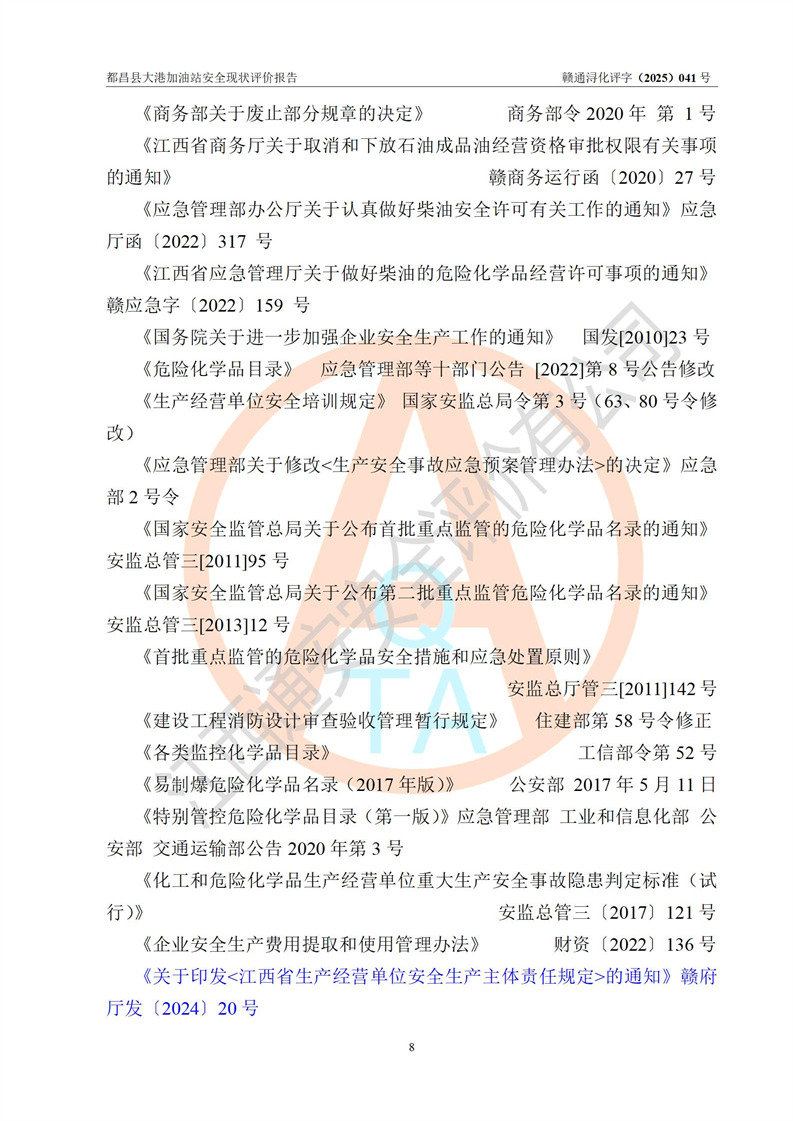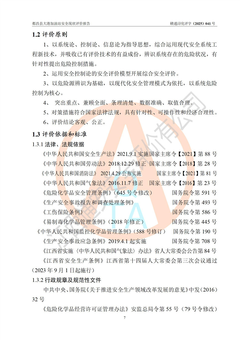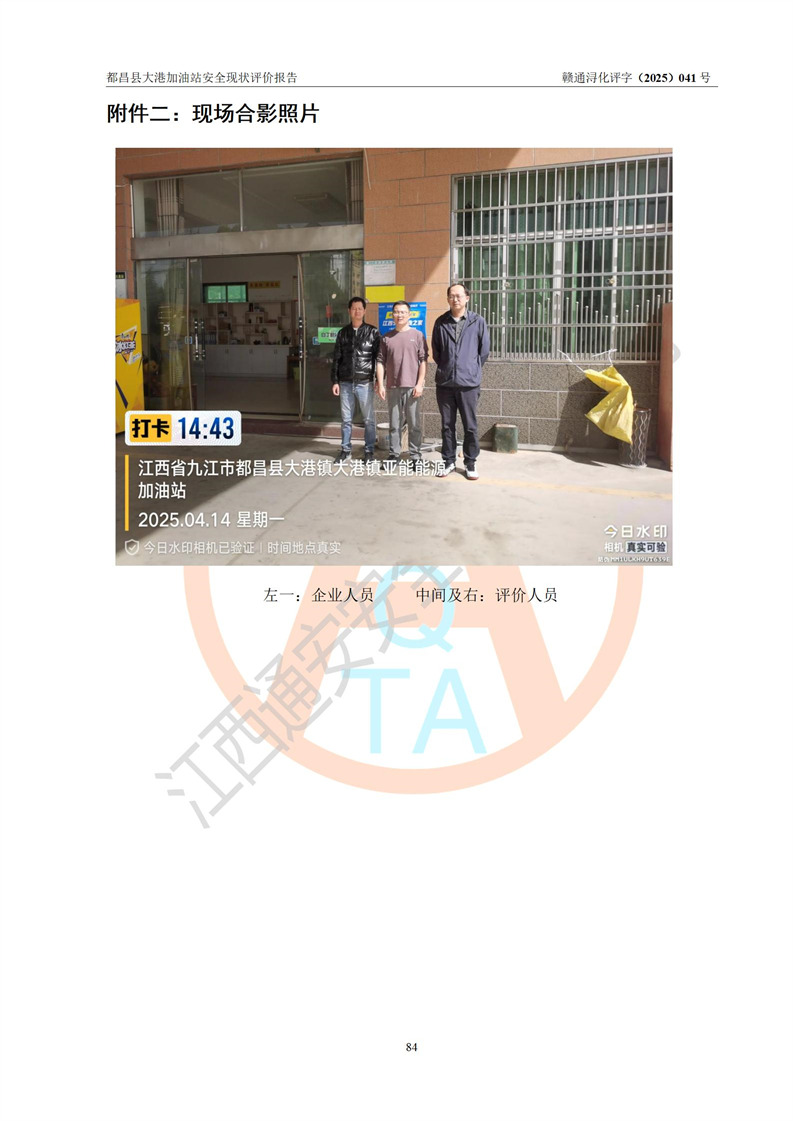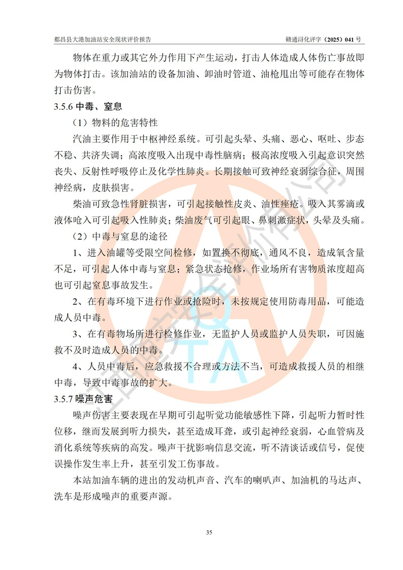 都昌县大港加油站是一家专门从事成品油零售经营的个人独资企业,投资人程绍敏,经营场所位于江西省九江市都昌县大港镇大港街。该加油站现有从业人员4人,其中安全管理人员1人,主要负责人陈宇。 该加油站占地面积约1680.8m2,站区内设置有4台税控燃油加油机及配套的工艺管线,设有双层储罐4台,其中50m3的0#柴油储罐1台、30m3的0#柴油储罐1台、50m3的92#汽油储罐1台,30m3的95#汽油储罐1台,油品储罐总容积为160m3(折算成汽油为120m3)。按现行《汽车加油加气加氢站技术标准》对加油站的等级划分原则,该站属于二级加油站。 该站在经营成品油过程中涉及的主要物料为汽油和柴油,按**十部、局联合公告[2022]第8号公告修改公布的《危险化学品目录》,汽油和柴油属于危险化学品。 |