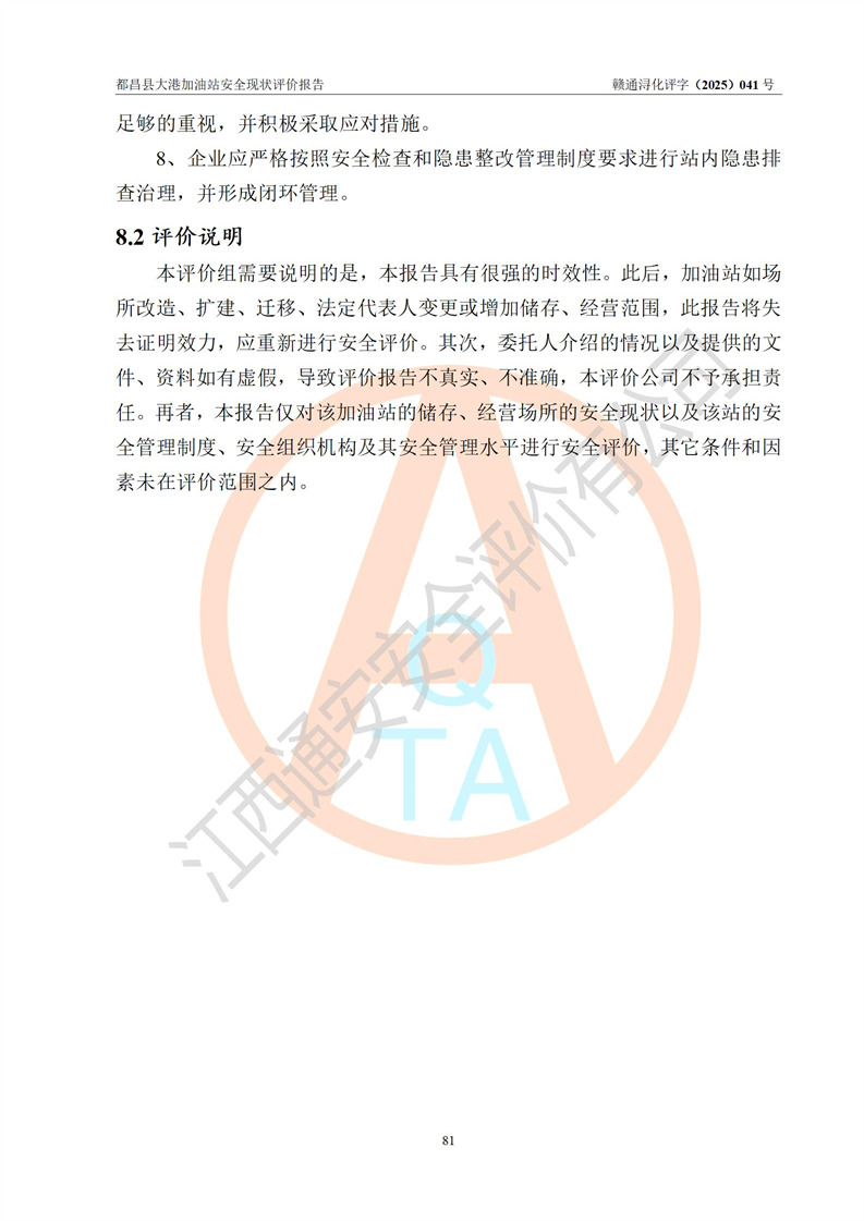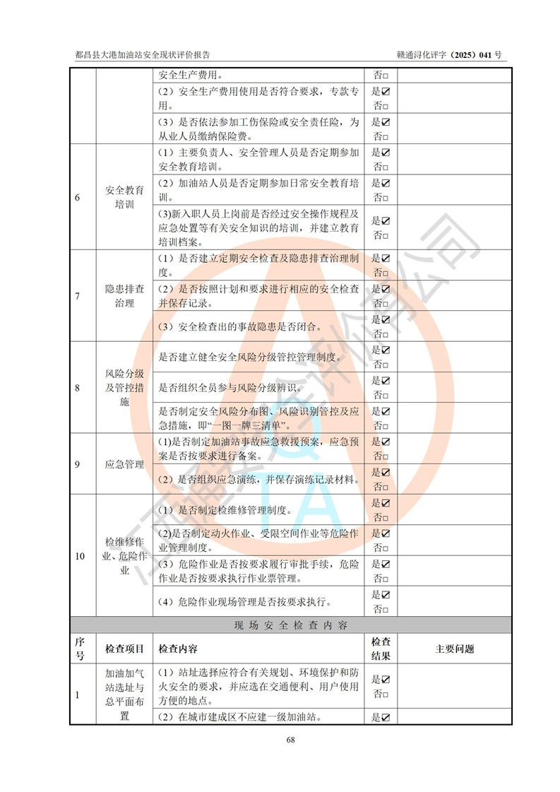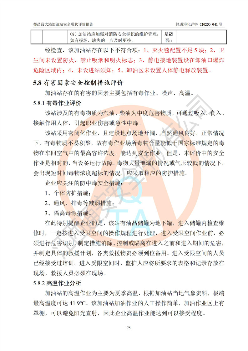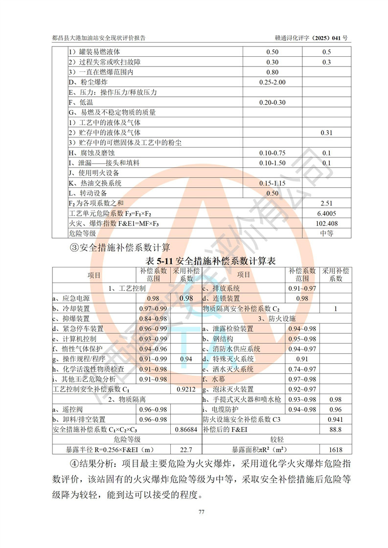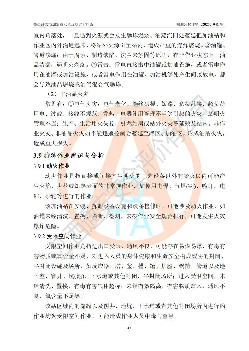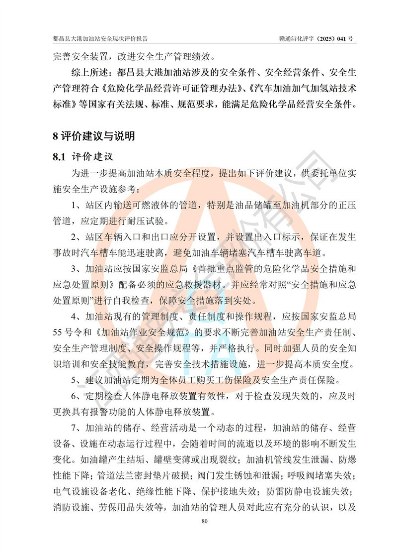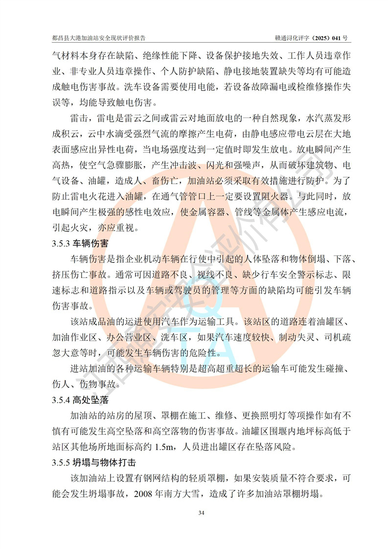 都昌县大港加油站是一家专门从事成品油零售经营的个人独资企业,投资人程绍敏,经营场所位于江西省九江市都昌县大港镇大港街。该加油站现有从业人员4人,其中安全管理人员1人,主要负责人陈宇。 该加油站占地面积约1680.8m2,站区内设置有4台税控燃油加油机及配套的工艺管线,设有双层储罐4台,其中50m3的0#柴油储罐1台、30m3的0#柴油储罐1台、50m3的92#汽油储罐1台,30m3的95#汽油储罐1台,油品储罐总容积为160m3(折算成汽油为120m3)。按现行《汽车加油加气加氢站技术标准》对加油站的等级划分原则,该站属于二级加油站。 该站在经营成品油过程中涉及的主要物料为汽油和柴油,按**十部、局联合公告[2022]第8号公告修改公布的《危险化学品目录》,汽油和柴油属于危险化学品。 |