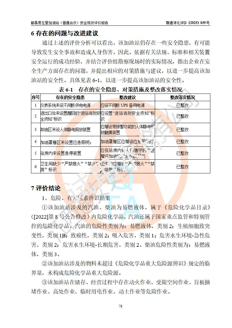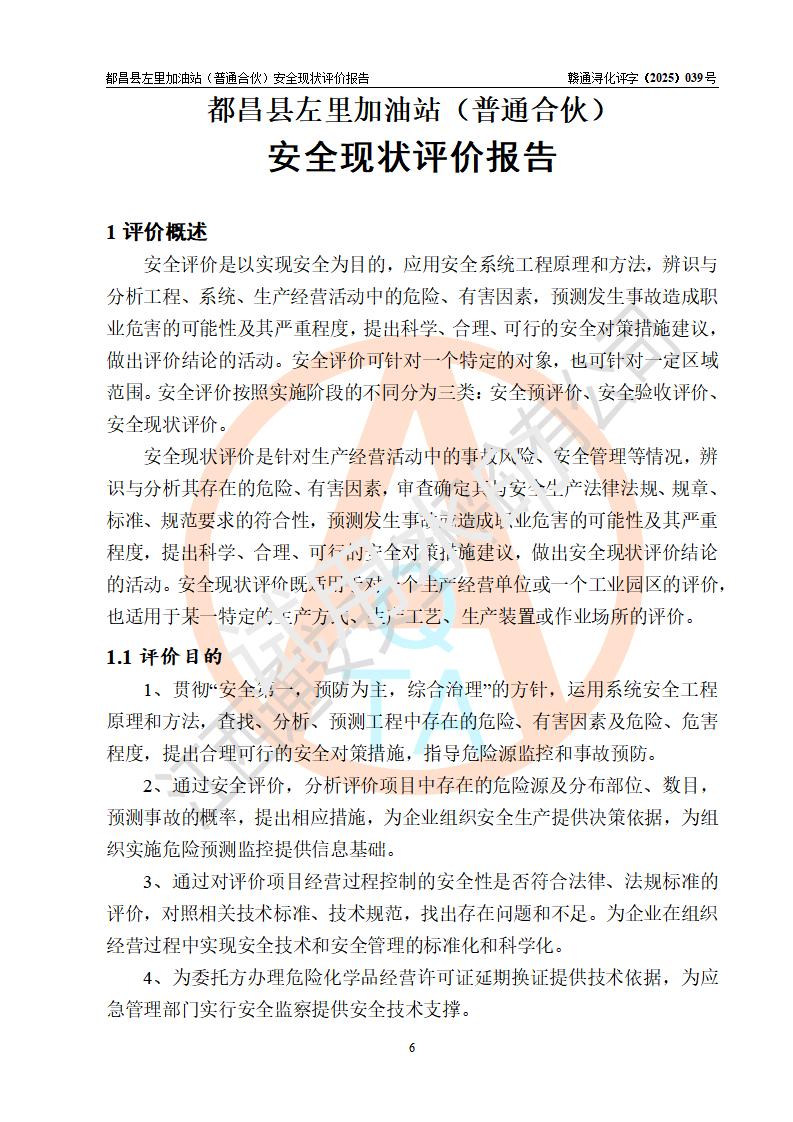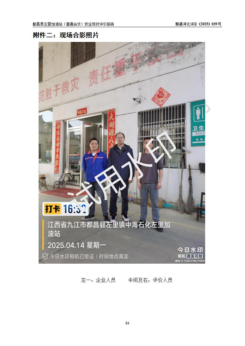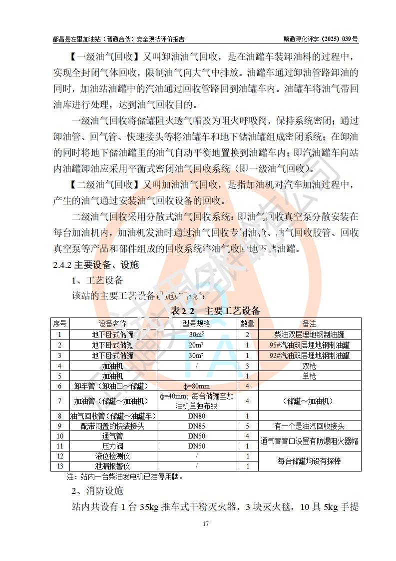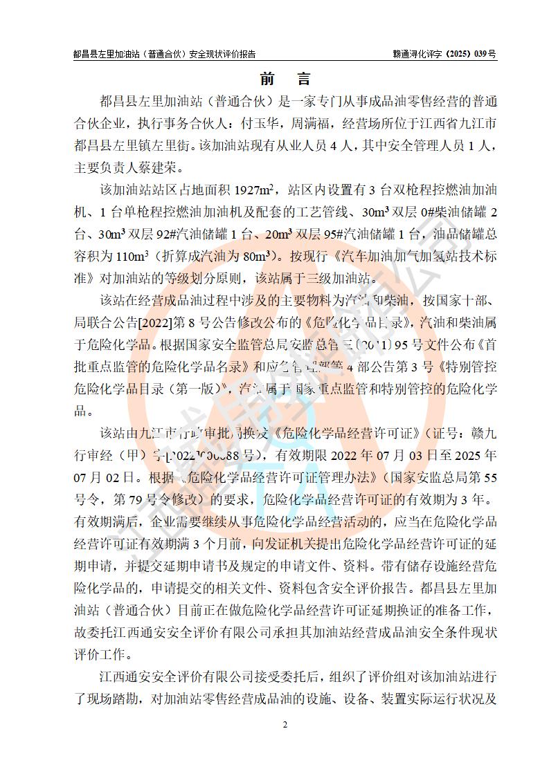 评价报告名称 | 都昌县左里加油站(普通合伙)安全现状评价报告 | |||