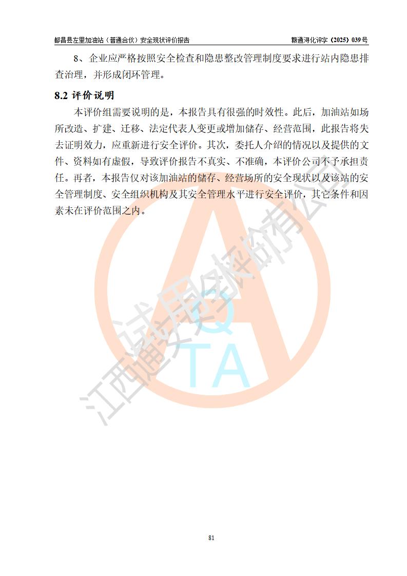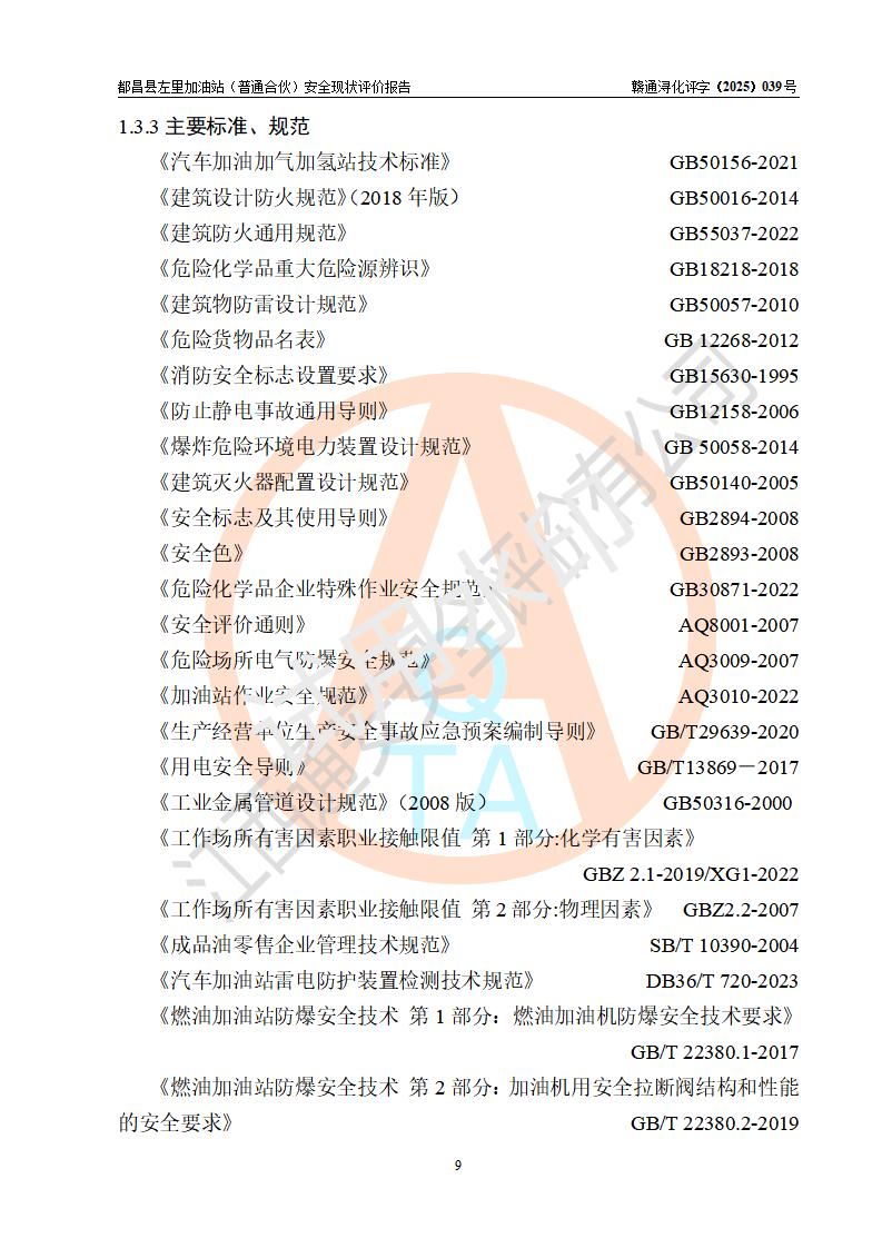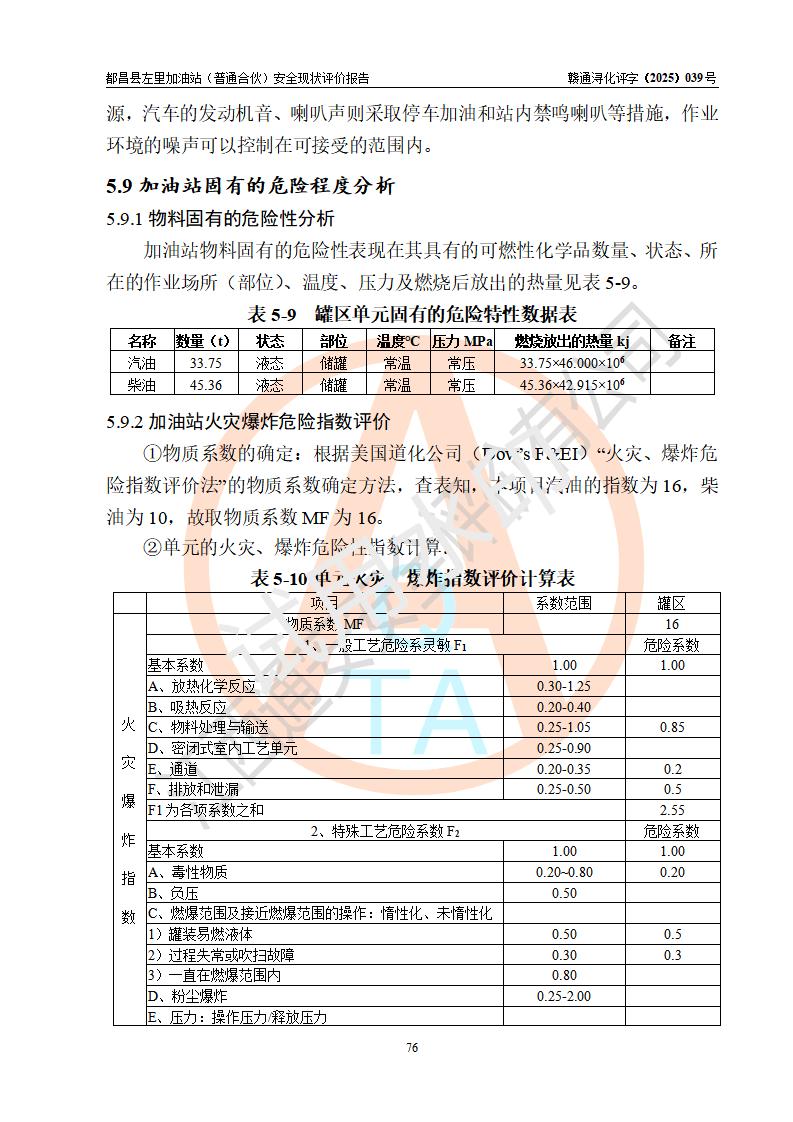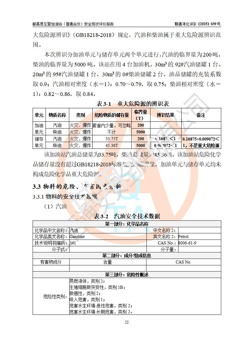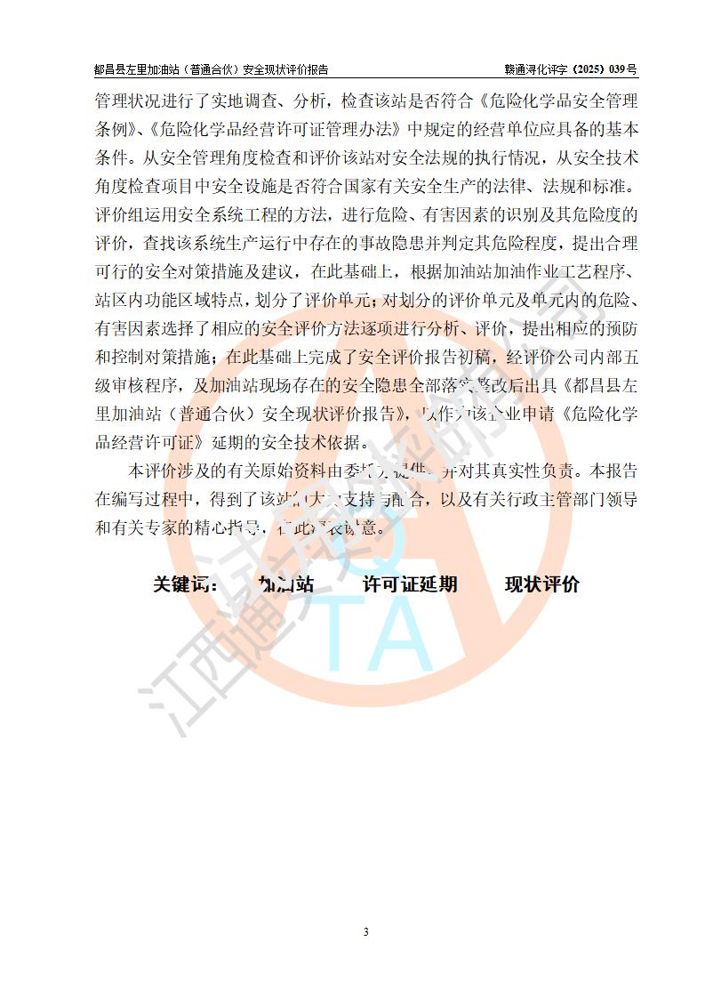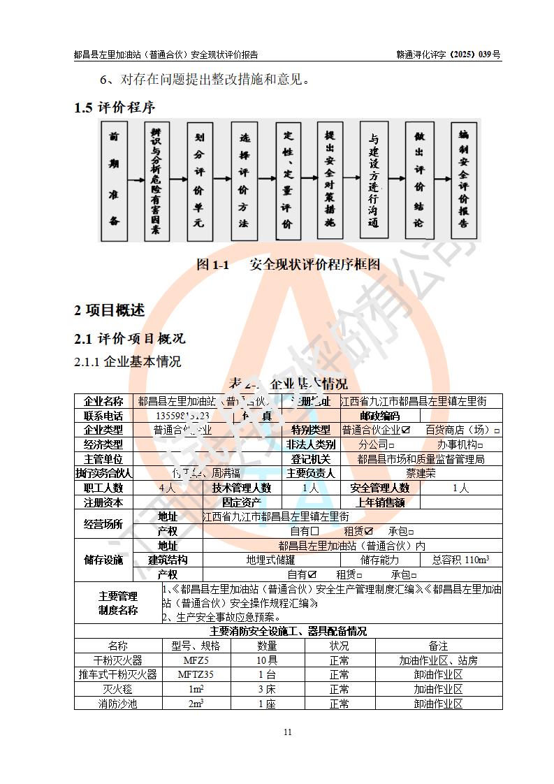 评价报告名称 | 都昌县左里加油站(普通合伙)安全现状评价报告 | |||